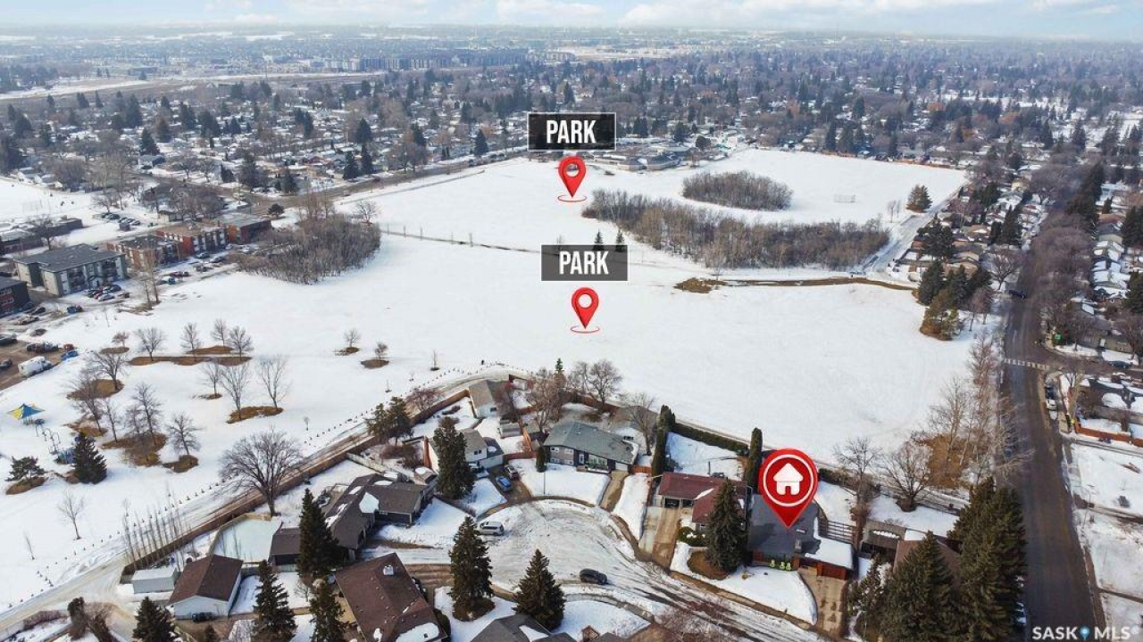 Looking for your forever home?!? This could be it. Spacious and bright this mid-century modern bungalow (1522 sq ft) is on a large lot that backs James Anderson Park. The location is unbeatable situated on a beautiful cul de sac, in the heart of East center, with shopping and services close by (market mall). The morning commute will be that much easier for your kids as both elementary and high schools are in walking distance. Take advantage of the walking paths that connect the parks in the area. This solid house was custom designed and built with post-and-beam construction. The main living area is stunning, featuring an abundance of natural light from the beautiful East facing windows. The original hardwood floors keep the character of the house which run throughout the main living areas and all bedrooms. There is plenty of brick and wood adding warmth and character to the space including the brick fireplace (mostly ornamental).The main floor has 3 huge bedrooms. The primary bedroom measures 13.9 X 23.10 has views of the park, and a 2-piece ensuite. This room could very easily be converted back to a 4th bedroom depending on your needs. The basement features a huge family room with gas fireplace, and retro bar with a fridge and sink. Additionally, there is another bedroom and 3 piece bath which have both been recently upgraded. The backyard is truly special and incredibly manicured (a definite gardeners paradise). There is plenty of space to enjoy thanks to the oversized lot which has direct park access. Plus, the property includes an oversized heated workshop (15 wide X 30 deep) with a 220V plug. This space was used as a wood working shop but would also be ideal for mechanics, hobbyists, or a place to escape from it all. Additionally, the roof was recently redone giving buyers piece of mind for years to come. This is a rare opportunity to own a spacious, character-filled home in a fantastic location steps away from parks, space, and community.