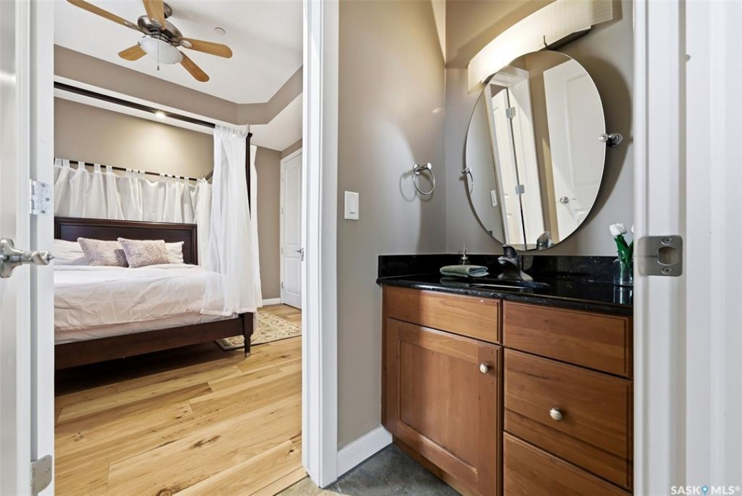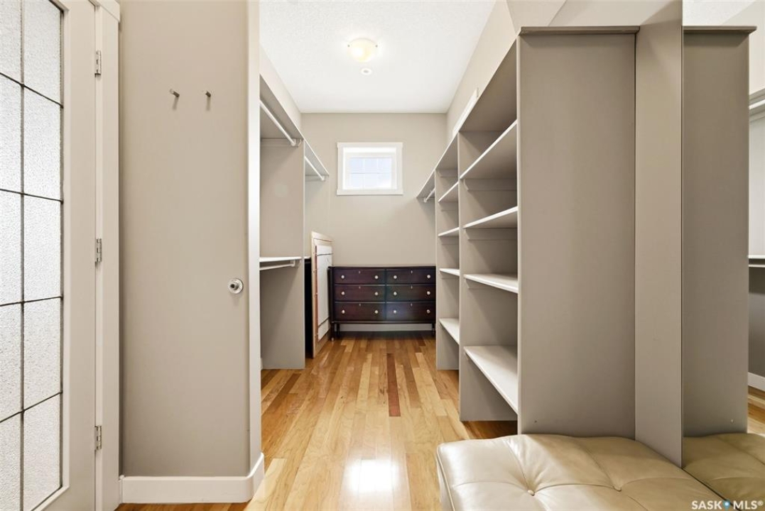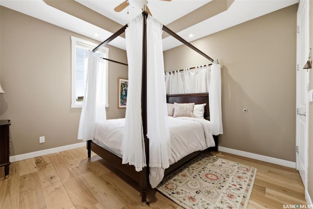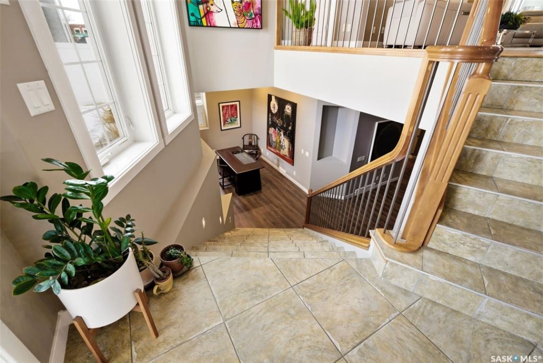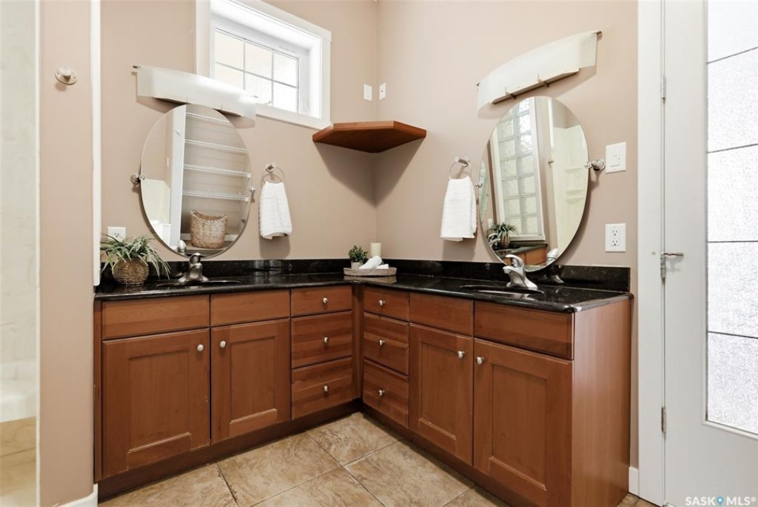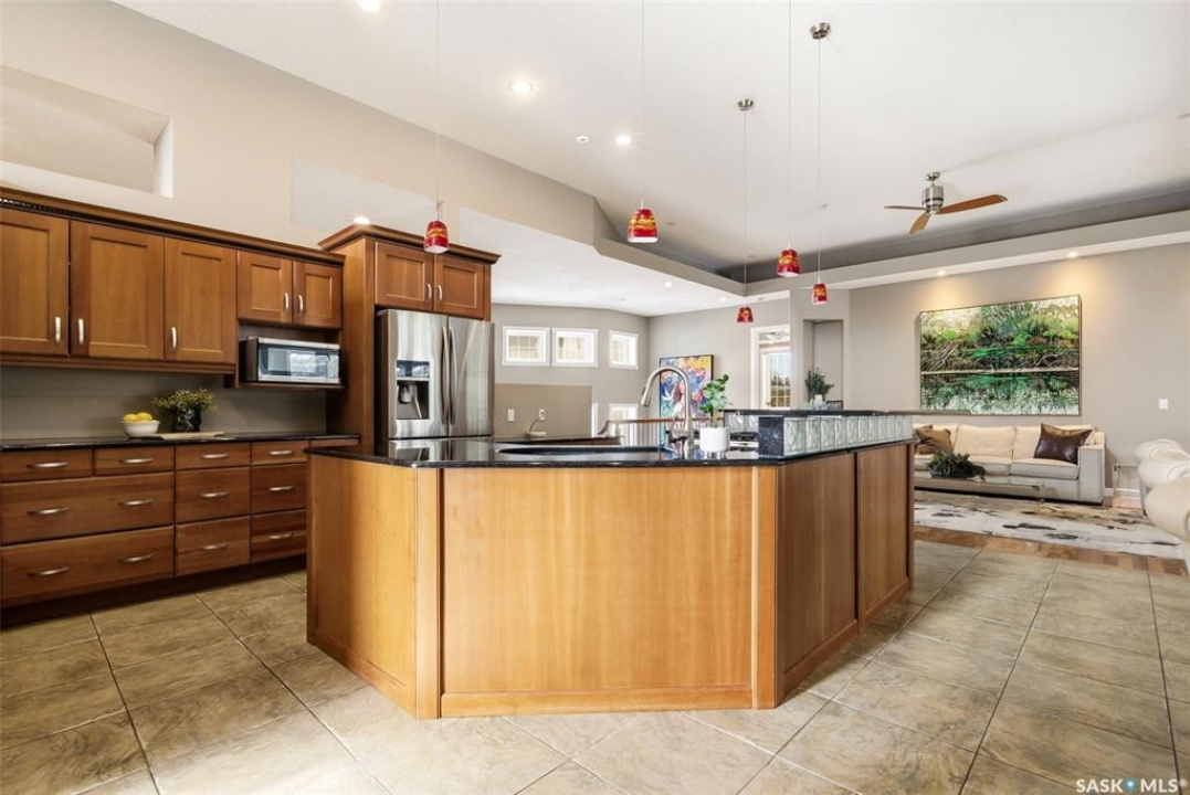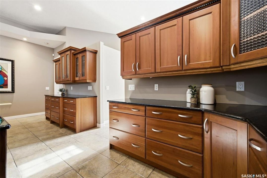 One of a kind in every sense, this custom built home was thoughtfully designed from the ground up. Offering over 3,600 sqft on the main level alone, from the moment you step inside, the scale and quality are undeniable. Featuring 10-ft ceilings & 8-ft doors throughout, hardwood flooring, dimmable pot lighting & expansive windows creating a bright, airy, space that feels more than grand. In the heart of the home, you'll find a chef's kitchen with cherry cabinetry, granite countertops, ceramic tile & walk-in butler's pantry. The open-concept kitchen, dining & living rm layout flows into the stunning four-season sunroom with poolspa, separated by a 2-way gas fireplace creating the coziest space. The main level is complete with 4 generous sized bedrooms with ceiling fans, walk-in closets & direct access to a bathroom. 2 more bedrooms & another bathroom on the fully developed lower level, where you will also find a projector & full-screen theatre setup, pool table, gas fireplace & wet bar complete with granite top, sink, mini-fridge & dishwasher. The perfect space for teenagers, a growing or extended family & friends. Comfort and efficiency were top priorities in the design with radiant in-floor heating, powered by a boiler system & furnace (2023), air exchanger & humidifier. Additional features include reverse osmosis. air exchanger &humidifier, built-in sound system, 200-amp service, backup generator, electric roll-up security shutters, cold storage &built-in fire sprinkler system. The oversized triple garage (tandem for 4 vehicles) includes a separate 125-amp panel, floor drain, side overhead door for backyard access, and a loft space ideal for a workshop. Outside, the expansive crescent lot is fully fenced yard with mature trees, fenced garden & outdoor kitchen. Located on a quiet cul-de-sac & steps from Jack Mackenzie &St.Gabriel, Sandra Schmirler Leisure Centre &all east-end amenities. A truly distinctive property in one of Regina's most established neighborhoods.