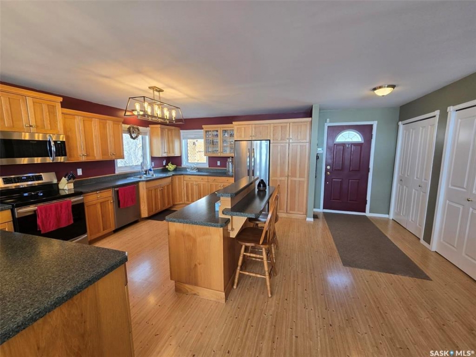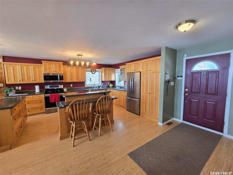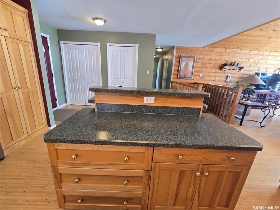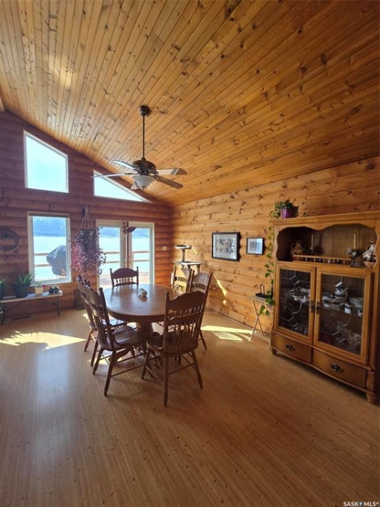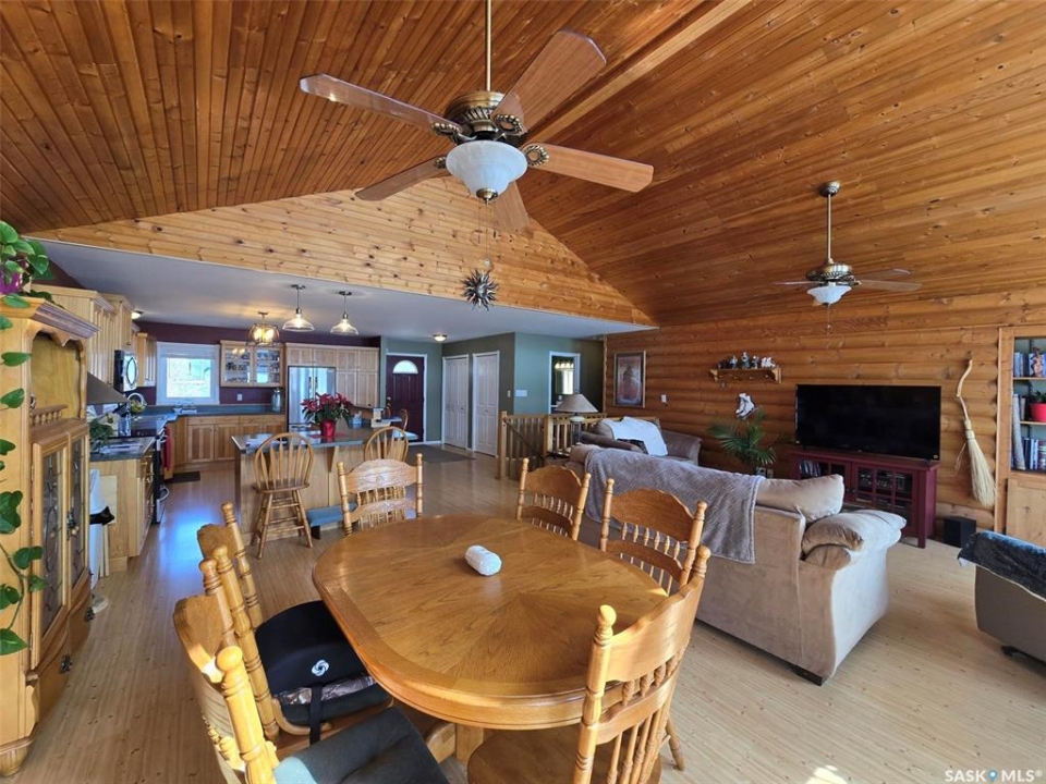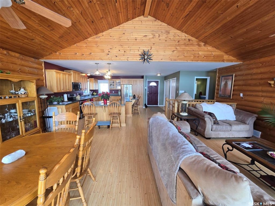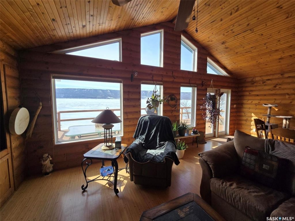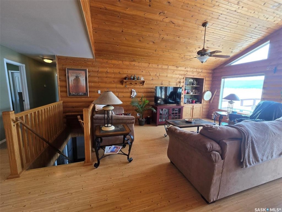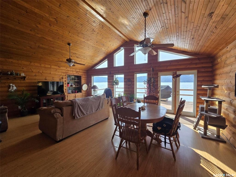 Sunsets are breathtaking at 104 Elk Road , Crooked Lake in this 3 bedroom plus 2 bath all season home with a combined total of just over 3000 sq ft. This property offers more than that though with lake front lifestyle in a log style bungalow built in 2002 with an amazing yard. Be close to nature with no direct neighbours on either side on this leased lot. The home boasts vaulted ceilings in the front living room, with south west windows allowing natural light to filter through all day. The kitchen is massive for all the company that lake life brings. There are 2 islands, one with a breakfast bar area and one is moveable with seating. Birch cabinets warm the space and provide lots of storage. Stainless steel appliances are quite new to include the BI dishwasher, fridge, stove, and microwave hood fan. Lighting has been updated. The 3 piece bath down the hall is spacious and has been renovated. Main floor laundry is situated in the Jack n' Jill bathroom off the Primary bedroom. This 4 piece bath has a jet tub and walk in shower. Wake up to the view of the lake in the Primary room , lots of closet space. Across the hall , a second bedroom. The walk out basement will be a great area to set up a gym, a rec space, extra family room , and hosts a 3rd bedroom. Boat house access on this level or turn it into a "Man Cave" , a place to set up a work shop. This sale will include a Hydo- pool Hot tub approx 6 years old, currently being used with minerals. There is a change room/ lean-to beside. Large storage shed found on the back side by the parking area. Lake life is all about the outdoors, and the bottom deck and balcony will be your favorite location. Septic - 1200 Concrete, Eco green Tank for propane, comes with dock and track. Lease is $2838 due in Dec and tax is $3106 due in Sept. Financing is available with terms and conditions . Water is delivered to home and stored in poly tank. This property is on a "No Through Road" come check it out before summer disappears.