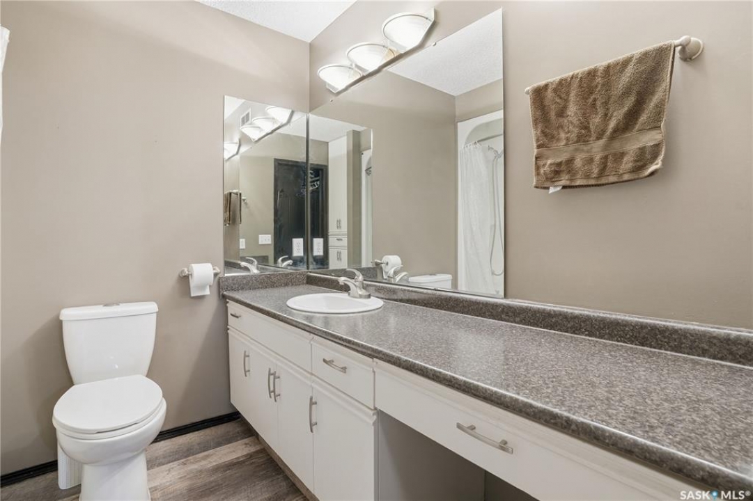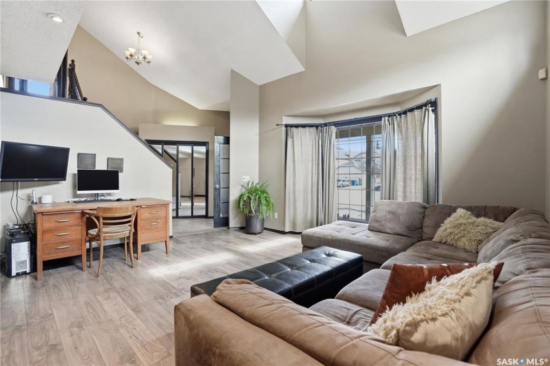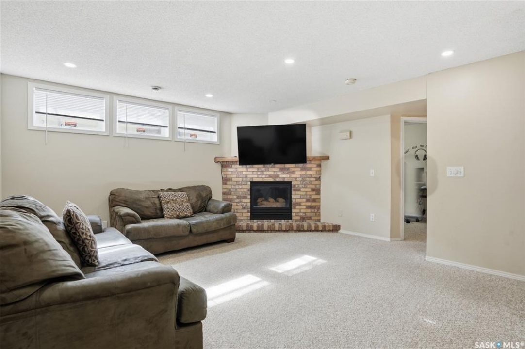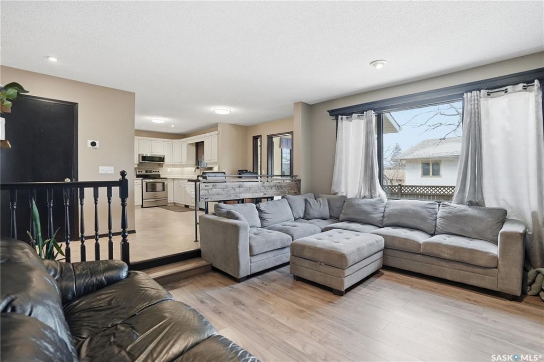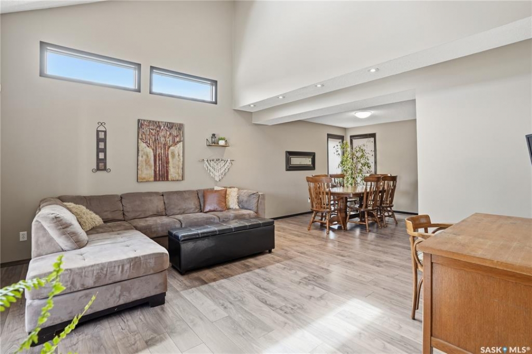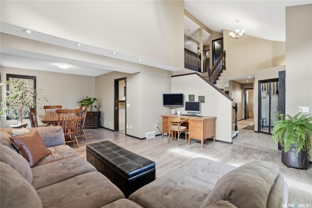 Welcome to 1228 Warner Bay N! Nestled in a quiet corner of Lakeridge, this home offers the perfect balance of peaceful living and convenient access to nearby amenities. Upon arrival, you are welcomed by beautifully maintained landscaping, ample parking, and an attractive exterior with updated shingles. The front foyer provides a practical space, while the entryway opens to an impressive main floor featuring a grand staircase and vaulted ceilings. To the left, a bright and airy living room with 18' ceilings flows seamlessly into the formal dining area. The centrally located kitchen is both functional and spacious, offering abundant cabinetry and counters, and a large pantry for added organization. Just off the kitchen is a comfortable sunken family room complete with a fireplace feature wall and built-in shelving. A sunroom off the breakfast nook provides additional space and direct access to the covered deck, ideal for enjoying the outdoors. The main level is completed by a convenient 2-pc bath and multiple large storage closets. Upstairs, the impressive primary suite is a generous size, with a walk-through closet, and a well-appointed ensuite. Two additional bedrooms on this level are both well-sized with ample closet space, including one with a lovely vaulted ceiling. An updated 4-pc bath completes the upper floor. The basement is thoughtfully developed with a large rec room centered around a second fireplace, offering plenty of space. Two additional bedrooms are ideal for teens, along with a well-appointed 3rd bath. The spacious laundry room includes extra storage. A unique highlight of this home is the cedar dry sauna, providing a perfect space for wellness. Additional storage rooms complete this exceptional property. Value added items include (all dates approx): Hot tub, HE furnace 2020, Central air 2023, Shingles 2016, Trex decking 2025, Laminate flooring 2022, Vinyl tile flooring 2024, HE garage furnace, covered deck, low maintenance xeroscaping, and more!