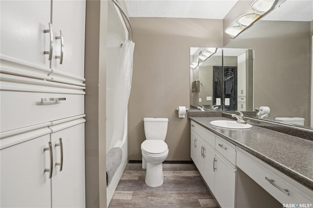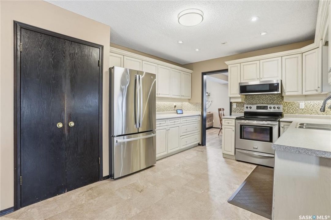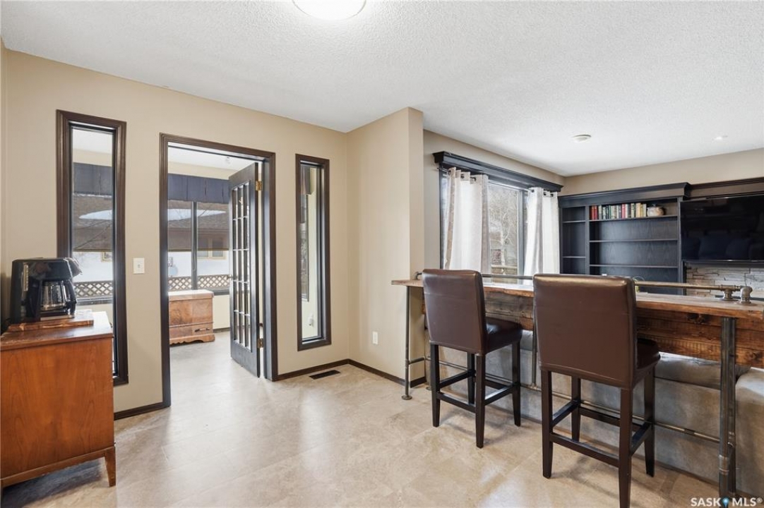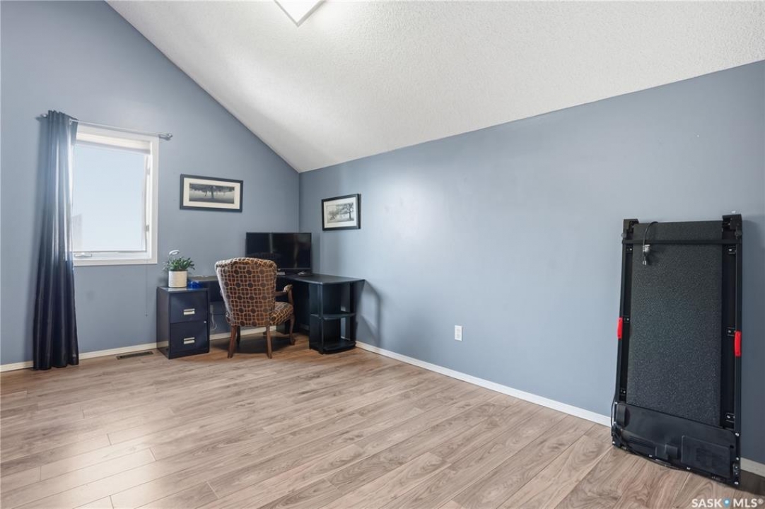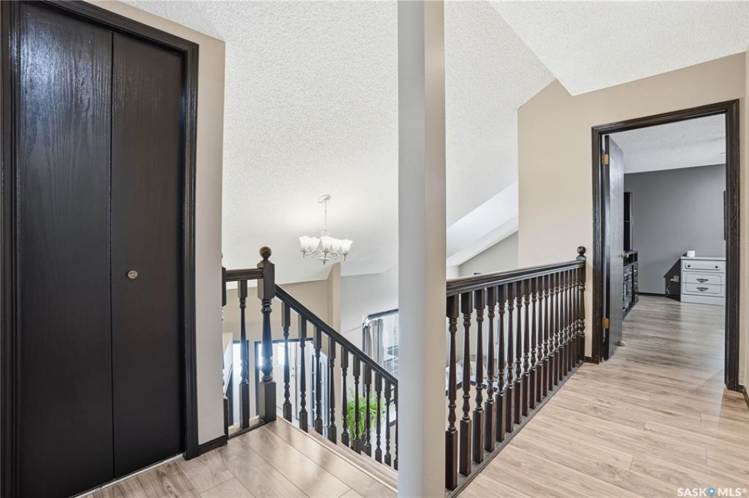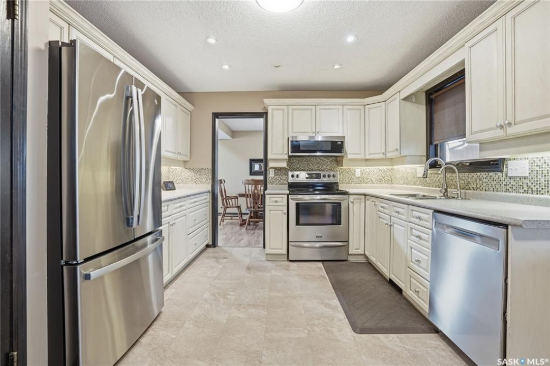 Welcome to 1228 Warner Bay N! Nestled in a quiet corner of Lakeridge, this home offers the perfect balance of peaceful living and convenient access to nearby amenities. Upon arrival, you are welcomed by beautifully maintained landscaping, ample parking, and an attractive exterior with updated shingles. The front foyer provides a practical space, while the entryway opens to an impressive main floor featuring a grand staircase and vaulted ceilings. To the left, a bright and airy living room with 18' ceilings flows seamlessly into the formal dining area. The centrally located kitchen is both functional and spacious, offering abundant cabinetry and counters, and a large pantry for added organization. Just off the kitchen is a comfortable sunken family room complete with a fireplace feature wall and built-in shelving. A sunroom off the breakfast nook provides additional space and direct access to the covered deck, ideal for enjoying the outdoors. The main level is completed by a convenient 2-pc bath and multiple large storage closets. Upstairs, the impressive primary suite is a generous size, with a walk-through closet, and a well-appointed ensuite. Two additional bedrooms on this level are both well-sized with ample closet space, including one with a lovely vaulted ceiling. An updated 4-pc bath completes the upper floor. The basement is thoughtfully developed with a large rec room centered around a second fireplace, offering plenty of space. Two additional bedrooms are ideal for teens, along with a well-appointed 3rd bath. The spacious laundry room includes extra storage. A unique highlight of this home is the cedar dry sauna, providing a perfect space for wellness. Additional storage rooms complete this exceptional property. Value added items include (all dates approx): Hot tub, HE furnace 2020, Central air 2023, Shingles 2016, Trex decking 2025, Laminate flooring 2022, Vinyl tile flooring 2024, HE garage furnace, covered deck, low maintenance xeroscaping, and more!