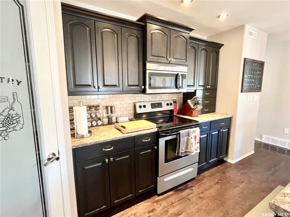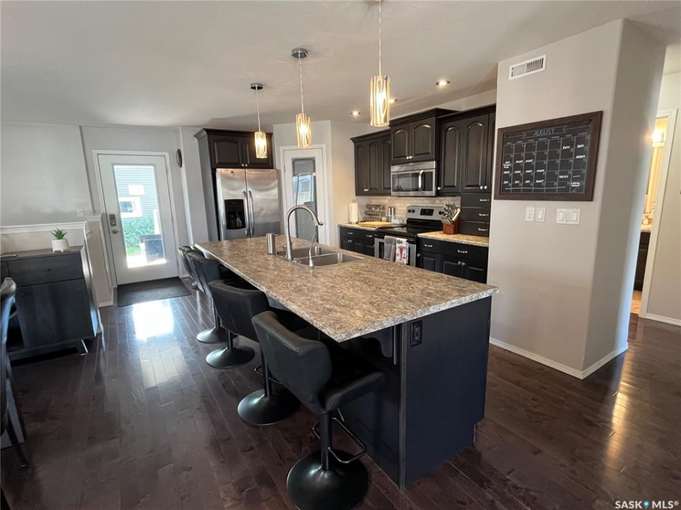 Step into this beautifully maintained 2013-built home offering 1,268 sq ft of thoughtfully designed living space, perfectly blending comfort, style, and functionality. The open-concept main floor features a stunning kitchen and living area anchored by a large hosting island complete with sink, garburator, and a reverse osmosis drinking water system (2021), also connected to the fridge. A convenient corner pantry, sleek stainless steel appliances, and rich hardwood flooring throughout elevate the space. The main level boasts two spacious bedrooms and two full bathrooms, including a dreamy primary retreat with double closets, a walk-in closet, and a beautifully appointed 3-piece ensuite featuring a full walk-in tiled shower with glass enclosure. Downstairs, the bright and fully finished basement offers a generous recreation room, two large bedrooms with large windows, a full bathroom with linen storage, and a combined laundry and utility room—perfect for growing families or hosting guests. Additional highlights include central air conditioning, air exchanger, new hotwater tank (2024), and a water softener installed in 2021. Outside, you'll find a 24' x 24' heated detached garage (built in 2014). Private yard and 10' x 14' covered deck with a natural gas BBQ hookup and retractable privacy screen, overlooking a fully fenced and beautifully landscaped backyard. Major updates include underground water and sewer line replacement from the home to the street (2021), along with concrete driveway (2021).