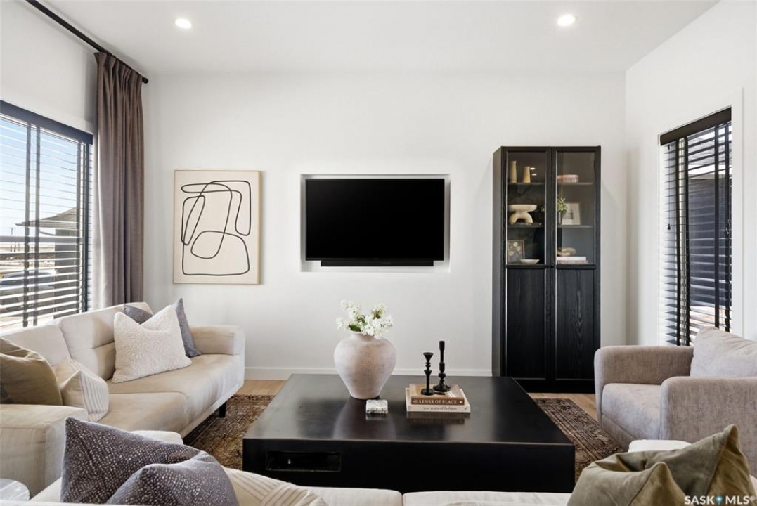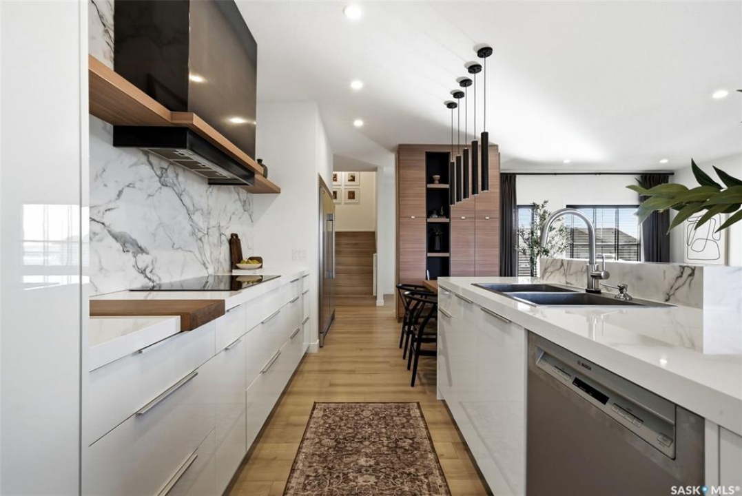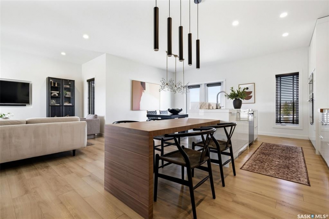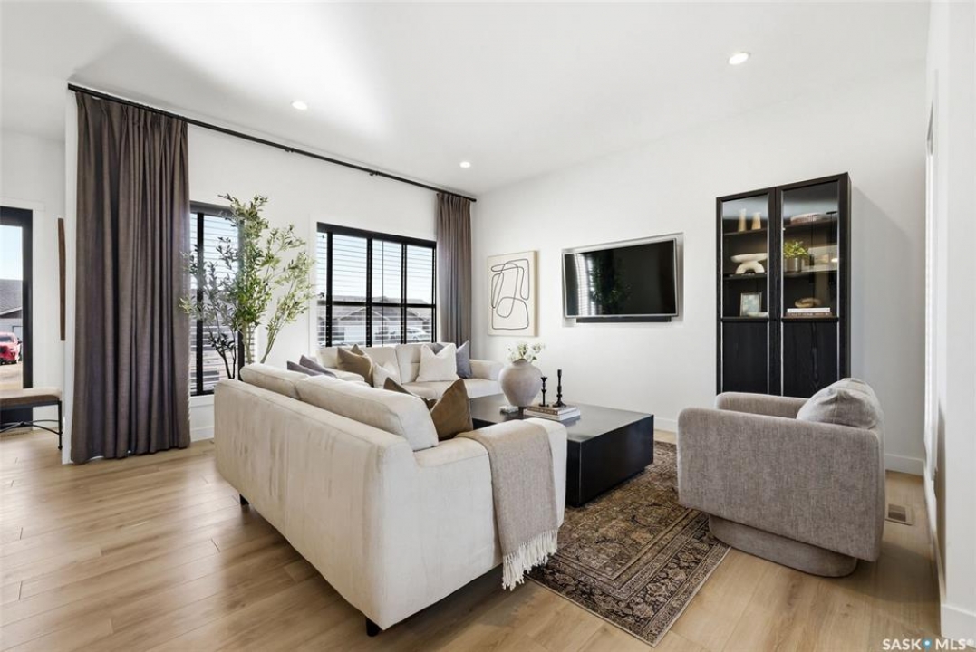 Welcome to this exceptional Alair Homes custom-built modified bi-level in the sought-after community of Grand Coulee—offering an elevated lifestyle just a short drive from Regina. Built in 2017 and set on an expansive nearly 12,000 sq/ft lot, this impressive residence offers just under 1,700 sq/ft of refined living space with 3 bedrooms and 3 bathrooms. From the moment you arrive, the home's striking curb appeal and modern architectural design set the tone. Inside, you're greeted by soaring ceilings, an abundance of natural light, and a thoughtfully curated open-concept layout designed for both everyday living and upscale entertaining. The custom kitchen, crafted by Chris Murray Cabinets, is a true centerpiece—featuring premium finishes, exceptional craftsmanship, and timeless design. This same level of detail extends to the beautifully appointed powder room and custom railing, adding a sophisticated, cohesive feel throughout. The modified bi-level layout offers a private primary retreat, while the additional bedrooms and living spaces provide comfort and flexibility for family or guests. The oversized lot creates a rare opportunity for outdoor enjoyment, offering ample space for future landscaping, entertaining areas, or simply enjoying the tranquility of your surroundings. Located in a safe, quiet, and close-knit community, this home also benefits from exciting nearby growth, including major new amenities which include a Costco, Petro Canada and A&W, just a short drive away. With future infrastructure improvements planned, Grand Coulee continues to evolve while maintaining its peaceful, small-town charm. A rare offering that seamlessly blends custom craftsmanship, modern design, and effortless access to the city—this is a home that truly stands apart.
