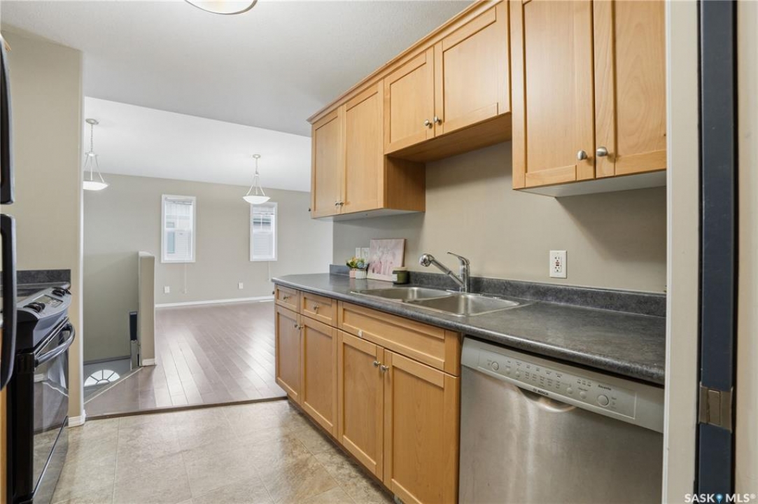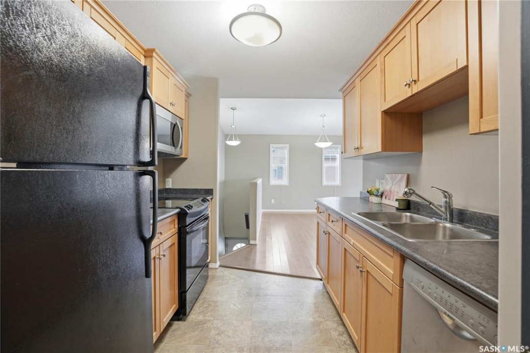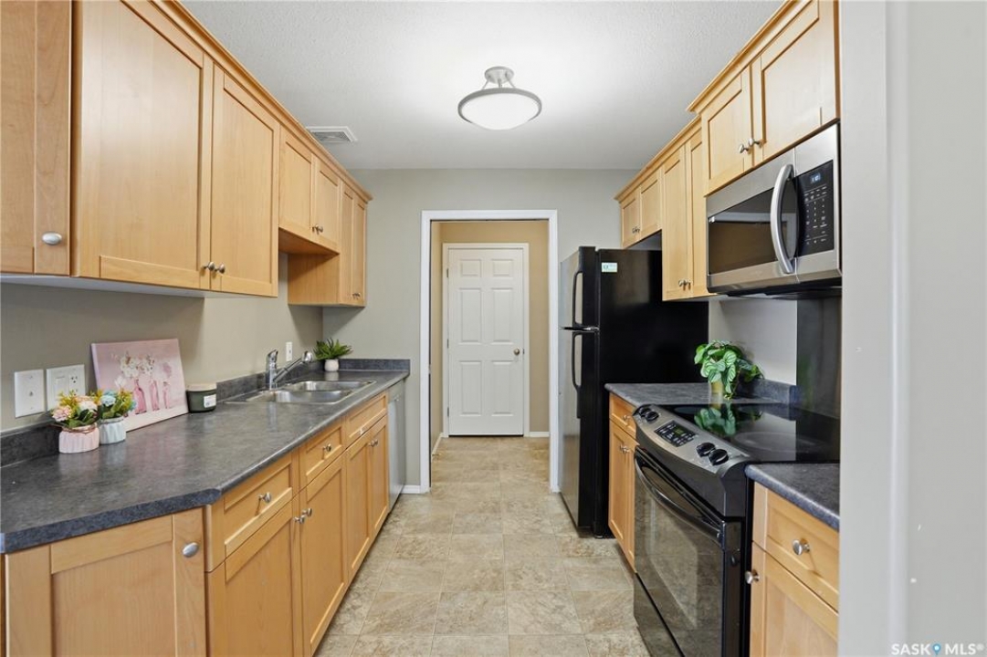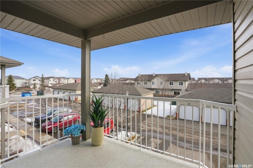 Welcome to 132-410 Stensrud Road—an exceptional top-floor corner coach home with a detached garage in the highly desirable community of Willowgrove. Opportunities like this don't come up often. Perfect for first-time buyers, young professionals, downsizers, or investors seeking a low-maintenance, well-located property. Enjoy the benefits of top-floor living with no neighbours above, offering added comfort and everyday ease. From the moment you step inside, you're welcomed by a bright and airy open-concept layout, soaring 10-foot vaulted ceilings, hardwood flooring, and an abundance of natural light streaming through additional corner windows. The kitchen is both functional and inviting, featuring maple cabinetry, built-ins, and a walk-in pantry—ideal for keeping everything organized while staying connected to the main living space. Whether you're hosting friends or enjoying a quiet evening at home, this space feels open, warm, and effortlessly livable. Step out onto the spacious east-facing covered balcony—perfect for your morning coffee or unwinding at the end of the day. With room for seating and a peaceful outlook, it extends your living space beautifully. This home offers two comfortable bedrooms, in-suite laundry, and smart storage throughout. The generously sized surface parking stall located just below the balcony is incredibly convenient, complemented by a single detached garage for added flexibility and storage. Ideally positioned within the complex and set back from street traffic, this unit offers a desirable balance of accessibility and location. Just steps from parks, walking trails, and close to two elementary schools and Willowgrove Square, everything you need is within easy reach. A nearby bus stop adds to the everyday convenience. Surrounded by green space and located in one of Saskatoon's most sought-after neighbourhoods, this home checks all the boxes. Stylish, functional, and move-in ready—this is one you won't want to miss.