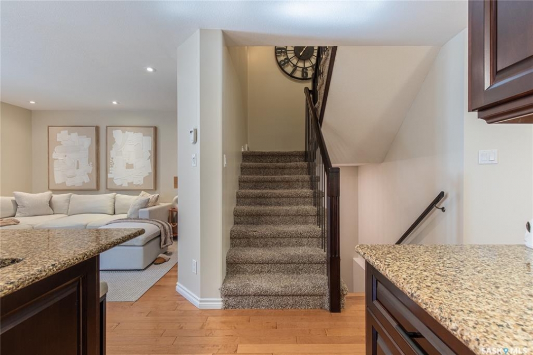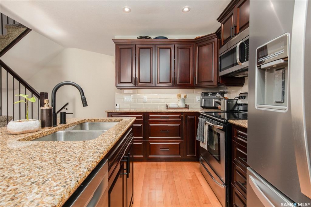 Modern, elegant, and effortlessly functional. This 3-bedroom, 4-bathroom condo truly stands out. Step inside to a bright, welcoming foyer that leads into a stylish powder room and then into an open concept, sun-filled kitchen, dining room, and living room. The entire home has just been professionally painted, giving it a fresh, move-in-ready feel. The kitchen has quartz countertops, a glass subway tile backsplash, a new fridge and dishwasher, a custom pantry, updated cabinet hardware, and modern taps and faucets, giving it a clean, elevated look. The cozy living room, anchored by a gas fireplace, opens onto a private little deck—perfect for relaxing at the end of the day. Upstairs, you'll find a serene primary retreat with a spacious closet and a roomy 4-piece ensuite, along with two additional bedrooms. The fully finished basement adds even more versatility, offering a great flex space for a media room, home gym, or office, plus extra storage and a modern 3-piece bathroom. Additional features include an attached single-car garage, new light fixtures throughout, and convenient guest parking. This well-managed condo has a $350/month fee that includes water, sewer, and snow removal, making for easy, low-maintenance living.