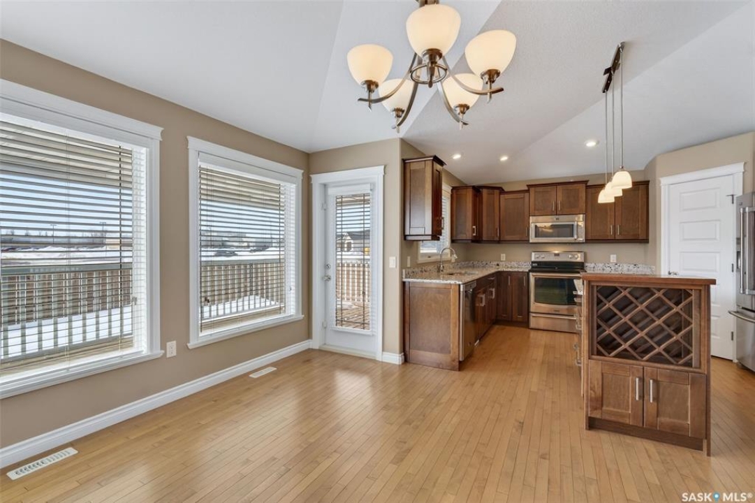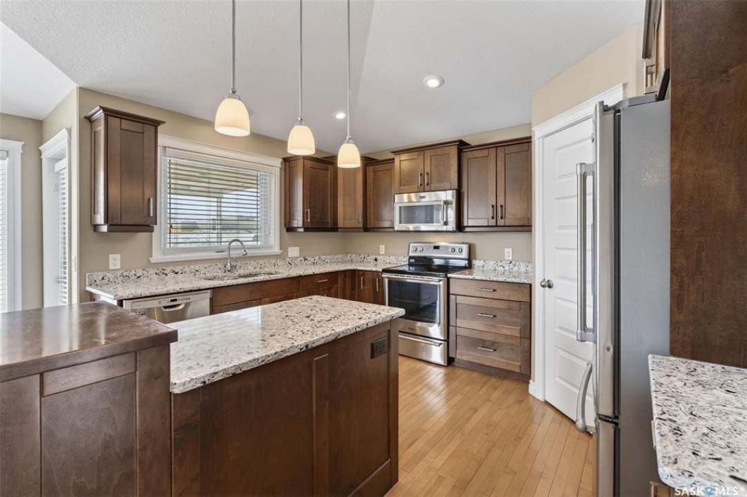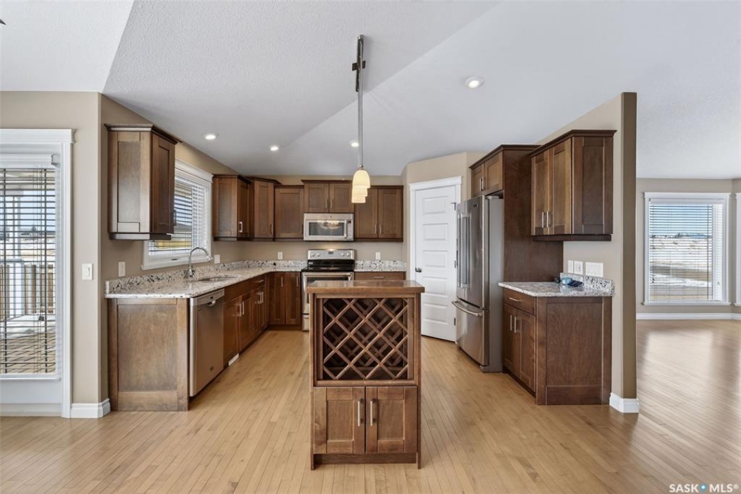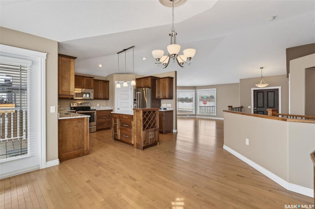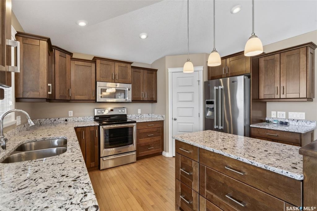 This stunning home is sure to impress! Located in one of Humboldt's most desirable neighborhoods, this home is set on a corner lot with views out the front of green space and just blocks from the golf course. Excellent curb appeal with covered front porch, beautiful stone work, and TRIPLE attached heated garage!! This exquisite home has gorgeous finishes .......vaulted ceilings, Hardwood floors throughout, large windows flooding the home with natural light and a custom kitchen with Dark Maple Cabinetry, pantry, island with built in wine rack and stone countertops. The Master Suite in this home is like no other and is a must see boasting a large walk in closet, double vanity and walk in shower. The second bedroom also offers a walk in closet. Full bath plus separate laundry room located down the hall. The lower level opens to a great family room with decorative fireplace, separate office/ den, two bedrooms, full bath, storage and utility room with plenty of room for extra storage. This home has a fantastic floor plan and shows pride of ownership throughout! The south facing backyard is fenced and offers a covered deck, patio area, green space, and low maintenance landscaping. Triple attached heated garage measures 24x32ft. Call to view! Presentation of offers will be Saturday March 28, 2026 at 11:00am.