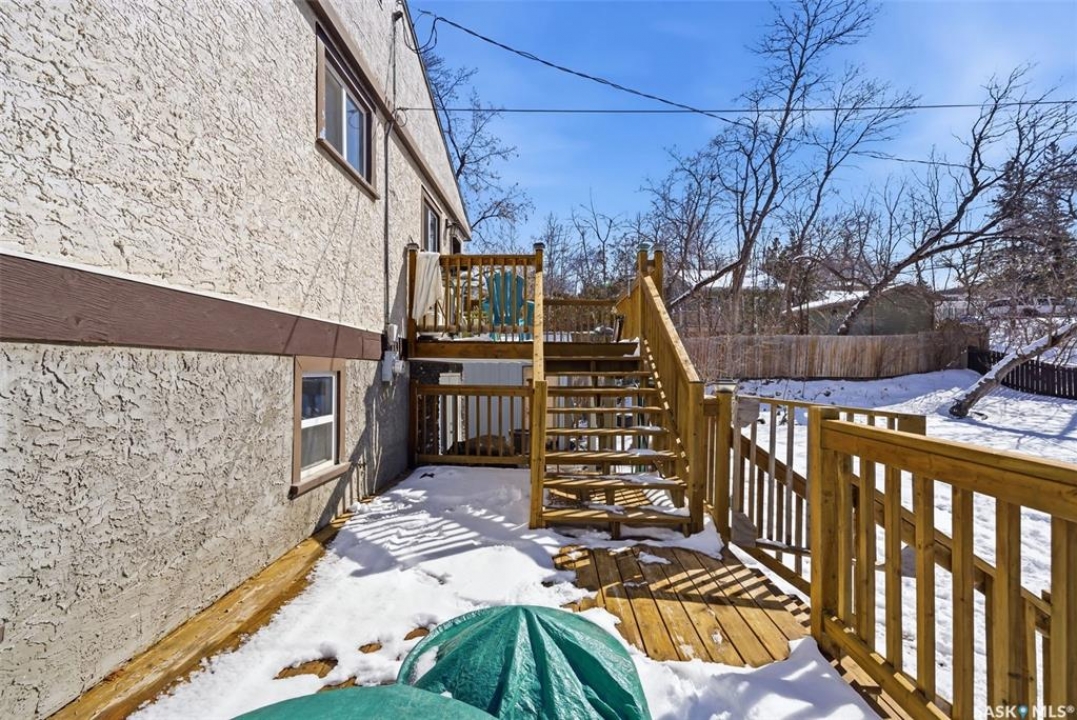 Welcome to this year-round walkout bungalow, ideally situated on a large, level lot just blocks from the beach, boat launch, and all the amenities Regina Beach has to offer. Lovingly maintained by a long-time owner, this home features a bright, open-concept layout with spacious living, dining, and kitchen areas enhanced by abundant natural light. The main floor offers three comfortable bedrooms and a full 4-piece bathroom, all finished with durable and stylish vinyl plank flooring. The lower walkout level includes an additional bedroom, a 3-piece bath, and a partially finished rec/games room with direct walkout access to the yard—perfect for entertaining or relaxing. Step outside to enjoy the private, beautifully landscaped backyard, complete with a two-tiered deck, gated access to the lane, and a charming DIY stone firepit—ideal for summer evenings. There is ample parking, including space for an RV and plenty of room for guests. Bonus! Shingles replaced in 2024. This property has incredible potential to become your perfect lake retreat.