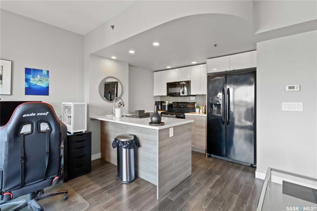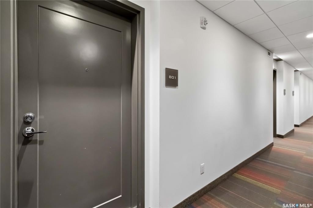 HIGH FLOOR CITY VIEWS, CITY LIVING, CORNER UNIT! Welcome to 550 4th Ave #801 a 601 sqft apartment located in downtown Saskatoon - originally built by North Prarie Developments. This primely located apartment features one bedroom and one bathroom. This unit features natural views of Saskatoon while also being located on the 8th floor with no neighbours located above. The living room and kitchen layout are hard to come by in this building with a spacious island and corner kitchen layout with the kitchen featuring quartz countertops, tile backsplash, and high-end finishes throughout. This unit benefits from plenty of natural sunlight during the day and beautiful sunset views. Featuring one underground parking space, park your car worry-free in downtown Saskatoon! Given its proximity to Royal University Hospital, Saskatoon City Hospital, the University of Saskatchewan, and Jim Pattison's Children's Hospital, this location is ideal for nearby commuters. In the summer time, take advantage of your proximity to Meewasin Trails, Condo Amenities like a rooftop BBQ space, and your proximity to local coffee shops and restaurants! This building was constructed using concrete - while also featuring modern design. Furniture can be negotiated! This unit is extremely unique featuring sunlight, being a corner unit, high floor, with a peninsula island, and spectacular location! Book your showing today!