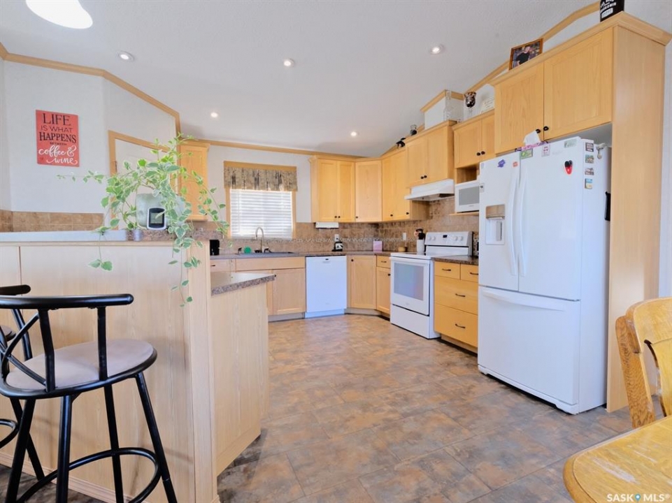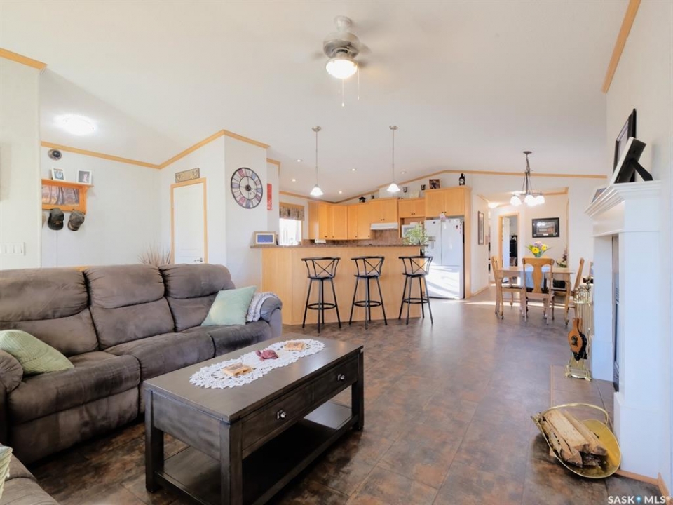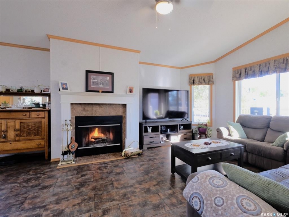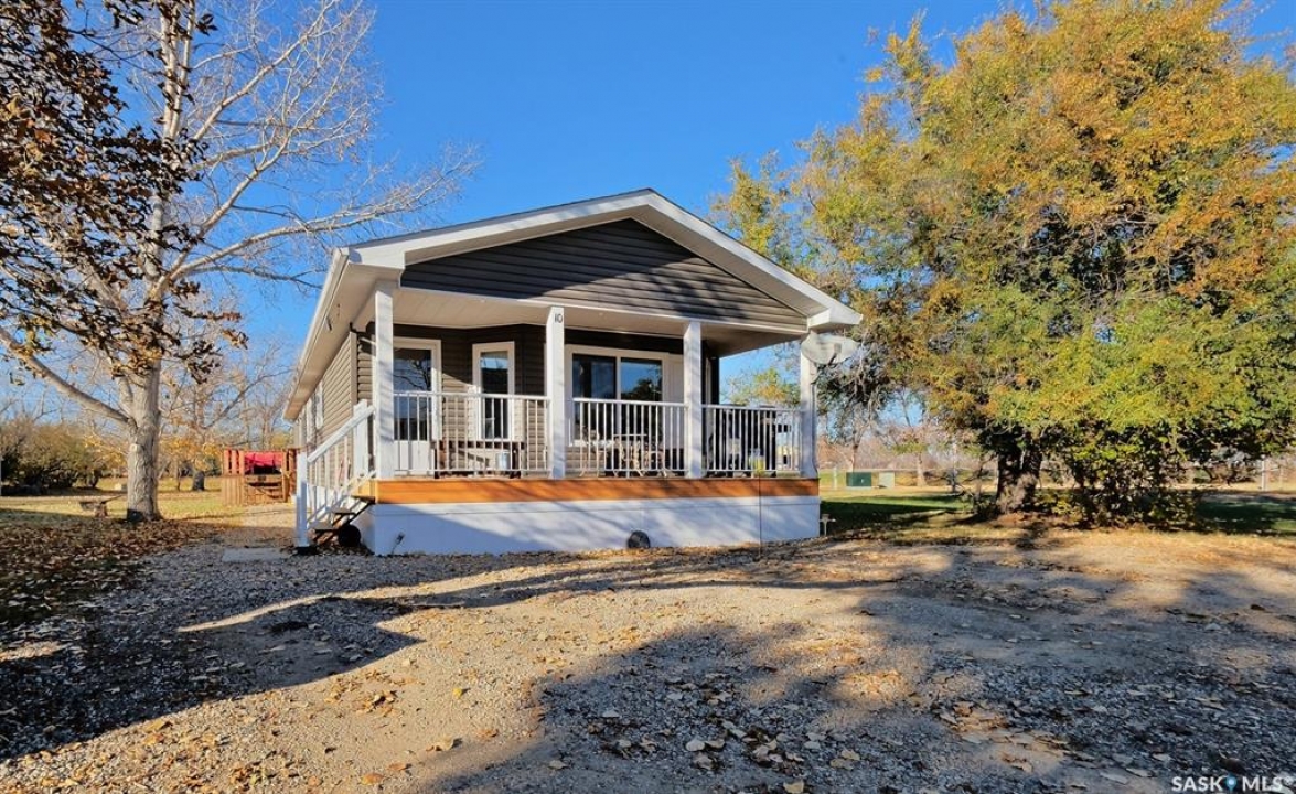 WARM, WELCOMING, COZY AND COMFORTING! Buffering a patchwork of farmers' fields that instantly put you at ease - is a stunning residence set upon the largest lot in the park. Offering more than 1,500 square feet of beautifully designed living spaces, 10 Prairie View Crescent is quietly nestled on the edge of town! Radiating refined southern charm, snuggle up on the front veranda sheltered from a soothing rain as you savour the silence. Step inside where the home's expansive open-concept branches out, expertly tailored for both comfort and elevated entertaining. Bathed in natural light, the home showcases a statement wood-burning fireplace that creates a calming ambiance, wrapping you in warmth like a gentle hug. Seamlessly integrated with the dining room and kitchen - effortless flow meets everyday function. From bar seating for connective conversations to spaces destined for holiday hosting - the kitchen has a wealth of countertops, abundant cabinetry, practical pantry and intuitive configuration making it traditional and timeless. Follow the hallway to two secondary bedrooms, one skillfully suited for a home office, the other is bright and looks out at the yard. Well-appointed and generously sized, the rooms are just steps from a dazzling 4-piece bathroom. Then there's the spacious master bedroom that is truly the highlight! Secluded with a soft muted palette that lends itself to some down time. Wake to the sunrise feeling restored then slip into your massive walk-in closet organized with seasonal sweaters and formal attire! …and that's NOT all! Woven within the primary is an impressive 4-piece ensuite with a substantial soaker tub with jets to rest and relax. A laundry room off this wing of the home provides ample storage and leads you out to a side deck and into your picturesque yard. As the golden sunset melts into the horizon, you are surrounded by lush green space, mature hedges and towering trees along with a nearby walking trail to help you reconnect!