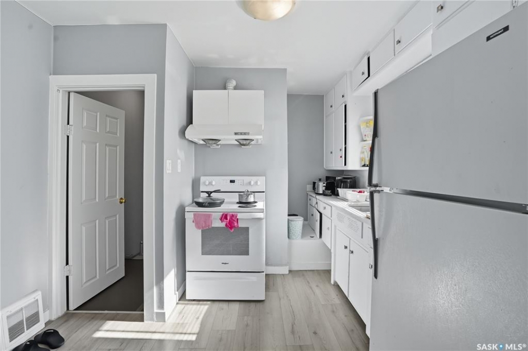 Welcome to this super cute and charming raised bungalow located in trendy Riversdale. This fully remodeled home offers a perfect blend of character and modern updates, making it ideal for young professionals, first-time buyers, or investors seeking a great rental or Airbnb opportunity. The main floor features a bright front porch, spacious living and dining areas with large windows, a refreshed galley kitchen with quartz countertops, updated cabinets, and included appliances. Two bedrooms and a beautifully remodeled full bathroom complete the level. Downstairs, the full-height basement shines with natural light thanks to large windows. It includes two additional bedrooms, a full bathroom, laundry area, and a bonus nook space. The home is equipped with a high-efficiency furnace and upgraded double-pane windows, ensuring year-round comfort and efficiency. Outside, the large 45' lot provides plenty of space to relax or garden, complemented by established apple trees. A new front deck, covered concrete patio, and front and back fences create inviting outdoor areas, while two gravel parking spaces with alley access add convenience. Security cameras are also in place for peace of mind. Enjoy the unbeatable walkability—steps to downtown, River Landing, shops, cafes, Farmers Market, and all connected parks and trails. This affordable home is packed with value in a neighborhood that continues to appreciate year after year. water/sewer line replacement was done and totally paid off(near $5k).