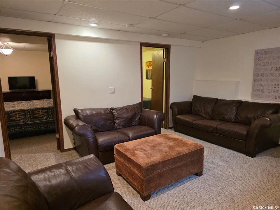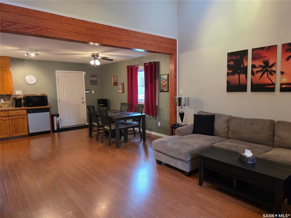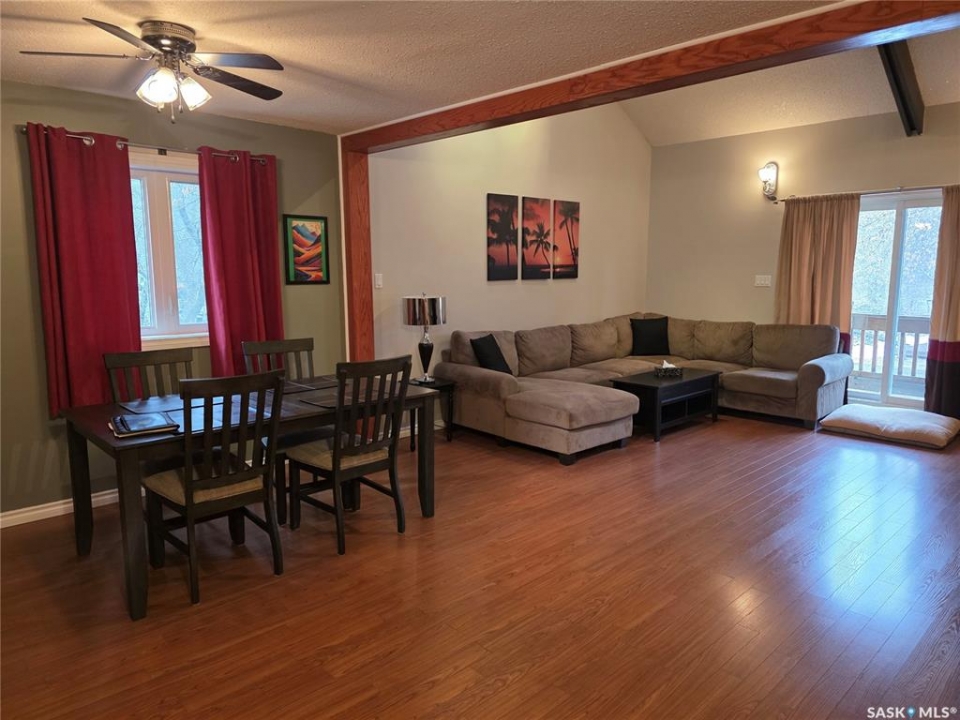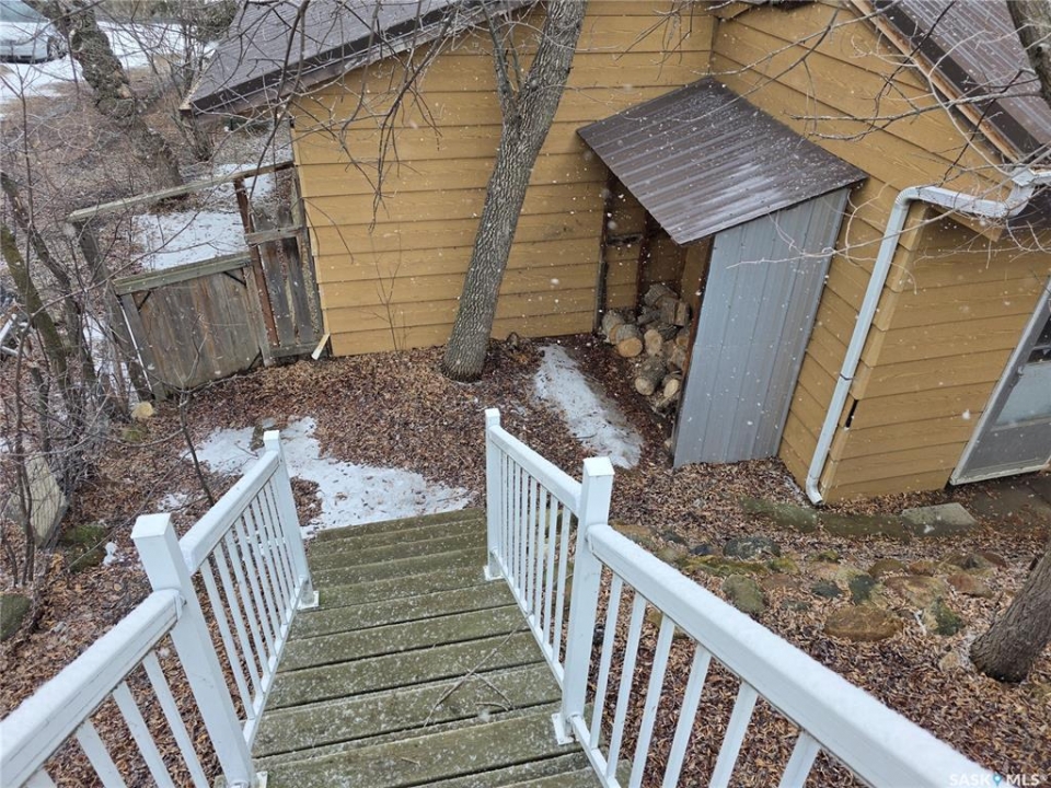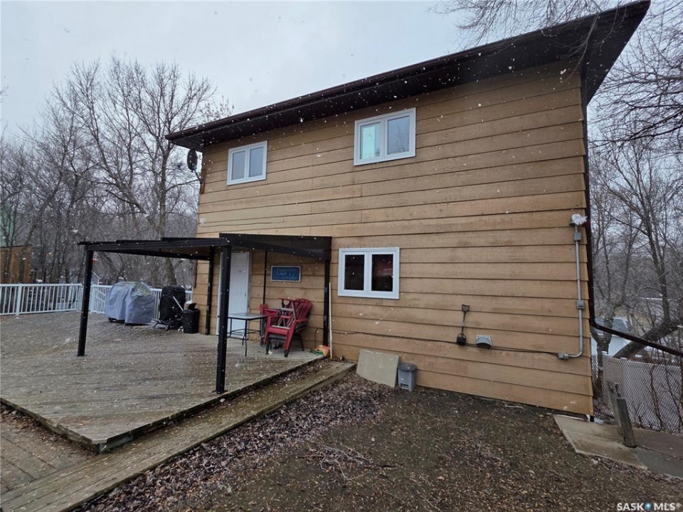 Welcome to your family's ultimate lake escape; where every weekend feels like a getaway & every gathering becomes a lasting memory. Located in the Resort Village of South Lake on Buffalo Pound Lake, this year-round home is the perfect blend of comfort, space, & lifestyle. Designed with a spacious 2-storey walk-out layout, there's room for everyone to relax & feel at home. Pull into the heated double attached garage with workshop space, unload the lake toys, & step into a home made for connection. The lower level is an ideal guest retreat, featuring a cozy family room, 2 versatile dens, & a full bathroom; perfect for hosting family & friends. Upstairs, the main living space is bright & inviting with soaring vaulted ceilings, exposed beams, & large windows that fill the room with natural light. The open-concept design flows seamlessly from the living room to the dining area & spacious kitchen, making entertaining effortless. Main floor laundry & a half bath add everyday convenience. The top floor offers 2 comfortable bedrooms & a full bathroom; perfect for unwinding after a day at the lake. Step outside to your private backyard oasis, complete with a large deck & bonfire area; made for summer nights, laughter, & making memories. There's plenty of space for boats, RVs, & all your lake lifestyle extras. Enjoy quiet mornings with coffee on the deck, afternoons watching the kids & dog play, & evenings spent with the people who matter most. Ideally located just a short walk from the park, boat launch, & beach. This isn't just a home, it's your year-round lake retreat.