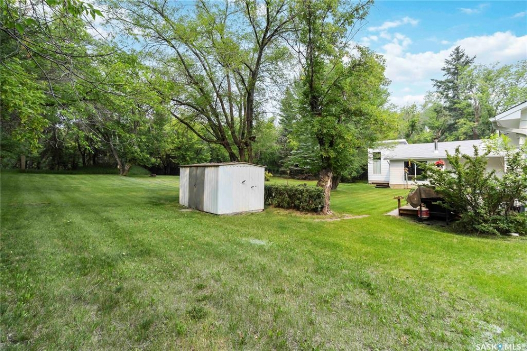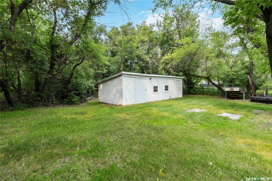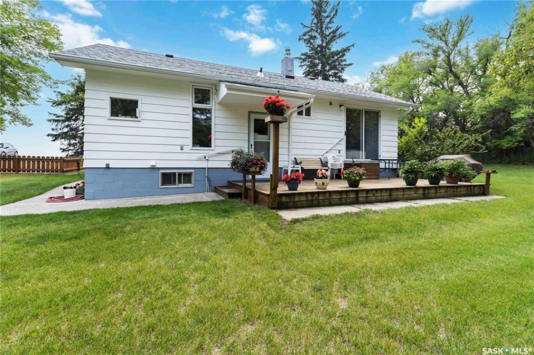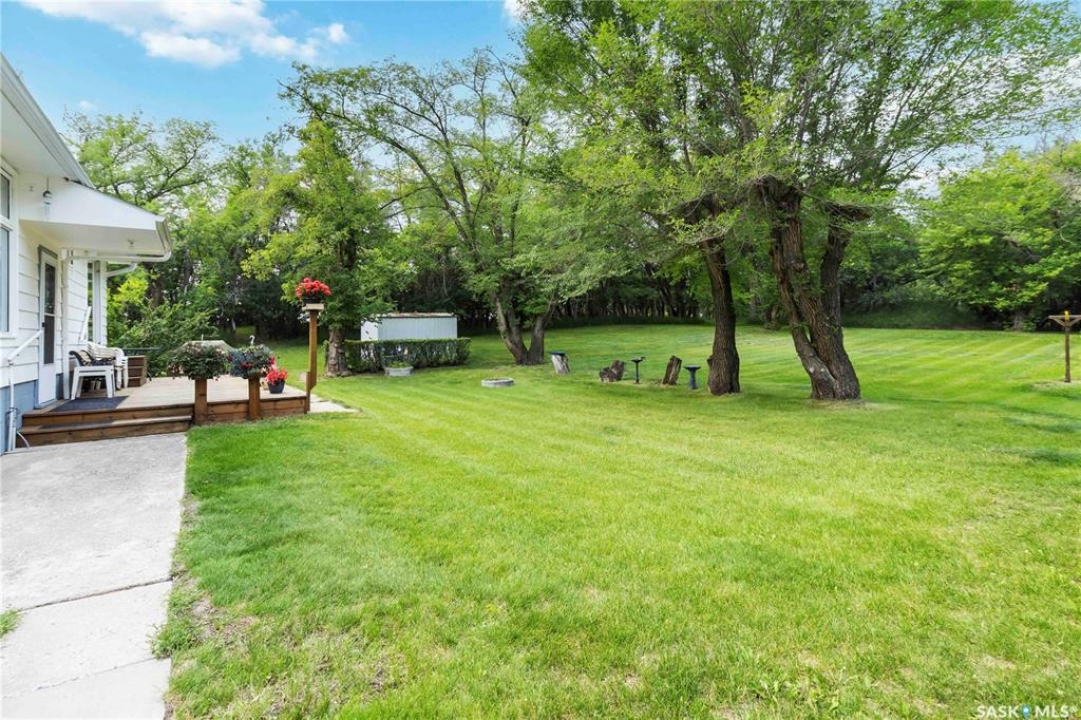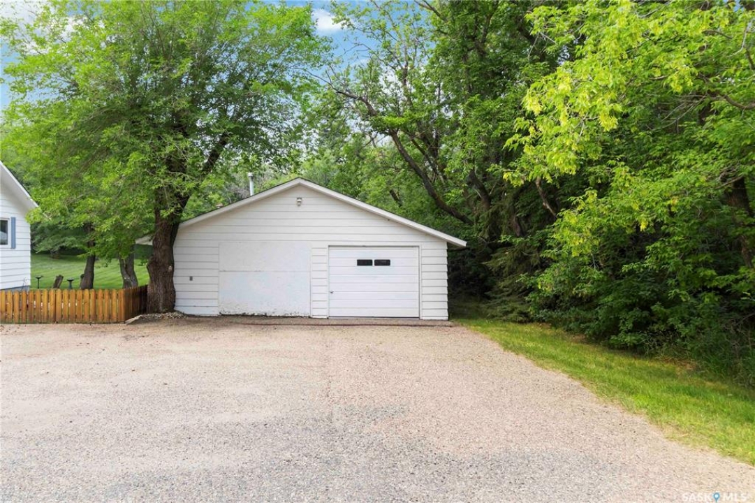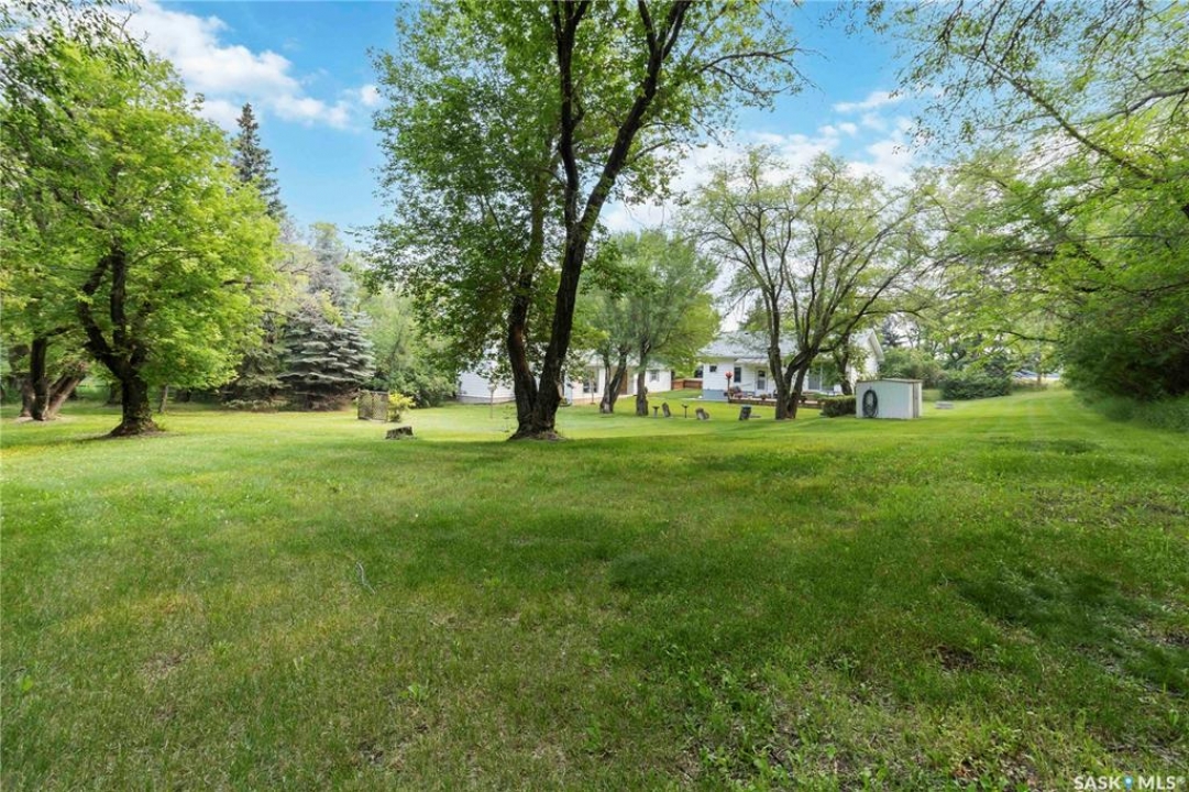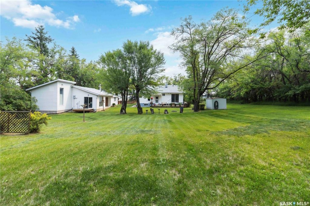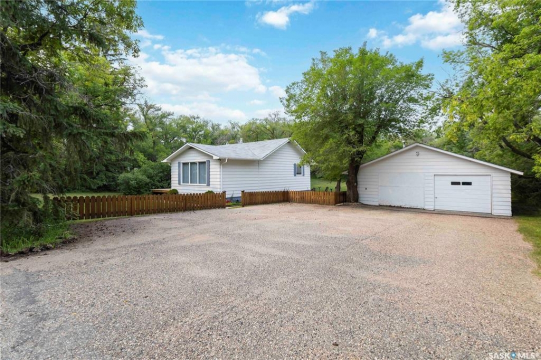 Beautifully treed acreage just minutes from city limits with pavement to the door! This well-maintained bungalow offers 3 bedrooms, 2 bathrooms, and a functional layout with room to make it your own. Recent upgrades include newer windows, brand new shingles on the house and shed (2025), and freshly painted exterior (2025). Serviced with city water to both the home and detached studio, plus two additional wells for added flexibility. The 748 sq ft detached studio is a standout feature—bright and inviting with natural light, gas furnace, water, and dedicated office space. Ideal for a home-based business, creative studio, or potential future garden suite. Double detached garage includes a heated workshop on one side and separate parking stall on the other. Mature landscaping, established trees, and flower beds create a private, peaceful setting. 300 sq ft shed with 30-amp service is perfect for animals or storage. With future subdivision potentia, this property offers excellent long-term value. A rare opportunity for acreage living just minutes from the city!