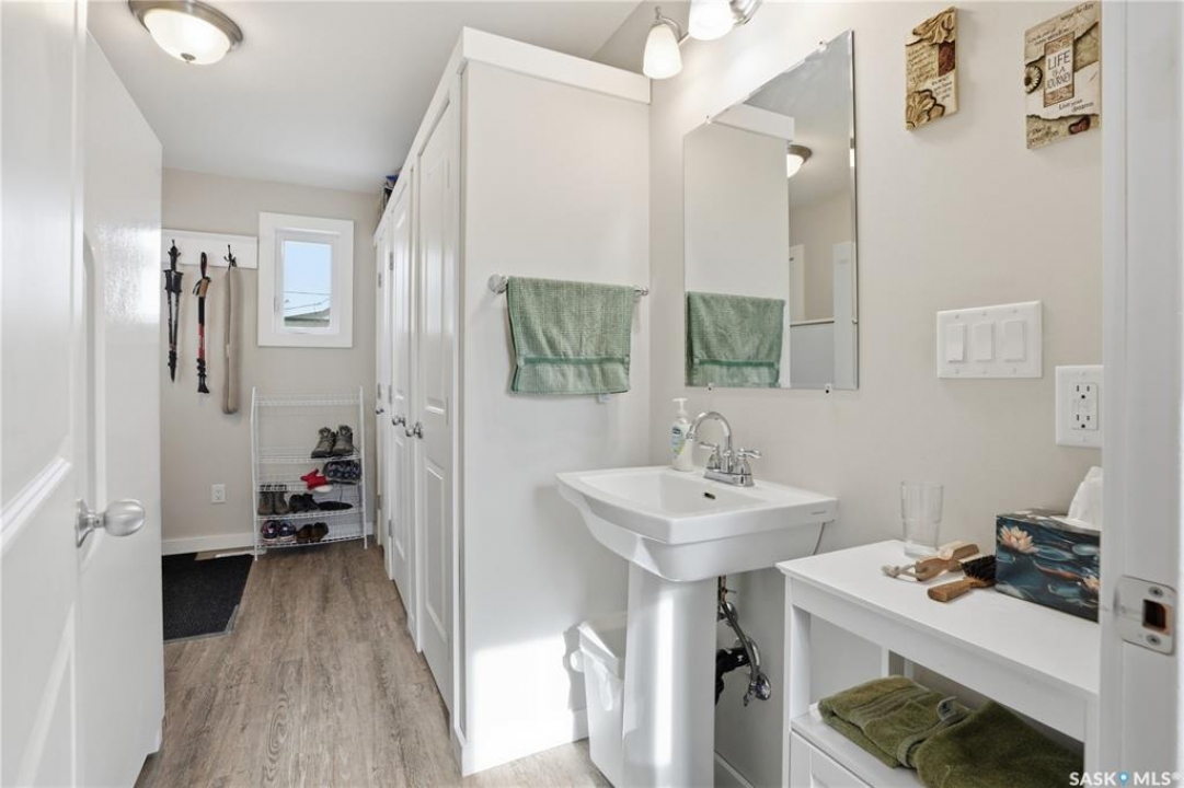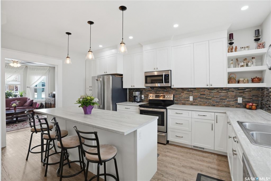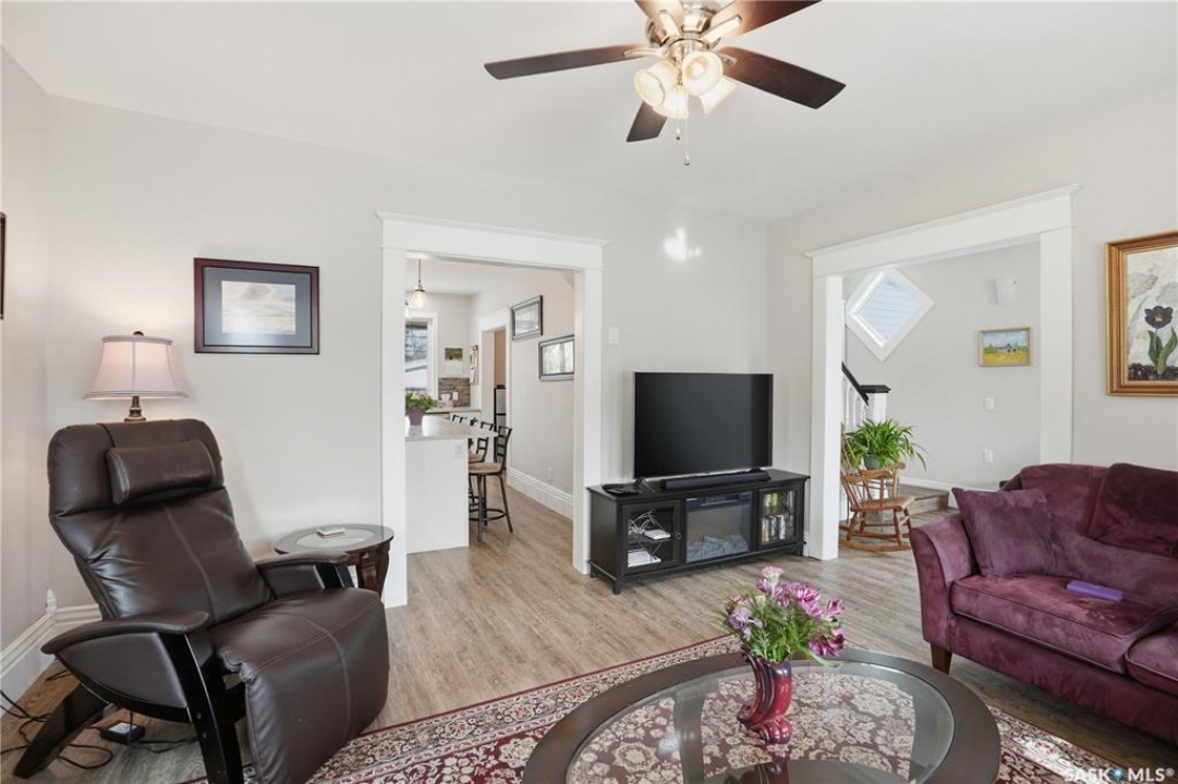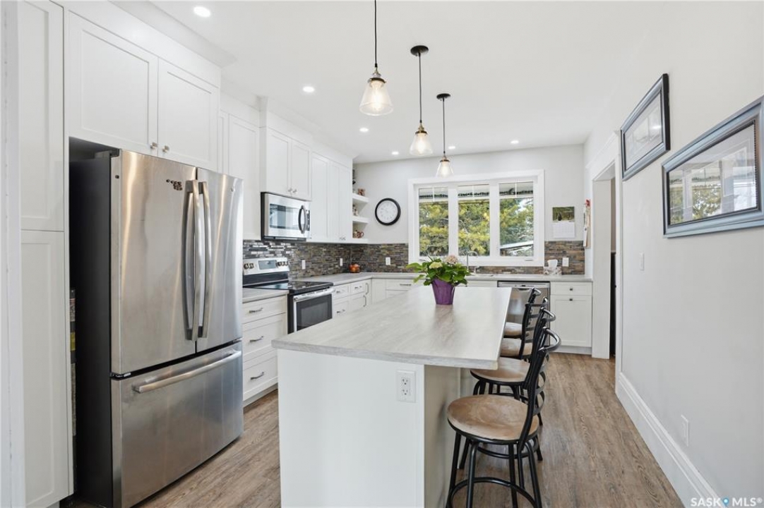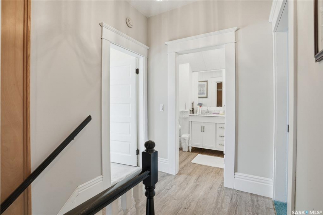 Set on a beautifully landscaped 100 x 125 ft. lot in Harris, this extensively renovated 2-storey home blends character with modern upgrades. Originally built in 1910 and completely redone in 2019 down to the studs, the home has new drywall, vapour barrier, plumbing, electrical, and a backflow valve. The updated interior includes new vinyl plank flooring, fresh paint, and a fully remodeled kitchen with floor-to-ceiling cabinetry, a large island with drawers, new appliances, and a pantry. A 2019 addition brought functionality with a second bathroom, mudroom, and laundry area with new washer and dryer. The second floor has three bedrooms, including a primary suite with a custom walk-in closet and a beautifully redone bathroom. Character has been carefully preserved with original fir trim, baseboards, and door casings. Major mechanical upgrades include a high-efficiency furnace, on-demand water heater, upgraded electrical service, and a 22 kW Generac generator hardwired to power both the home and garage to automatically kick in during a power outage. Additional improvements include triple-pane windows (some updated), new shingles, vinyl siding, and increased attic insulation to R58. Outside, the home has a large new deck, new fencing, two RV plugs, and extensive landscaping including 13 newly planted trees, hundreds of perennials, and regraded yard for improved drainage. A 20 x 12 greenhouse offers year-round growing potential with proper setup. The oversized single attached garage (2018) connects to the original garage, now a functional workshop with loft space. The partially developed basement has lots of storage space and an office. With 1,629 sq. ft. of living space and every major update already completed, this is a rare opportunity to own a fully upgraded character home in a peaceful community. Right across from the elementary school, this home has small-town charm just a short drive to Rosetown, Delisle and the Nutrien Mines and only 40 minutes to Saskatoon.