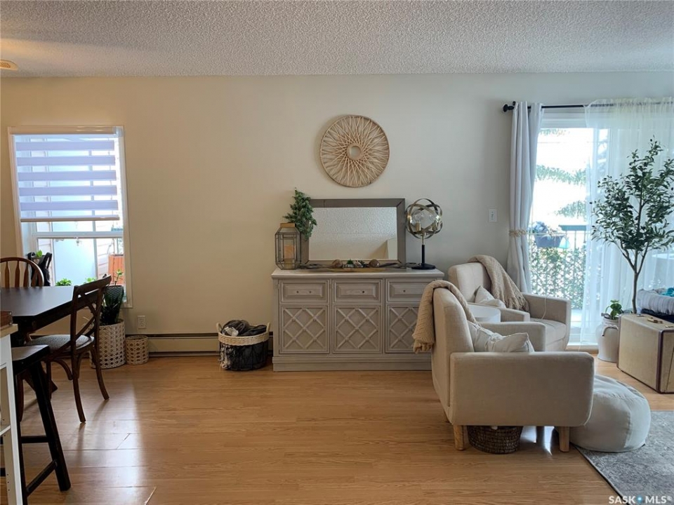 Welcome to Parkview Place, located in downtown Humboldt overlooking the park! This well maintained 2 bedroom, 2 bath unit has been updated and is move in ready! This condo offers a spacious foyer upon entry, with a separate laundry and storage area leading up to the kitchen. The main area of this condo is open and functional. The kitchen offers soft muted cabinetry, stainless steel appliances, and a good workspace plus a separate walk in pantry. A well appointed dining area is adjacent to the kitchen and great for entertaining. Plenty of windows in this unit keep it bright and open. A spacious living room offers patio doors that open to the west facing balcony, the perfect place to sit and watch the sunset. The balcony offers it's own convenient storage unit. This unit offers two spacious bedrooms with the Primary Bedroom offering a 3pc en suite. A full updated bath is located off the bedroom area. This condo comes with one heated main floor parking stall, providing secure parking year round. Parkview Place offers an amenities room for social gatherings, elevator access, secure intercom entry system, and wheelchair accessibility. Enjoy condo living that is close to shopping and services, while still being affordable!