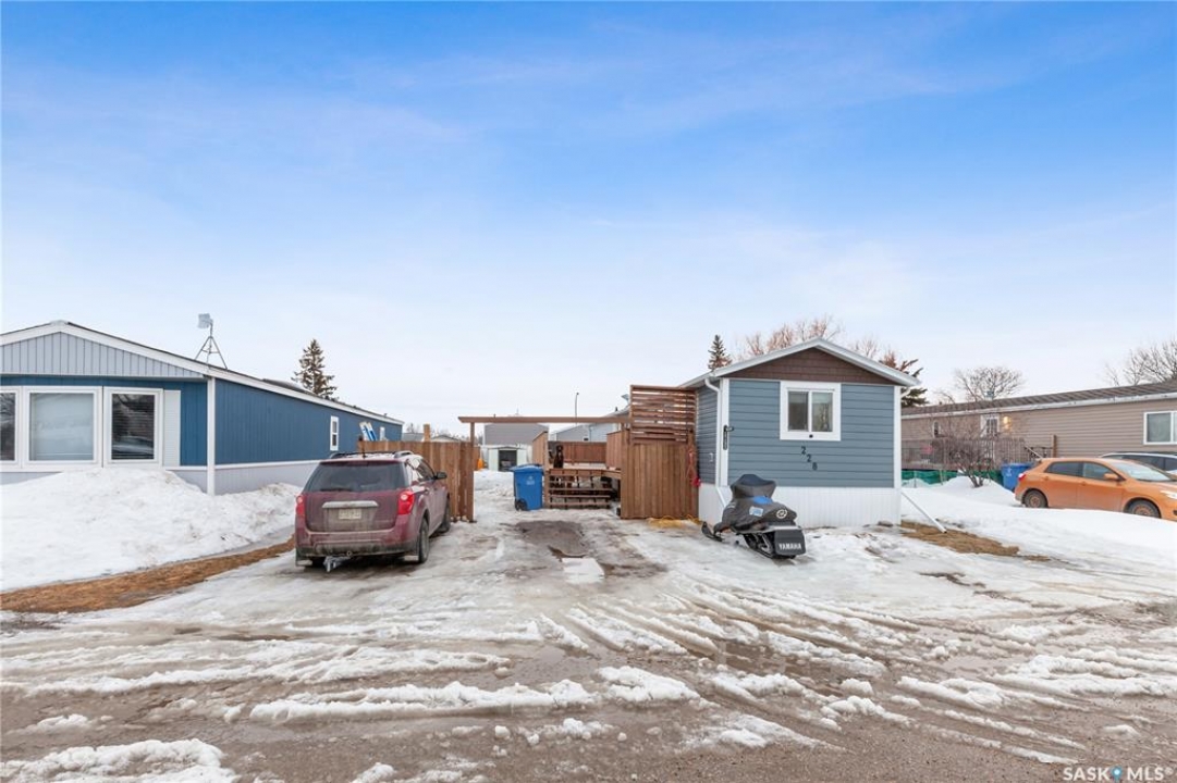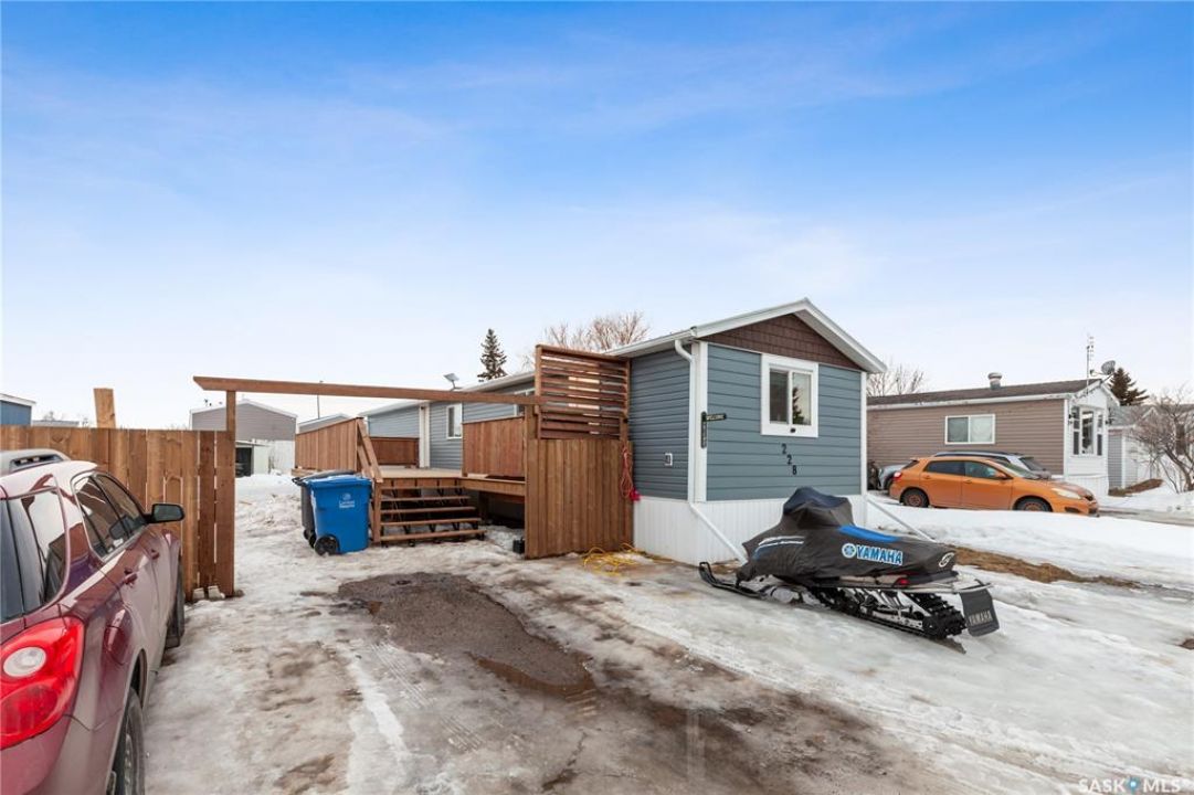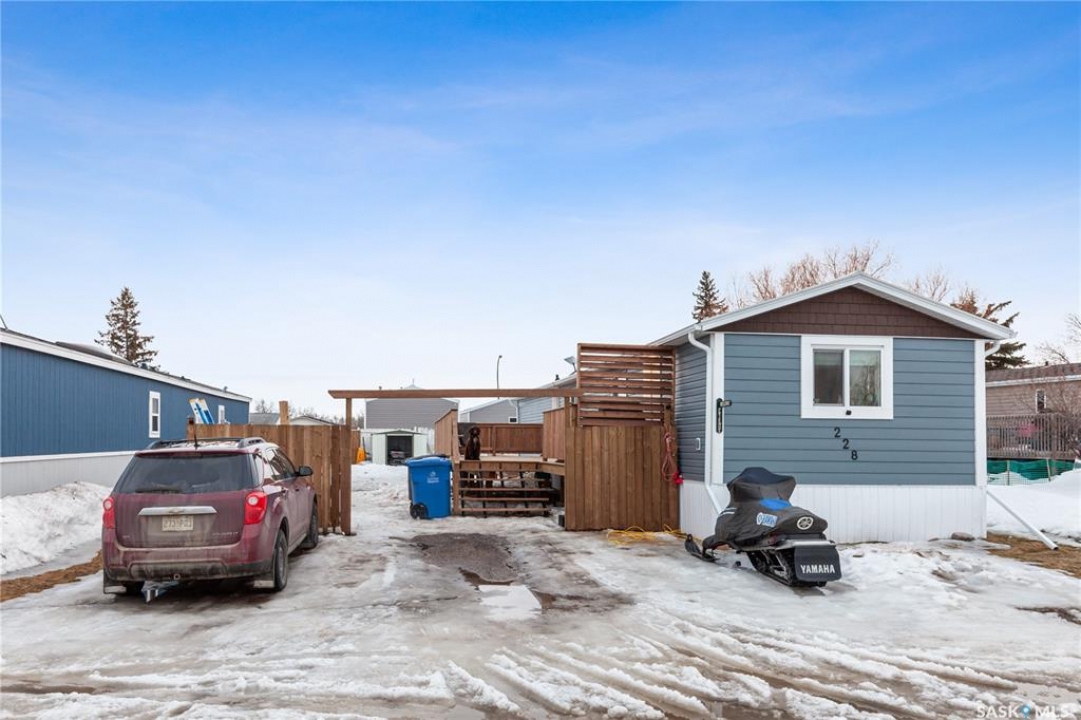 Welcome to 228 Cypress Way. This 952 sq ft home is located in the highly sought-after community of Sunset Estates, just 10 minutes East of Saskatoon. This affordable home near Saskatoon offers the perfect balance of quiet country-style living and quick city access via Highway 5, making it ideal for commuters, first-time home buyers looking for space and value. This extensively renovated home is ready for you. There has been new house wrap, insulation, siding, steel roofing, windows and doors done to the exterior. Inside there has been new copper and PEX plumbing, a new furnace, new water heater, new cabinets, sub floor and flooring, as well as fixtures. The yard has a new pressure treated fence and 40x12 deck. This is a place you only need to bring your furniture and enjoy.