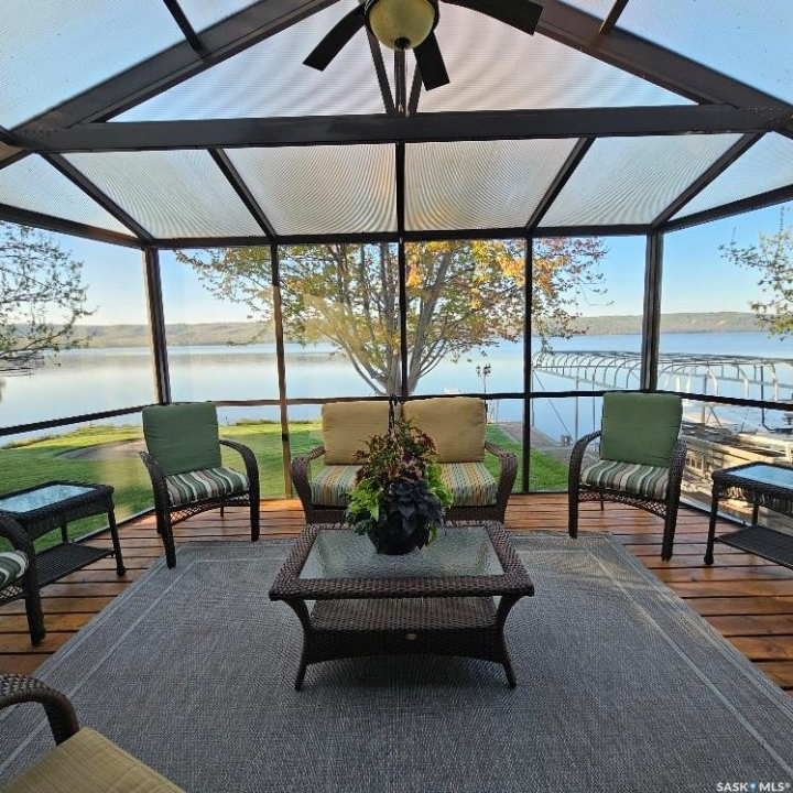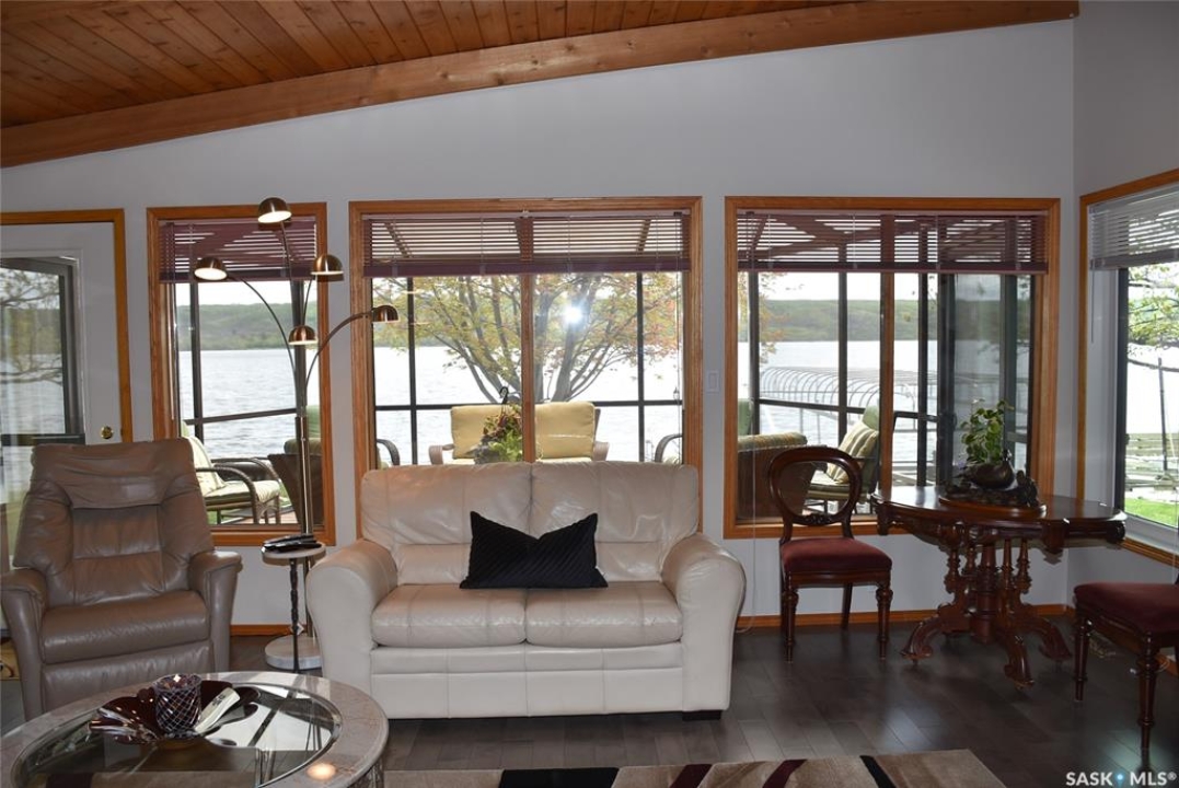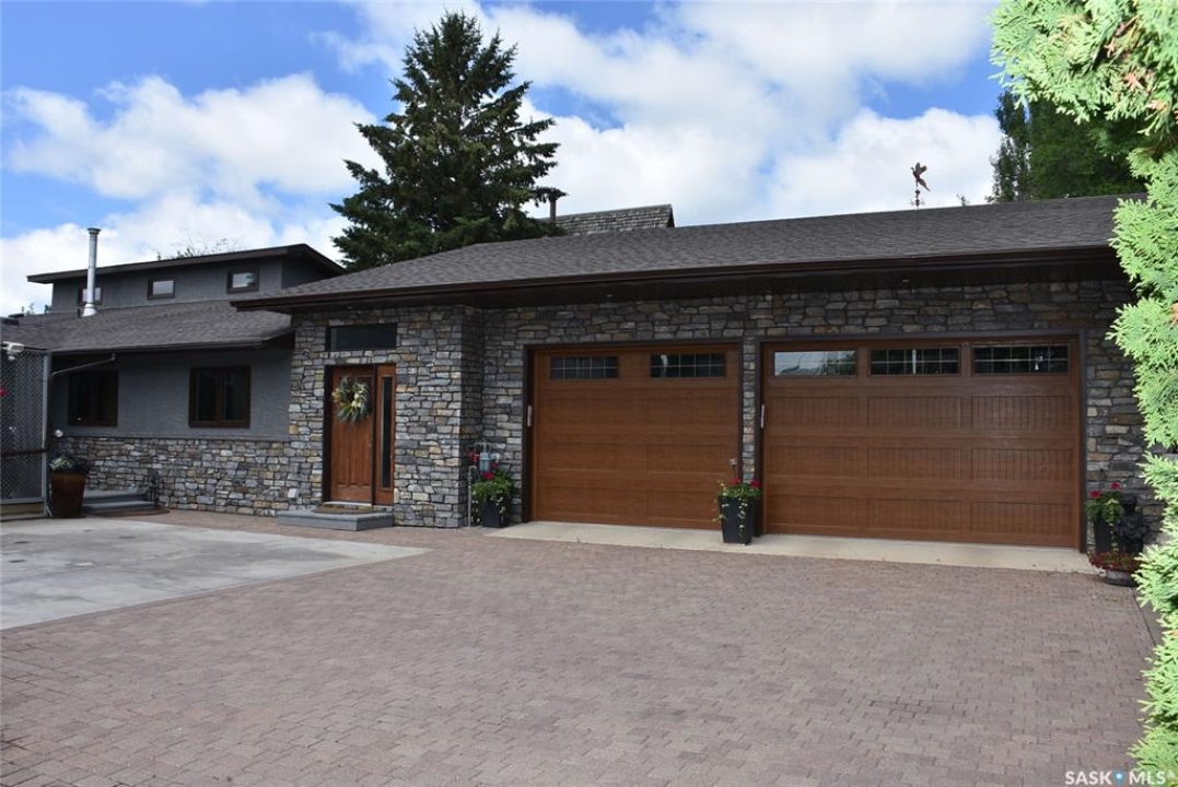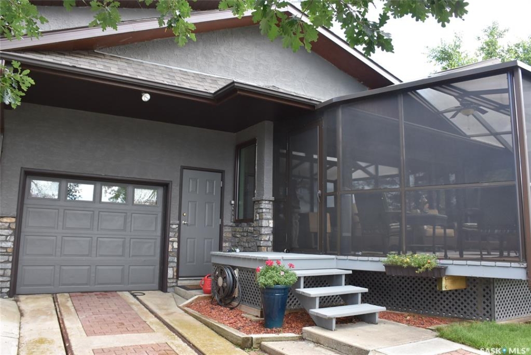 This outstanding lakefront property is located on the East end of Pasqua Lake and has been offered for sale. The property has a level private drive which leads to this stunning lake shore home. When you approach the house, you will notice the real stone and stucco siding and the large parking area. Once inside the kitchen and dining room offers an open concept with vaulted ceiling, beautiful, appointed kitchen with ample storage space. The Dining room is spacious and bright with access to the private deck. The Living room is relaxing with a gas fireplace, vaulted ceiling, hardwood flooring and access to the beautiful screened in sunroom with panoramic views of the lake and is a fantastic spot for your morning coffee or just relaxing with friends. There are four bedrooms on the main with the primary having a large walk-in closet and 3-piece ensuite. The laundry room is conveniently located on the main floor with an amazing amount all new cabinets. The large second floor office has views of the lake and ample space for a workout area or murphy bed for large groups, and the bonus room has a 3-person sauna. The attached heated, 28 x 32 garage is completely finished with PVC interior panels for a clean look, polyaspartic flooring, 10-foot ceiling, 8x10 and 8x12 garage doors, slatwall panels and storage and metal garage storage cabinets. There is a new 18-kilowatt Generac generator ,chemical free iron filter. This property is complete with pier, track, boat dolly, winch with remote, and canopy for the boat dolly. The grounds are immaculate and offer 70 feet of level shoreline with underground sprinklers, flower beds, large lake front grassed area for the kids to play and a beautiful firepit next to the shoreline. There is parking space for 6 vehicles. This is one of the closest properties to the city and is only 1 km to the new convenience store and gas bar. This is one of the premium properties in the valley and must be viewed to appreciate all the upscale amenities.