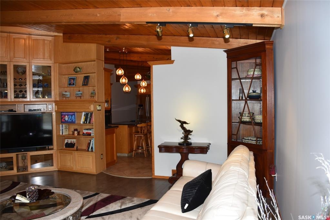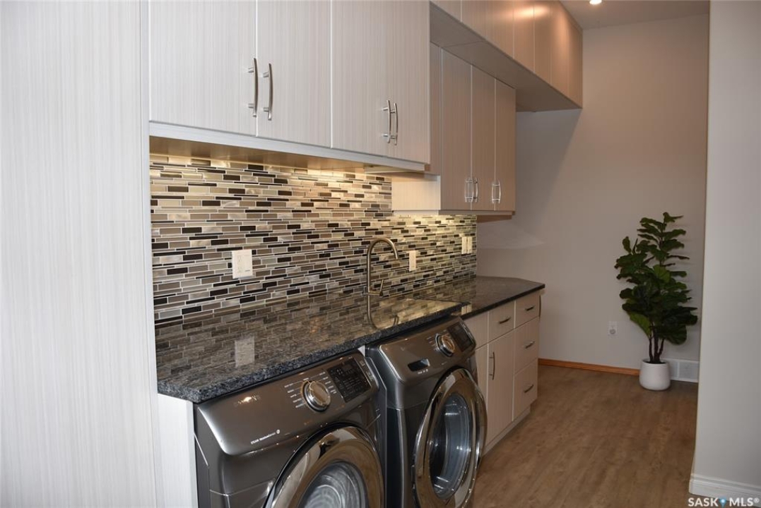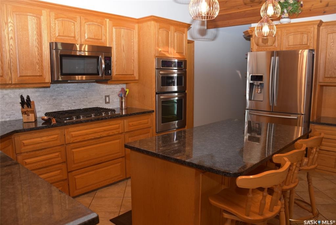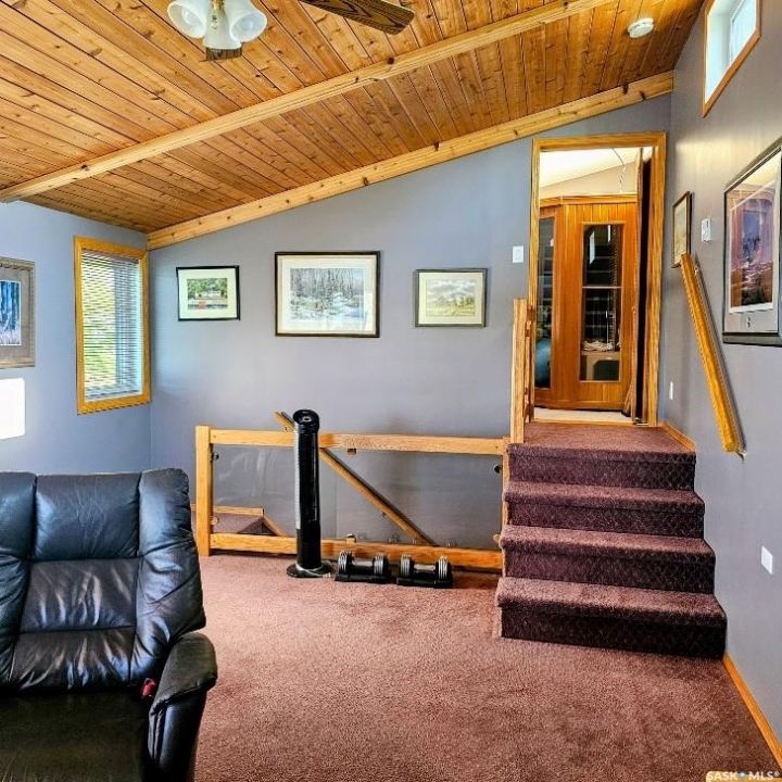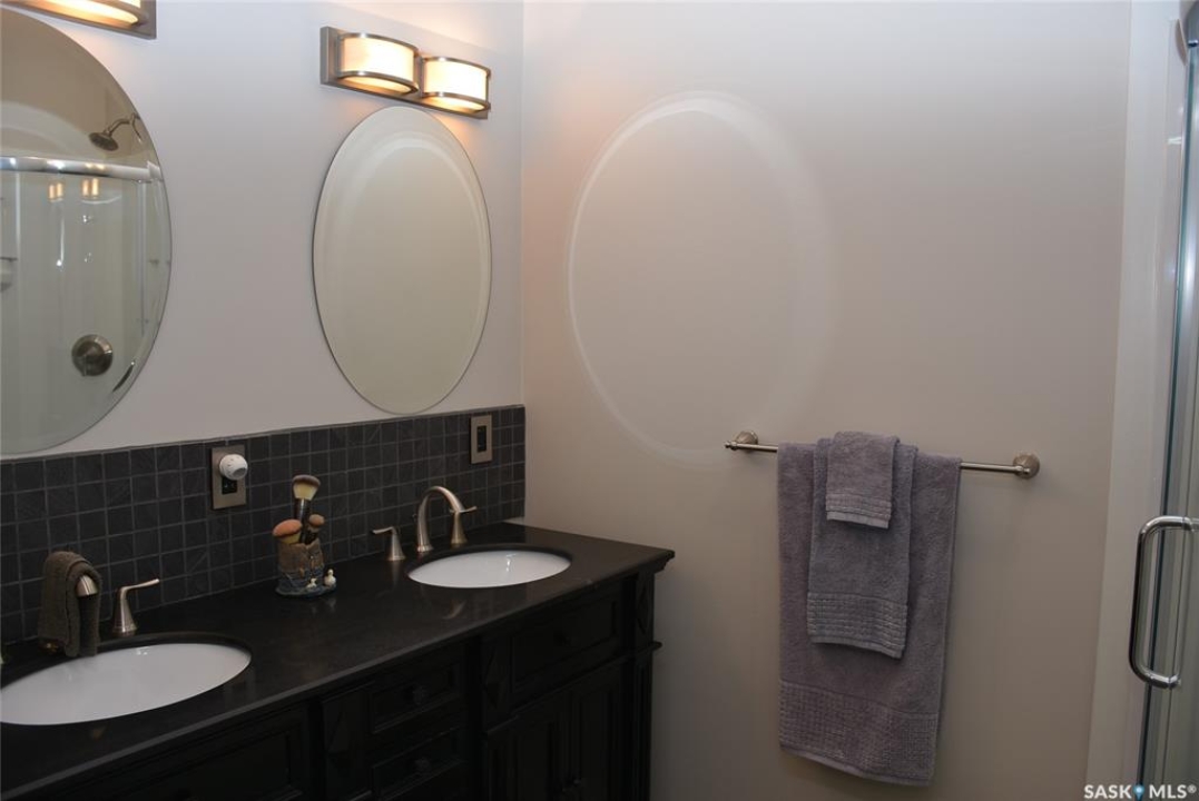 This outstanding lakefront property is located on the East end of Pasqua Lake and has been offered for sale. The property has a level private drive which leads to this stunning lake shore home. When you approach the house, you will notice the real stone and stucco siding and the large parking area. Once inside the kitchen and dining room offers an open concept with vaulted ceiling, beautiful, appointed kitchen with ample storage space. The Dining room is spacious and bright with access to the private deck. The Living room is relaxing with a gas fireplace, vaulted ceiling, hardwood flooring and access to the beautiful screened in sunroom with panoramic views of the lake and is a fantastic spot for your morning coffee or just relaxing with friends. There are four bedrooms on the main with the primary having a large walk-in closet and 3-piece ensuite. The laundry room is conveniently located on the main floor with an amazing amount all new cabinets. The large second floor office has views of the lake and ample space for a workout area or murphy bed for large groups, and the bonus room has a 3-person sauna. The attached heated, 28 x 32 garage is completely finished with PVC interior panels for a clean look, polyaspartic flooring, 10-foot ceiling, 8x10 and 8x12 garage doors, slatwall panels and storage and metal garage storage cabinets. There is a new 18-kilowatt Generac generator ,chemical free iron filter. This property is complete with pier, track, boat dolly, winch with remote, and canopy for the boat dolly. The grounds are immaculate and offer 70 feet of level shoreline with underground sprinklers, flower beds, large lake front grassed area for the kids to play and a beautiful firepit next to the shoreline. There is parking space for 6 vehicles. This is one of the closest properties to the city and is only 1 km to the new convenience store and gas bar. This is one of the premium properties in the valley and must be viewed to appreciate all the upscale amenities.