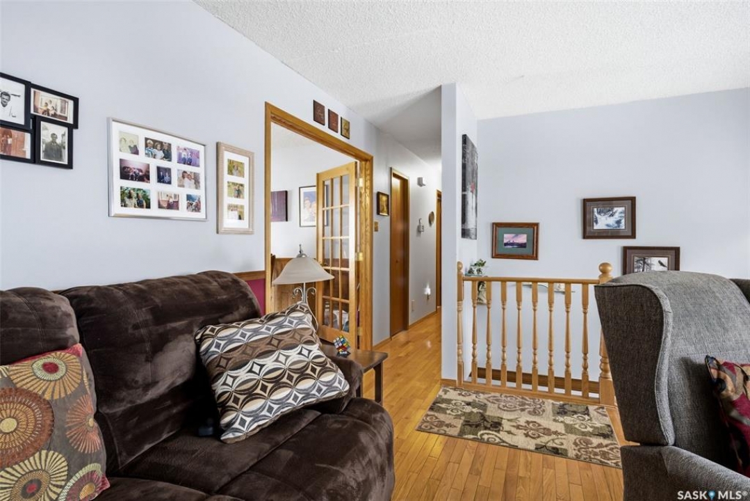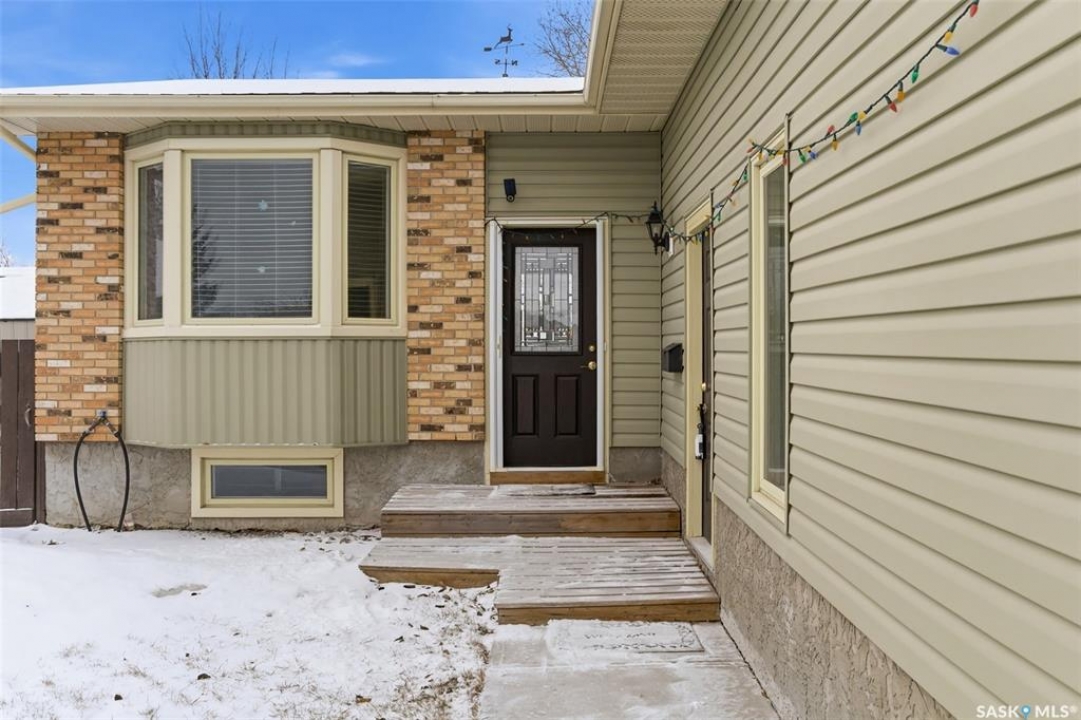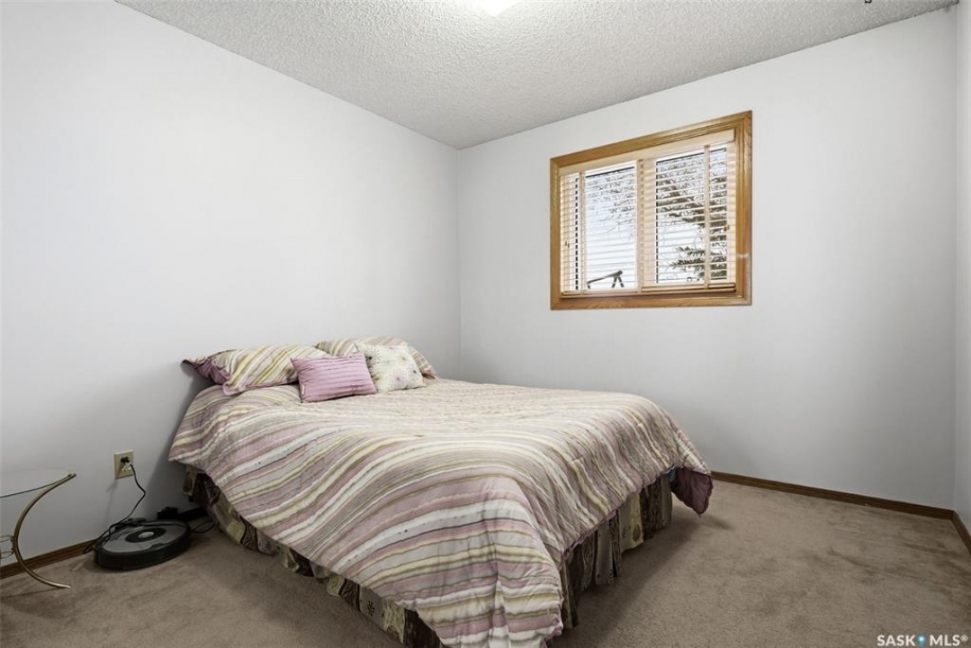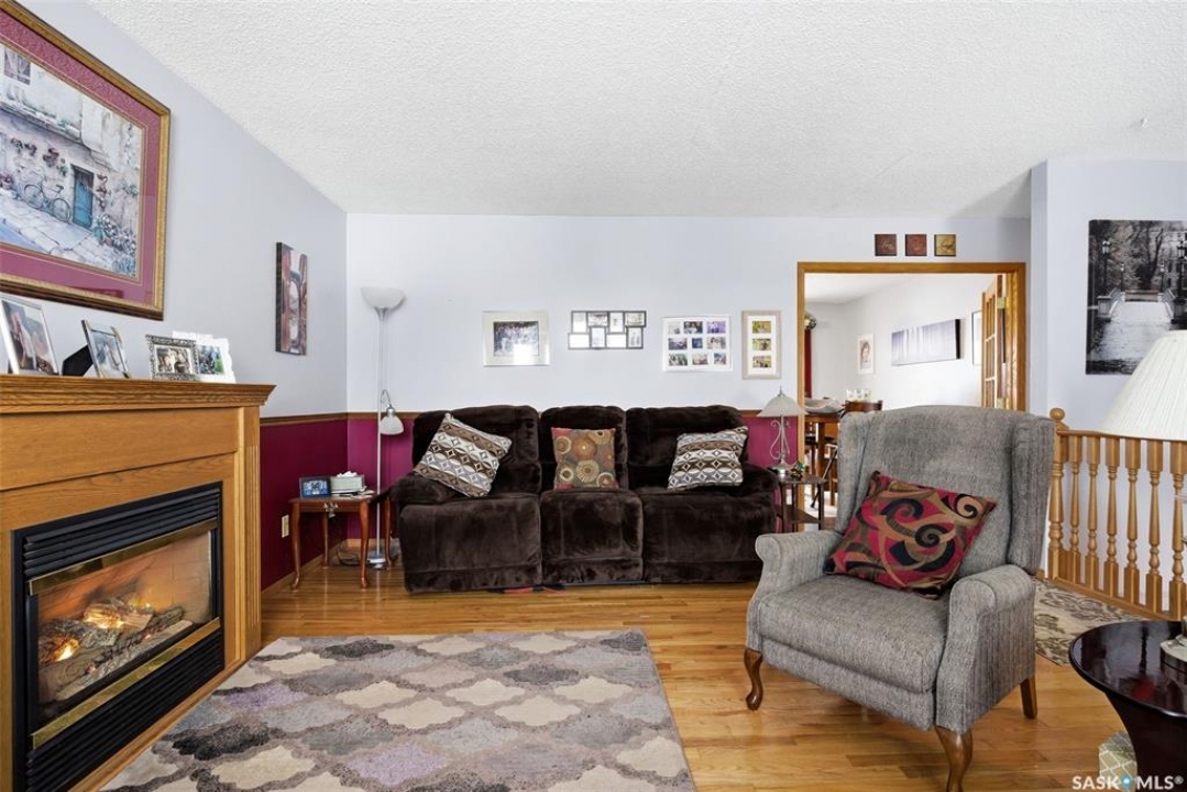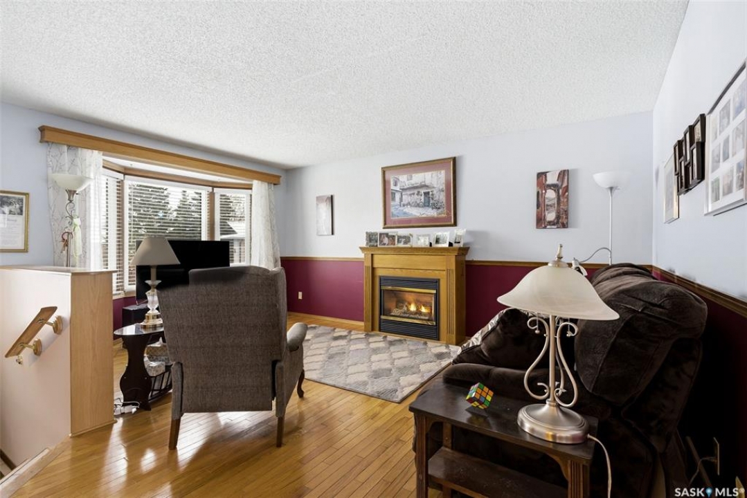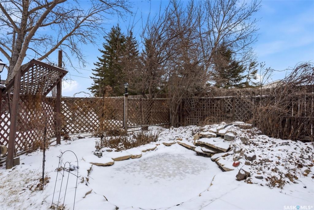 Welcome to this 1,207 sq. ft. raised bungalow tucked away on a quiet bay in Rochdale Park. This home offers a double attached garage, three main floor bedrooms, and two main floor bathrooms including a 3-piece ensuite off the primary bedroom. Hardwood flooring adds warmth through the living room, hallway, and primary bedroom, while PVC windows and the raised bungalow design allow for plenty of natural light on both levels. The west-facing oversized backyard is a standout feature, offering no neighbours behind, unobstructed prairie sunset views, a large two-tier deck, and a pond in the yard for added outdoor enjoyment. Seller states the kitchen countertop, laminate flooring, and built-in oven & fridge were updated in 2018, with an island, basement bathroom, and den added in 2019, and High Efficient furnace in 2022. Gas fireplaces in both the main floor and basement living rooms add comfort and character. A well-located family home with space, updates, and a great outdoor setting in a sought-after north Regina neighbourhood.