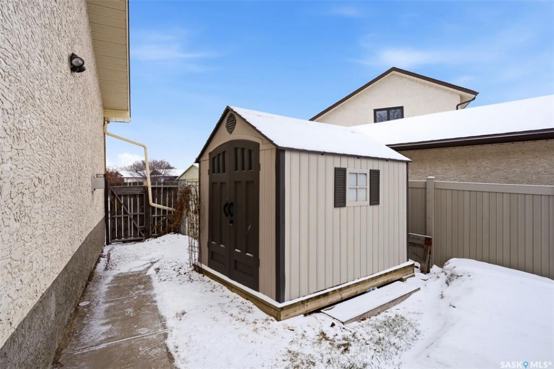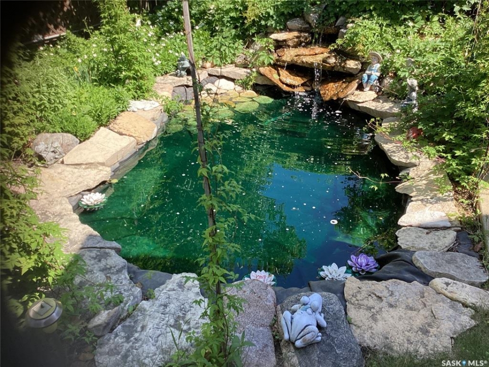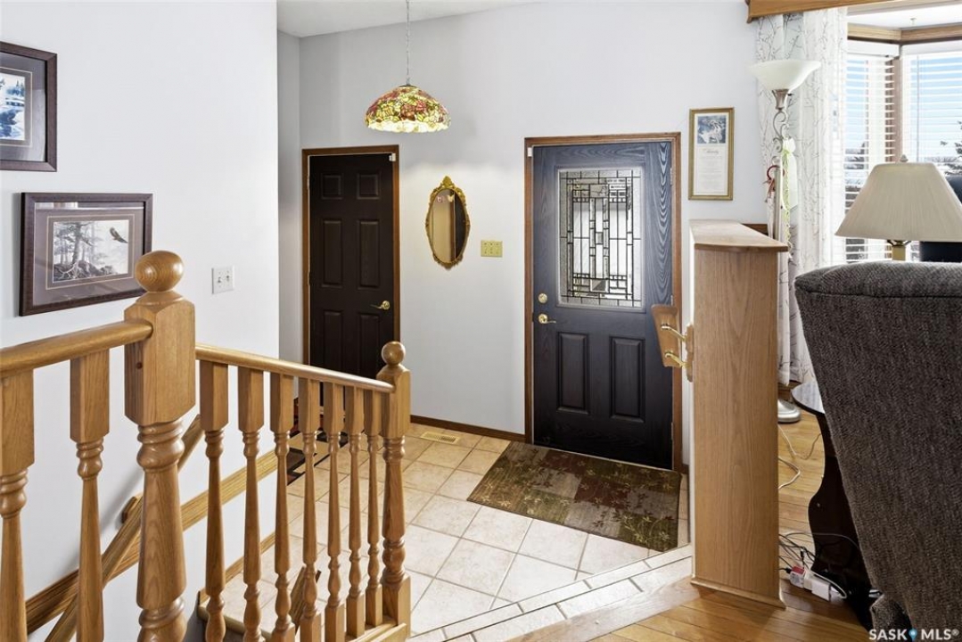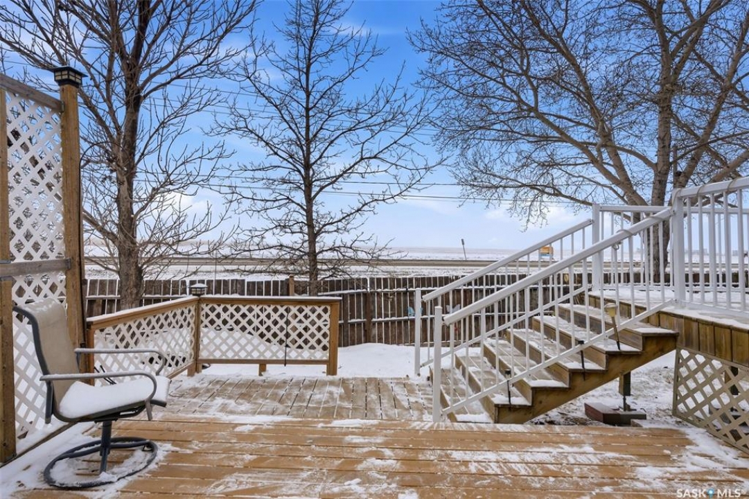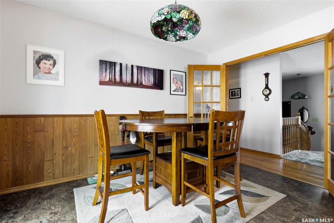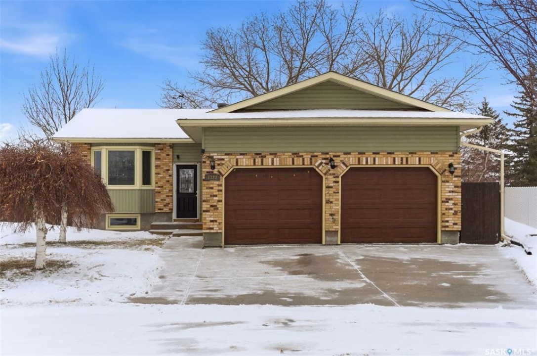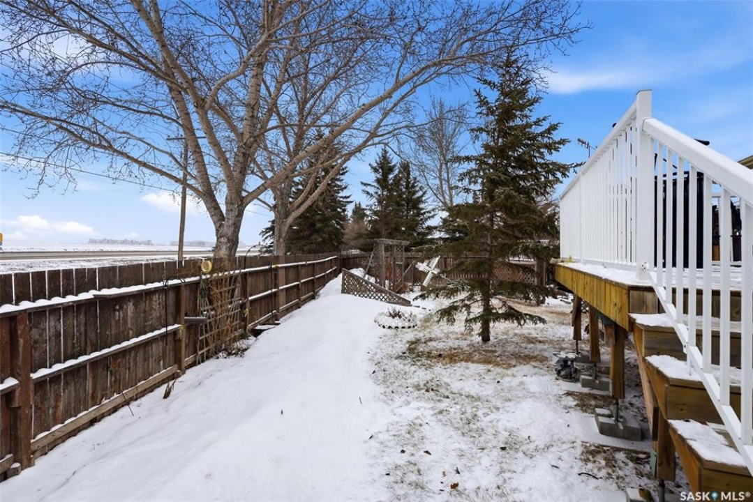 Welcome to this 1,207 sq. ft. raised bungalow tucked away on a quiet bay in Rochdale Park. This home offers a double attached garage, three main floor bedrooms, and two main floor bathrooms including a 3-piece ensuite off the primary bedroom. Hardwood flooring adds warmth through the living room, hallway, and primary bedroom, while PVC windows and the raised bungalow design allow for plenty of natural light on both levels. The west-facing oversized backyard is a standout feature, offering no neighbours behind, unobstructed prairie sunset views, a large two-tier deck, and a pond in the yard for added outdoor enjoyment. Seller states the kitchen countertop, laminate flooring, and built-in oven & fridge were updated in 2018, with an island, basement bathroom, and den added in 2019, and High Efficient furnace in 2022. Gas fireplaces in both the main floor and basement living rooms add comfort and character. A well-located family home with space, updates, and a great outdoor setting in a sought-after north Regina neighbourhood.