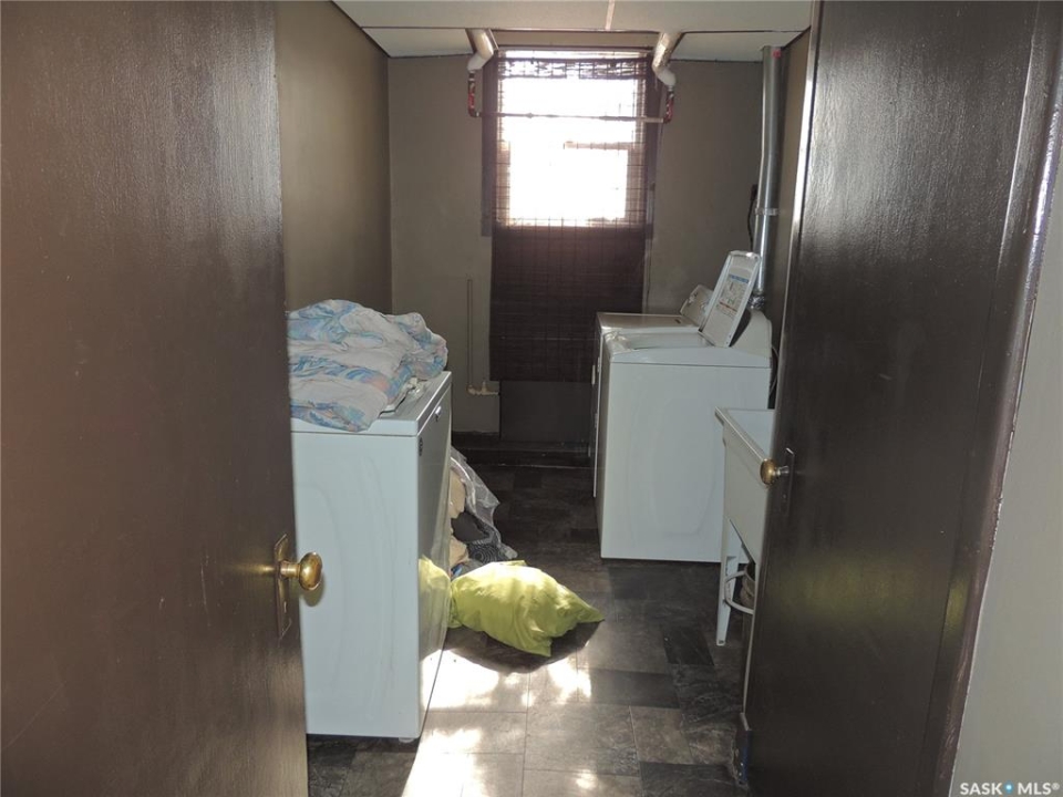 This building consists of 19 units. There is one two bedroom unit with a private bathroom and kitchen, and one one bedroom unit. There are an additional 17 private rooms with shared amenities. The building has a laundry room and kitchen on each floor. There are also shared bathrooms for the units. It is in a great location in Bienfait for ease of access to the mines and Shand power station.