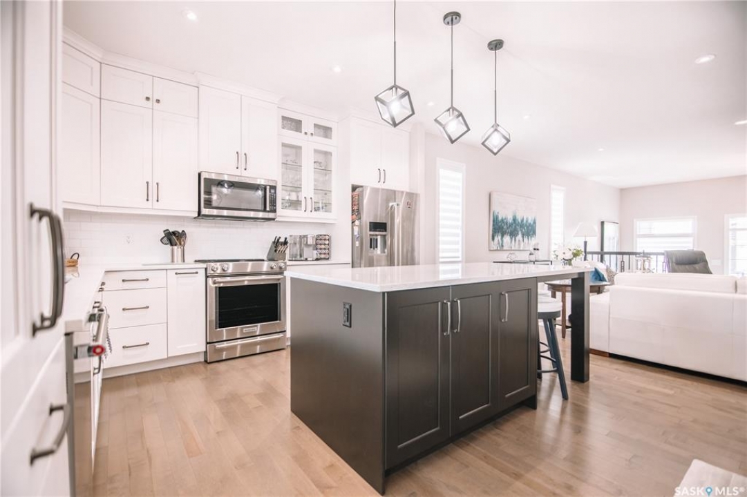 Welcome to 4960 Wright Road, a beautifully crafted just under 1500 sq/ft bungalow built by Northridge Homes, located on one of Harbour Landing's most sought-after streets. This meticulously cared-for home offers an exceptional layout with 4 bedrooms and 3 bathrooms, including 2 spacious bedrooms on the main floor and 2 additional bedrooms in the fully developed basement. The main level features tall ceilings, large windows, and an open concept design that highlights a custom upgraded kitchen with high-end finishes, perfect for both everyday living and entertaining. Cozy up to the gas fireplace in the living room, while the lower level offers a second generous living space complete with another gas fireplace, creating the perfect retreat for family gatherings or movie nights. Step outside to enjoy the 3-season room overlooking the beautifully xeriscaped backyard, designed for low maintenance and maximum enjoyment. The xeriscaped front yard, along with the large double attached garage, adds both curb appeal and convenience. Situated in a prime Harbour Landing location, this home is within walking distance to parks, walking paths, and all the amenities the area has to offer. A rare opportunity to own a thoughtfully designed bungalow on prestigious Wright Road.