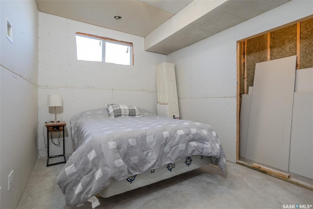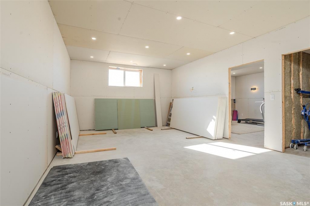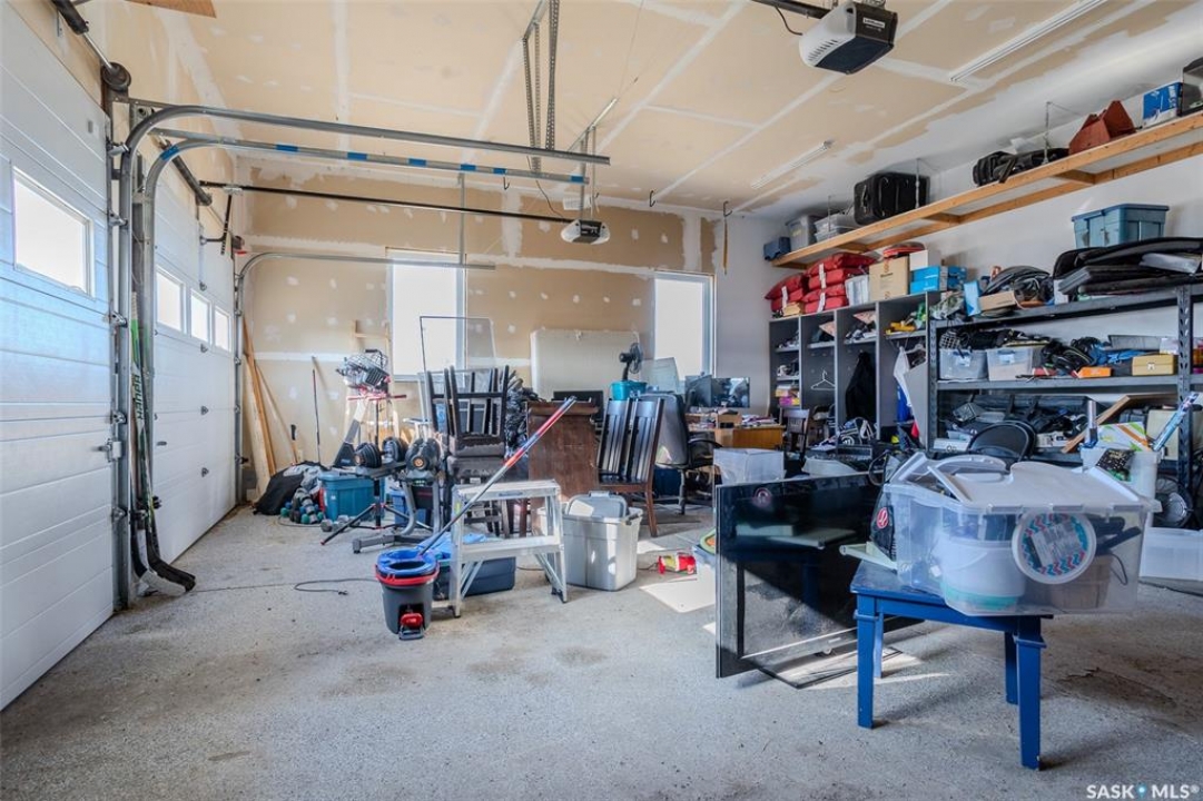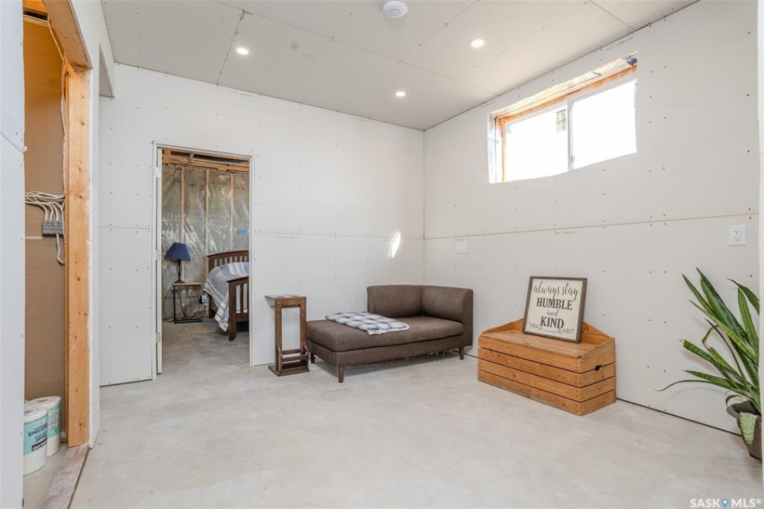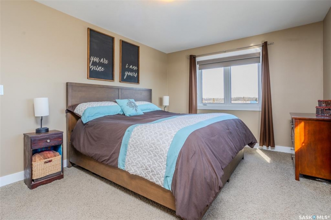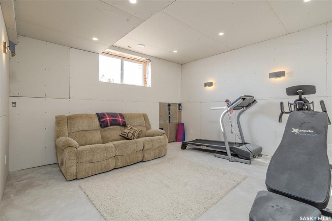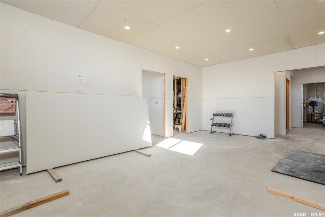 Welcome to this raised bungalow on 5 acres just 10 minutes south of Saskatoon, offering space, privacy, and an easy drive to the city. The main floor features vaulted ceilings and an open concept layout with hardwood flooring in the living room, tile through the kitchen and dining, and a gas fireplace. The kitchen includes granite countertops, under cabinet lighting, soft close cabinetry, a large island with double undermount sink and central vac kick plate, built in dishwasher, microwave hood fan, corner pantry, and a coffee area with a window overlooking the yard. Patio doors off the dining area lead to a partially covered deck with two natural gas BBQ hook ups. Completing the main level are two secondary bedrooms (bedroom closets have lights), a 4 piece bathroom, and a primary bedroom with windows on two walls, a 5 piece ensuite, and walk in closet. In floor heat runs through the living room, kitchen, dining, and bathrooms. Laundry is conveniently located off the garage entry. The attached garage offers 12 foot ceilings, double overhead doors, in floor heat, epoxy flooring, built in shelving, and a separate 60 amp panel. The basement is framed and drywalled for two bedrooms and a full bathroom, with pot lighting, 9 foot ceilings, and large windows. Safe and sound insulation has been added, and the home is wired for Control4. Outside, there is a 36 x 40 steel shop with concrete floor, 16 x 12 overhead door and 100 amp panel. The yard includes over 100 trees on a drip line system, adding future privacy and room to grow. The property is serviced with fiber optic internet, with access in both the garage and shop, and city water with a new pressure system installed in 2024. School bus service is available to South Corman Park for K-8 and Clavet for 9-12. This property has space for kids to run, quiet mornings, and room to build the lifestyle you want. Two large animals allowed, ideal for horse enthusiasts. Call your Realtor today to book your private showing!