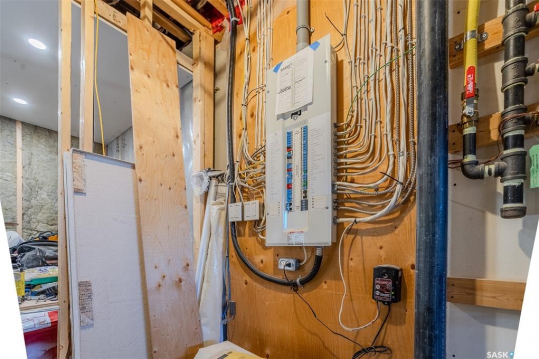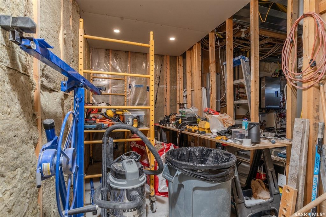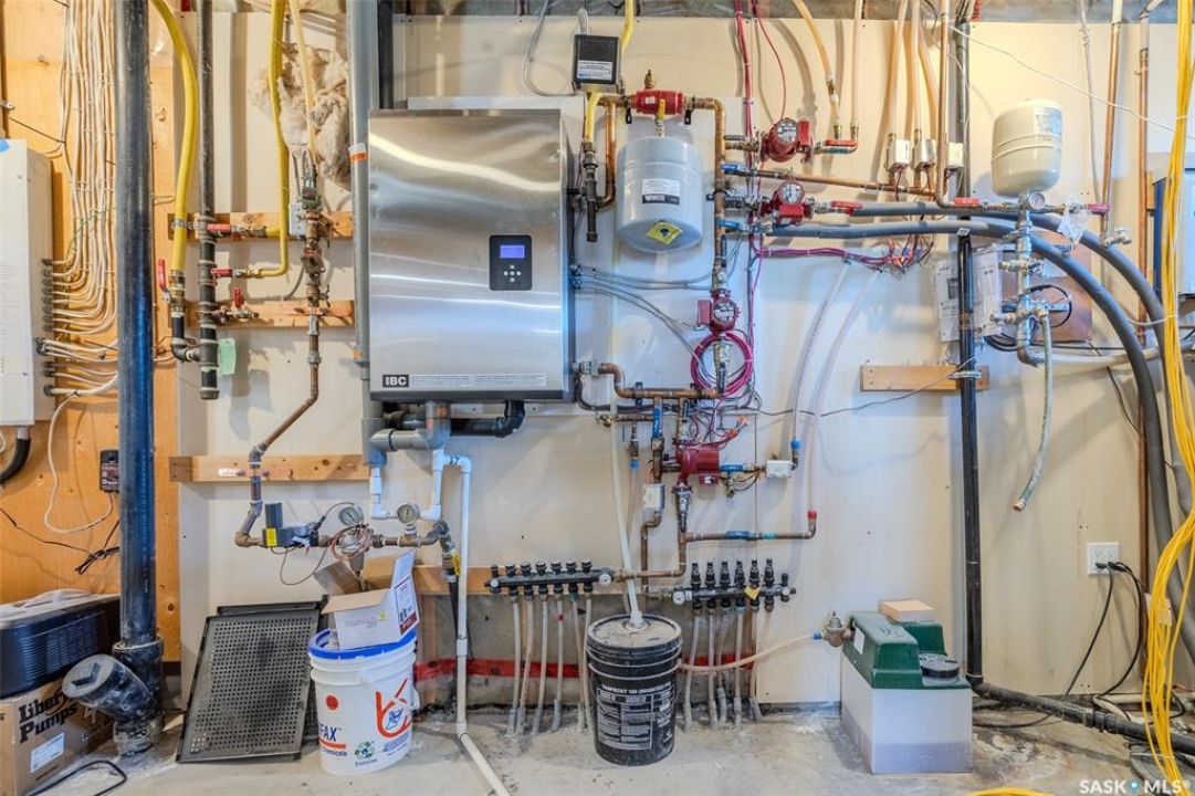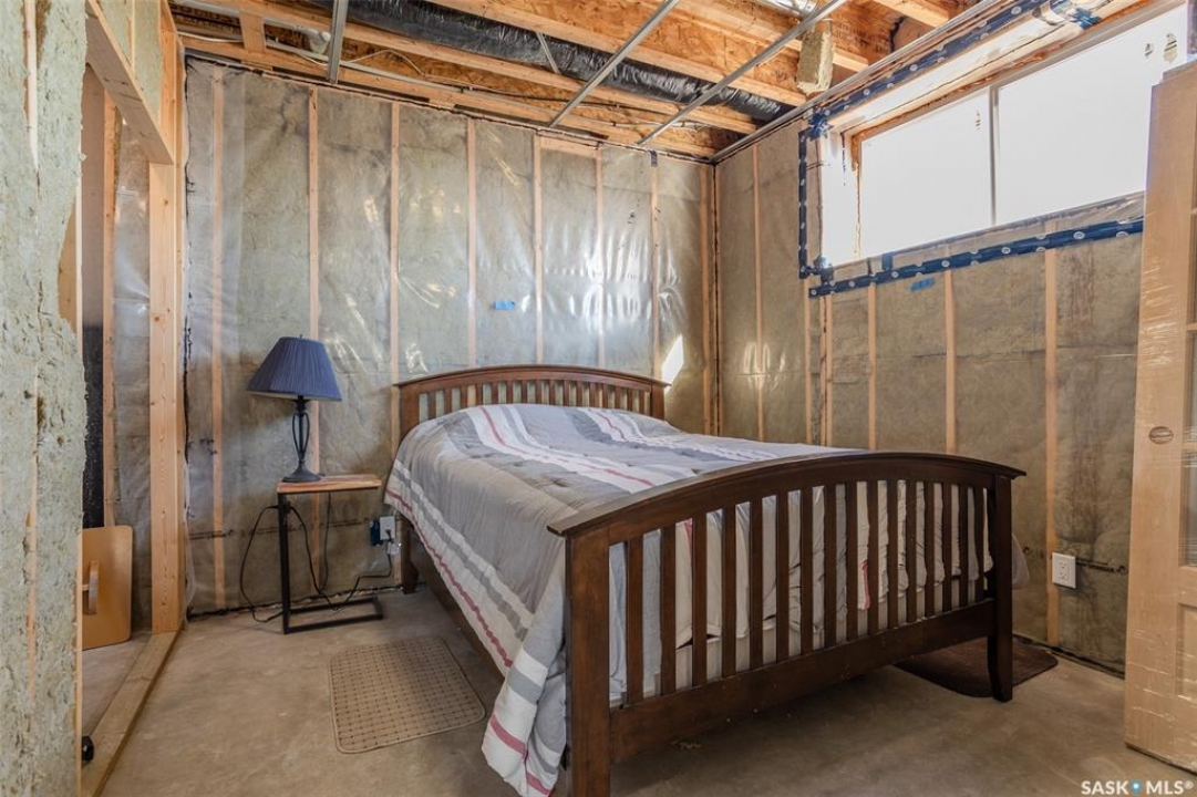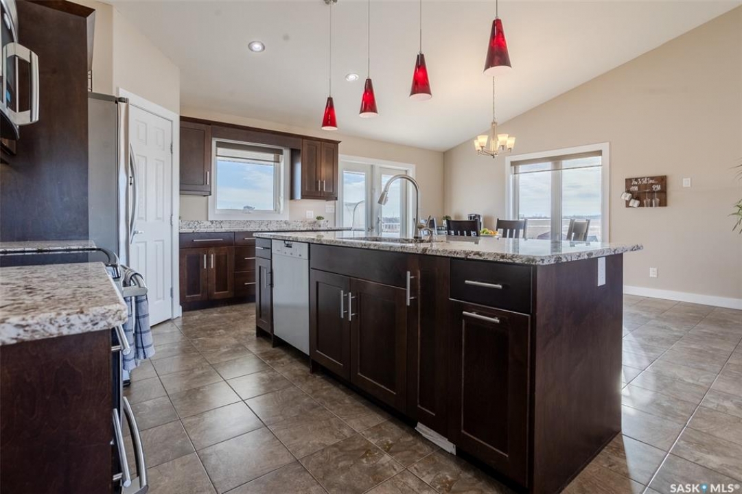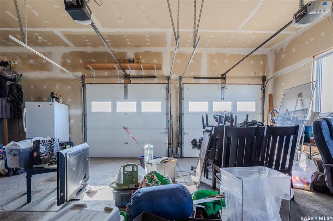 Welcome to this raised bungalow on 5 acres just 10 minutes south of Saskatoon, offering space, privacy, and an easy drive to the city. The main floor features vaulted ceilings and an open concept layout with hardwood flooring in the living room, tile through the kitchen and dining, and a gas fireplace. The kitchen includes granite countertops, under cabinet lighting, soft close cabinetry, a large island with double undermount sink and central vac kick plate, built in dishwasher, microwave hood fan, corner pantry, and a coffee area with a window overlooking the yard. Patio doors off the dining area lead to a partially covered deck with two natural gas BBQ hook ups. Completing the main level are two secondary bedrooms (bedroom closets have lights), a 4 piece bathroom, and a primary bedroom with windows on two walls, a 5 piece ensuite, and walk in closet. In floor heat runs through the living room, kitchen, dining, and bathrooms. Laundry is conveniently located off the garage entry. The attached garage offers 12 foot ceilings, double overhead doors, in floor heat, epoxy flooring, built in shelving, and a separate 60 amp panel. The basement is framed and drywalled for two bedrooms and a full bathroom, with pot lighting, 9 foot ceilings, and large windows. Safe and sound insulation has been added, and the home is wired for Control4. Outside, there is a 36 x 40 steel shop with concrete floor, 16 x 12 overhead door and 100 amp panel. The yard includes over 100 trees on a drip line system, adding future privacy and room to grow. The property is serviced with fiber optic internet, with access in both the garage and shop, and city water with a new pressure system installed in 2024. School bus service is available to South Corman Park for K-8 and Clavet for 9-12. This property has space for kids to run, quiet mornings, and room to build the lifestyle you want. Two large animals allowed, ideal for horse enthusiasts. Call your Realtor today to book your private showing!