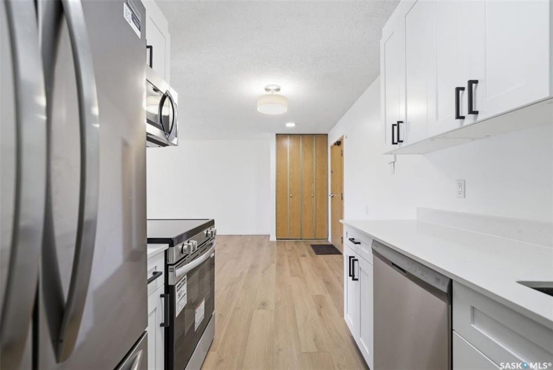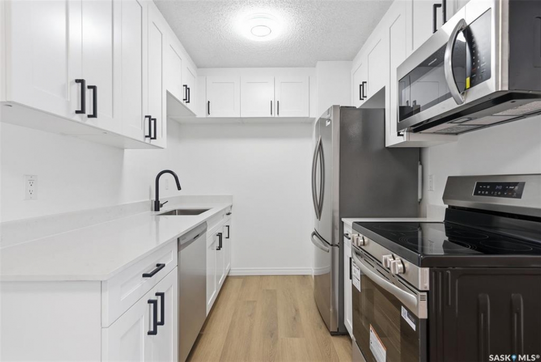 Welcome to 306-403 Tait Court. This fully and substantially renovated top-floor, 2-bedroom condo is located in the highly desirable Wildwood community, with recent renovations just completed. Ideally located next to a park and golf course, this home offers access to walking trails and is just minutes from 8th Street shopping, schools, and U of S, with a direct bus route and a 10–15 minute commute to campus. More affordable than renting, this bright and cozy unit features a spacious living room with a south-facing patio door that fills the space with natural light throughout the day. The extensively updated interior includes a brand-new kitchen with granite countertops, a new sink, modern cabinetry, and stainless steel appliances. Fresh paint, new laminate flooring, an updated bathroom vanity, and modern light fixtures add to the home's clean, move-in-ready appeal. Additional highlights include in-suite laundry with brand-new washer and dryer, extra balcony storage, and one electrified parking stall. Offering exceptional value in a fantastic location, this is a great opportunity for first-time buyers, students, or investors. Call today to book your private viewing!