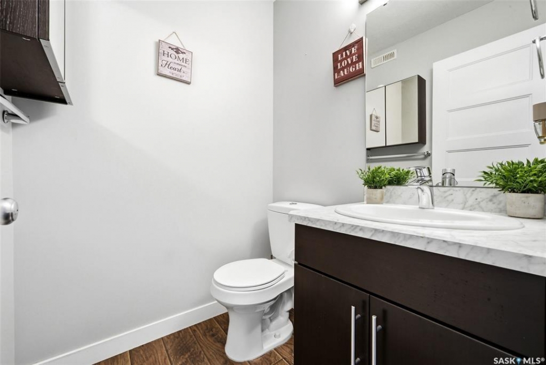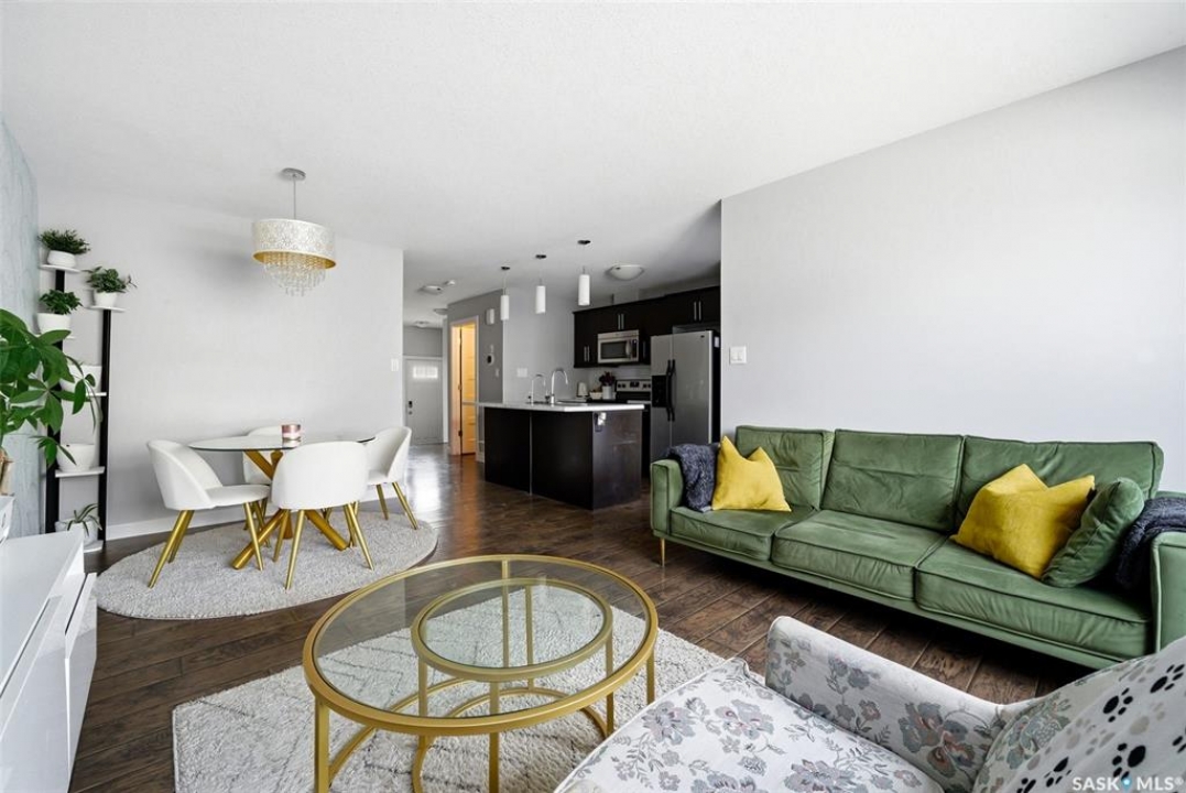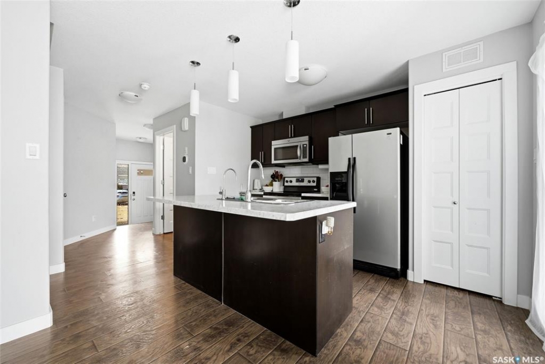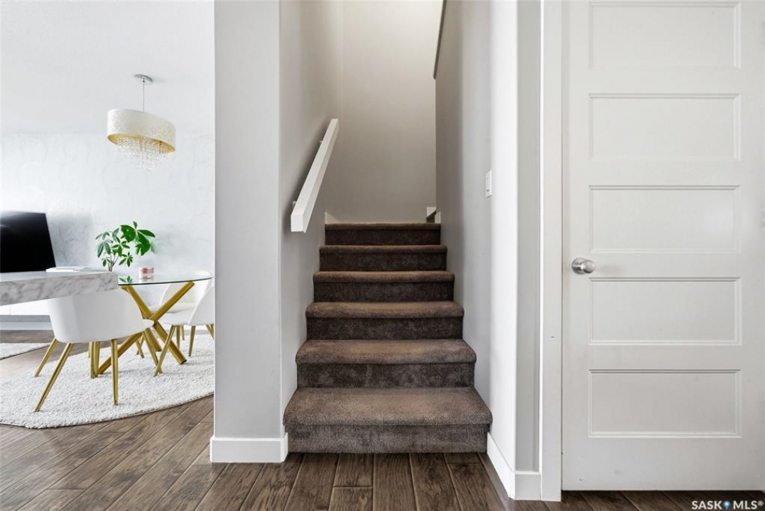 This beautiful townhome is located just steps away from Norseman Park in the desirable Harbour Landing Neighbourhood! This home offers easy access to green space, walking paths and is a quick drive to all the Grassland amenities. Inside, you'll find a neutral colour palette that gives the home a clean and modern feel. The main floor has an open-concept layout with a bright living room featuring large windows and a designated dining area for family dinners or entertaining. The kitchen features rich dark cabinetry, a tile backsplash, stainless steel appliances and a central island with an eat-up bar. A two-piece bathroom and direct entry to the attached garage complete the main floor. Heading up the stairs you'll find the primary bedroom which includes a large walk-in closet and a full 4-piece ensuite. Two additional bedrooms, a 4-piece bathroom and a convenient laundry room round out this level. The basement is 80% developed with framing and drywall up for a rec room, den/bedroom and a 4-piece bathroom just awaiting finishing touches. There is a private East facing deck with garden door access from the kitchen to catch the beautiful morning sunrise. The oversized attached garage adds everyday convenience. You do not want to miss out on this opportunity!