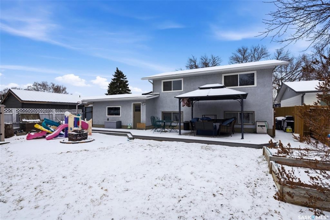 Welcome to 108 Matheson Crescent. A fantastic option for a first-time couple or an established family looking for more square footage. This property has received many important updates over the years, offers incredible storage space, and is beautifully located in the north end. Upon entering the home, you step into a large foyer; around the corner, you're greeted by a huge main floor where the living room, dining area, and kitchen are open and connected. The kitchen underwent a major transformation, adding drawers, an upright pantry, a drink fridge, and stainless steel appliances (the fridge is brand new). The island is a true showstopper, offering plenty of room for pizza and entertaining. The dining room is spacious and complemented by additional functional cabinetry. Up on the second level, you'll find the main 4-piece bathroom, a spacious primary bedroom, and two large secondary bedrooms, all featuring large windows and ample closet space. Down on the third level, you'll find a huge rec space, complemented by a custom dry bar with a concrete top, a gas fireplace, and direct access to the garage, while large windows make the space feel bright and usable. The fourth level provides additional living space, currently set up as a kids' play area and a gym, along with a laundry/utility room that offers built-in storage and updated washer and dryer units. The backyard is a great space, featuring a new patio (2019), a gazebo with built-in misters to cool off the south-facing yard, and usable raised garden beds. The home also offers an 18x23 attached garage, updated windows, an updated electrical panel, an updated sewer line (2008), and a new front patio (2025). This home has so much to offer. Contact your real estate professional for more information.