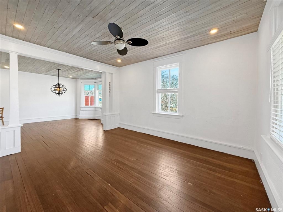 376 5th Avenue NW is the perfect blend of timeless character and thoughtful modern updates—an inviting 1 � storey home in Swift Current's desirable North West neighbourhood. Offering 1,274 sq ft, this charming property features 4 bedrooms up and 2 bathrooms, with renovations that enhance the home's warmth, style, and everyday function. Fall in love with the original details that make a character home so special: refurbished hardwood floors, stained glass accents, high main-floor ceilings, and large bright windows that flood the space with natural light. The main level is anchored by a beautiful white modern kitchen with epoxy countertops, built-in cooktop, undermount farmhouse sink, gold gooseneck faucet, updated appliances, trendy backsplash, luxury vinyl tile, and a barnwood door for an “urban farmhouse” feel. The kitchen flows into a spacious dining area open to the living room—ideal for hosting or relaxing at home. You'll also appreciate the convenience of a generous main-floor laundry room and an updated 3-piece bathroom featuring a tiled shower. Upstairs you'll find four bedrooms and an oversized 3-piece bathroom complete with a soaker tub and vanity area. Step out onto the refinished second-storey balcony and enjoy peaceful views—your own little retreat. Outside, the freshly landscaped, fully fenced backyard is ready for summer with a large deck, green space, shed, and a large rear parking pad, plus a covered front verandah to complete the curb appeal. Additional updates include extra insulation, drywall, wainscoting, energy-efficient furnace, hot water heater, shingles, vinyl siding, and an updated retaining wall. Appliances are included and quick possession is available—move in and enjoy!