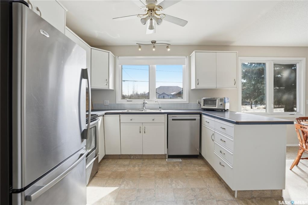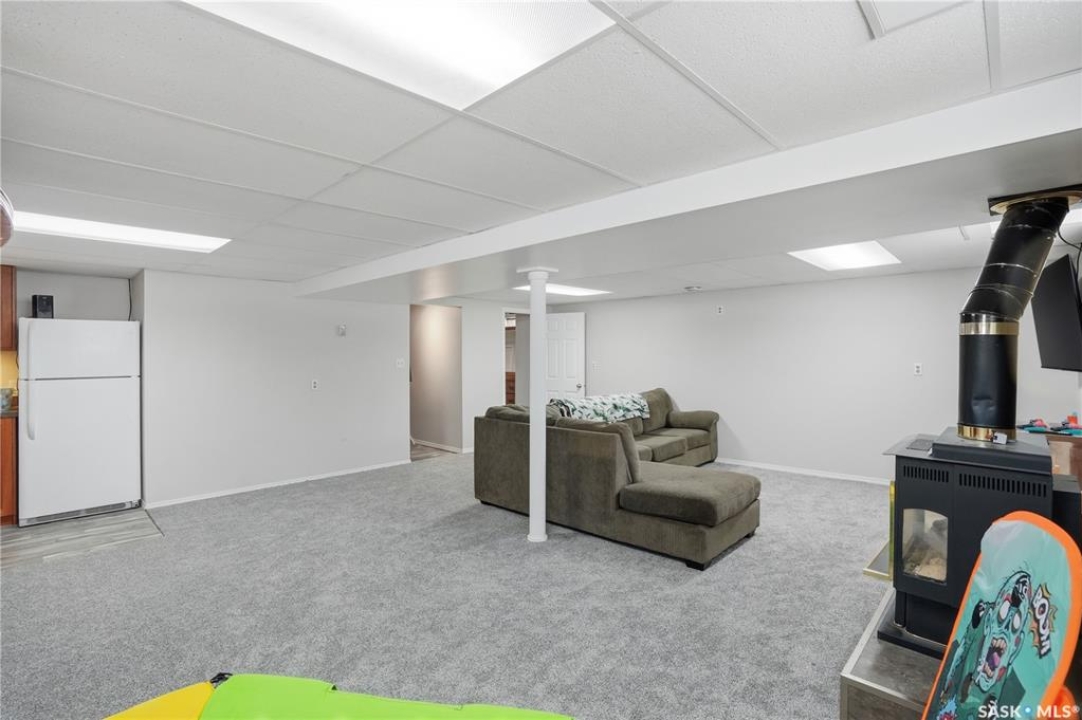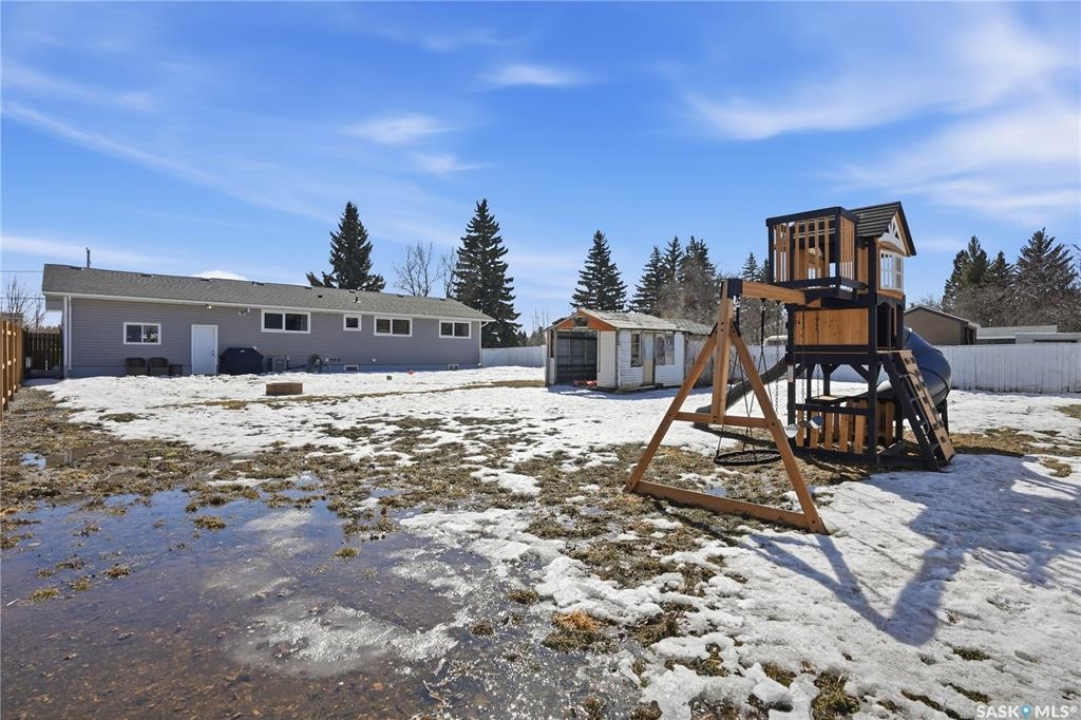 Escape the city and discover the perfect blend of lifestyle and space with this beautifully maintained bungalow set on just over half an acre. This property offers a rare opportunity to enjoy your own private outdoor retreat. The expansive yard is both functional and inviting, offering ample space for gardening, entertaining, or simply enjoying the peaceful surroundings. Inside, the home has been well cared for and thoughtfully updated. The bright kitchen and dining area provide a warm and practical space for everyday living, while the sun-filled living room offers a comfortable place to unwind. The main floor features three spacious bedrooms and a beautifully renovated 4-piece bathroom. The fully finished basement has been recently renovated and adds exceptional versatility, featuring a large fourth bedroom, a 3-piece bathroom, and an inviting rec room area with gas fireplace ideal for gatherings or additional living space. A cold room and dedicated wine storage area both add charm. Double attached garage (21' x 25') is heated with 10.5 ft ceilings which makes for the perfect workshop and additional storage. Direct entry into the house and ease of access to the backyard. Bonus features include an established fruit orchard featuring apples, cherries, plums, strawberries, raspberries and rhubarb, alongside an impressive collection of mature perennials, evergreens, and thoughtfully designed landscaping. A play structure, lawn tractor, and storage shed are all included, making it easy to maintain and enjoy the property from day one.