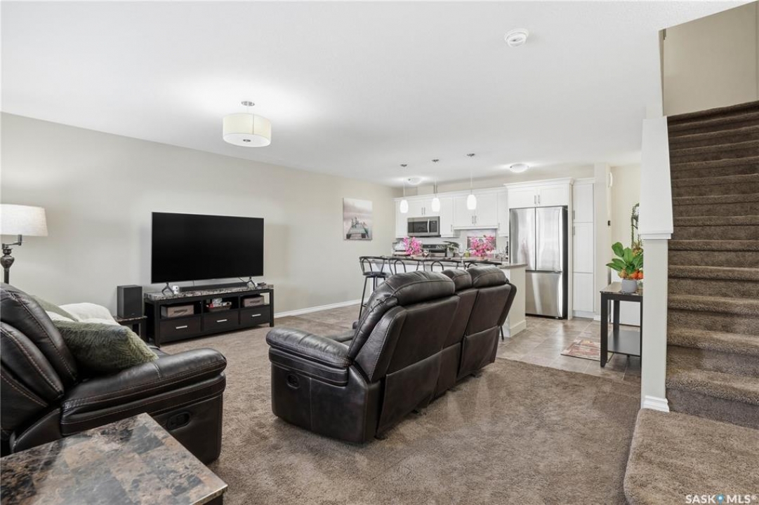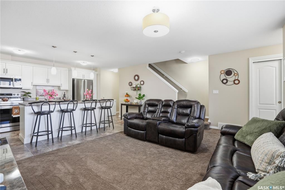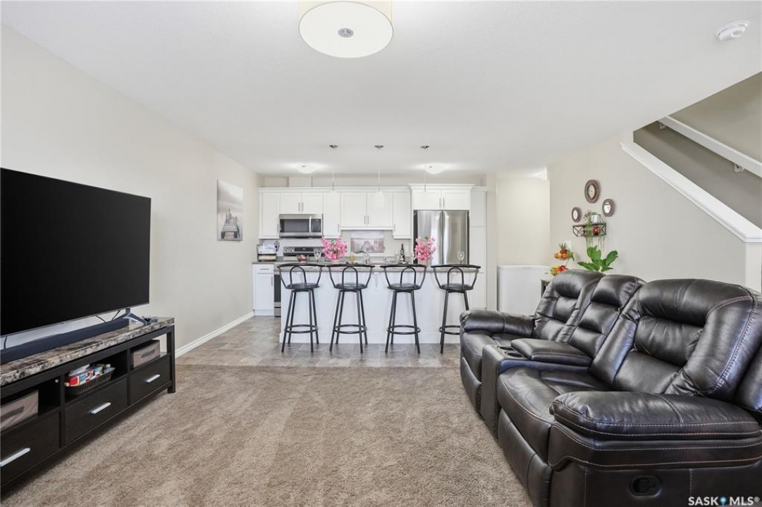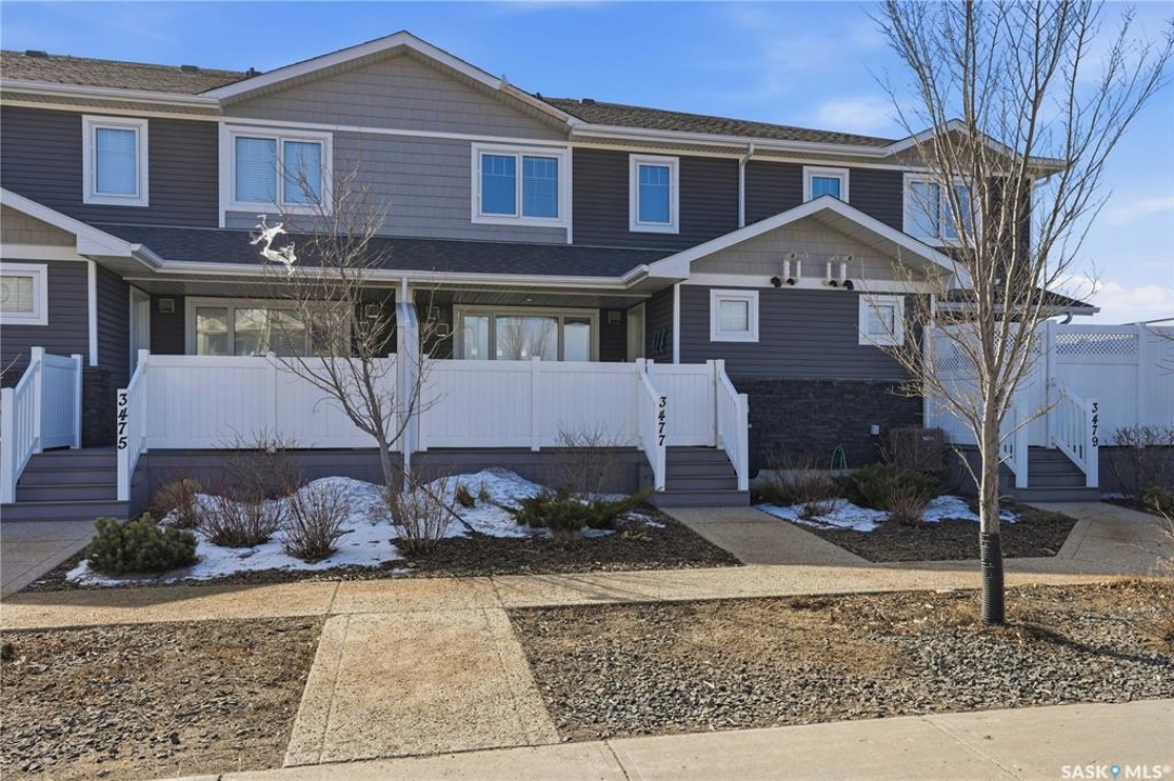 Welcome to 3477 Elgaard Drive, a move-in ready two-storey townhouse built by Varsity Homes, located in the desirable Hawkstone neighbourhood. Although constructed in 2013, this unit has only been owner-occupied since 2021. Tucked behind a private front deck, this home offers the perfect outdoor space for BBQing or relaxing during the warmer months. Upon entry, you're welcomed into a foyer complete with a convenient 2-piece bathroom and front closet. The bright and inviting living room is highlighted by large windows that fill the space with an abundance of natural light. The kitchen is both stylish and functional, featuring white cabinetry, plenty of counter space, stainless steel appliances, and a large island with barstool seating—ideal for everyday living and entertaining. Upstairs, the primary bedroom offers a unique layout with direct access to the 4-piece main bathroom through a spacious walk-in closet. A second bedroom completes the upper level and is perfect for guests, a home office, or additional living space. The undeveloped basement provides excellent potential for future development and includes a laundry area with washer and dryer. Additional features include central air conditioning (2021), 1 electrified parking stall, and the option to include all furniture or select pieces—making your transition seamless. Conveniently located close to schools, shopping, restaurants, and all north-end amenities, this is an excellent opportunity to own a turnkey property in a fantastic community.