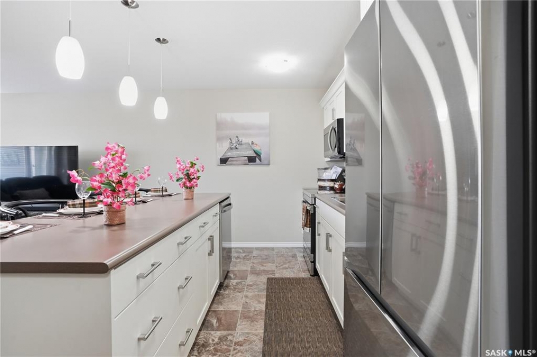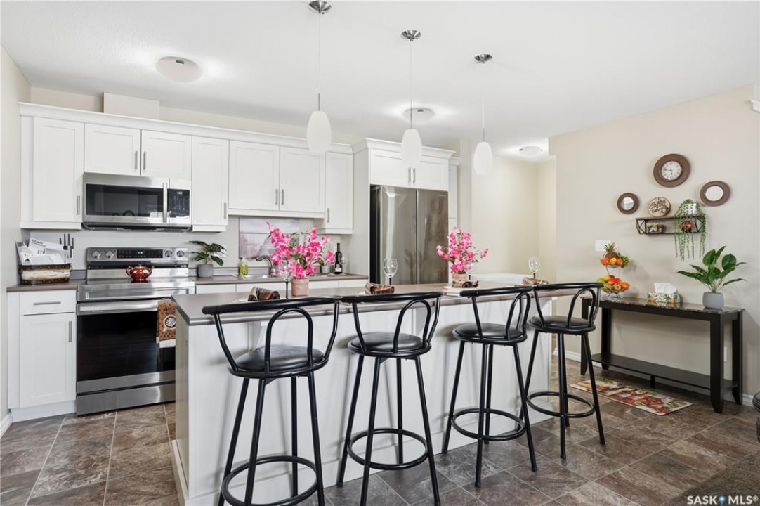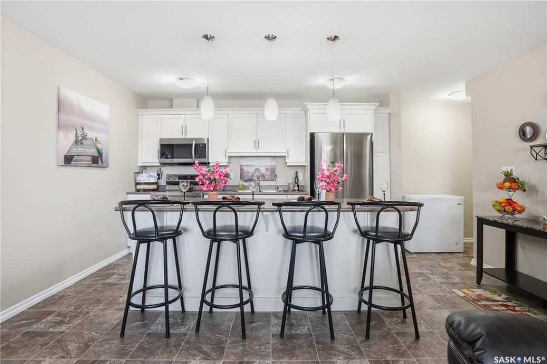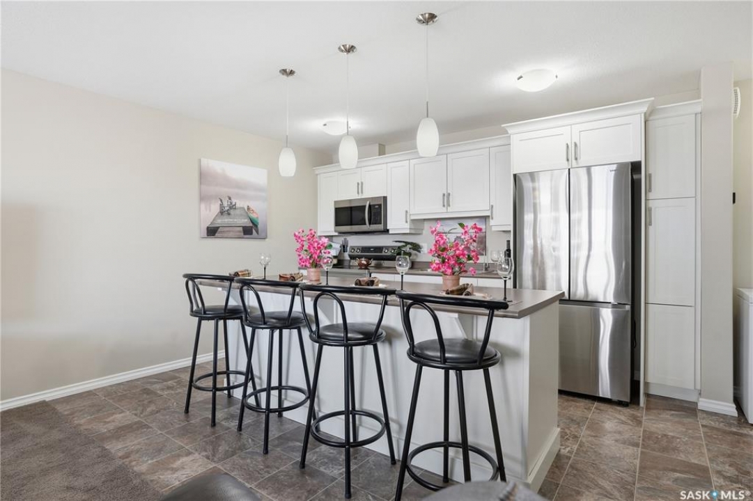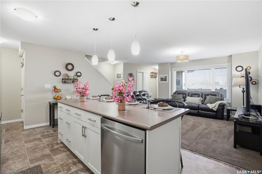 Welcome to 3477 Elgaard Drive, a move-in ready two-storey townhouse built by Varsity Homes, located in the desirable Hawkstone neighbourhood. Although constructed in 2013, this unit has only been owner-occupied since 2021. Tucked behind a private front deck, this home offers the perfect outdoor space for BBQing or relaxing during the warmer months. Upon entry, you're welcomed into a foyer complete with a convenient 2-piece bathroom and front closet. The bright and inviting living room is highlighted by large windows that fill the space with an abundance of natural light. The kitchen is both stylish and functional, featuring white cabinetry, plenty of counter space, stainless steel appliances, and a large island with barstool seating—ideal for everyday living and entertaining. Upstairs, the primary bedroom offers a unique layout with direct access to the 4-piece main bathroom through a spacious walk-in closet. A second bedroom completes the upper level and is perfect for guests, a home office, or additional living space. The undeveloped basement provides excellent potential for future development and includes a laundry area with washer and dryer. Additional features include central air conditioning (2021), 1 electrified parking stall, and the option to include all furniture or select pieces—making your transition seamless. Conveniently located close to schools, shopping, restaurants, and all north-end amenities, this is an excellent opportunity to own a turnkey property in a fantastic community.