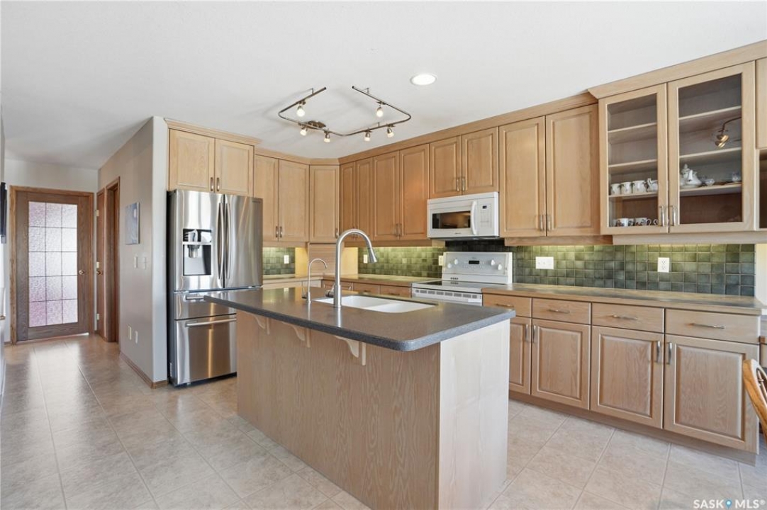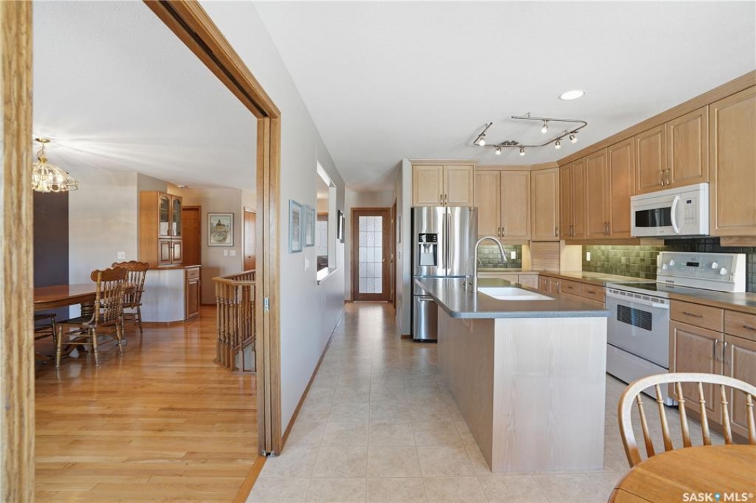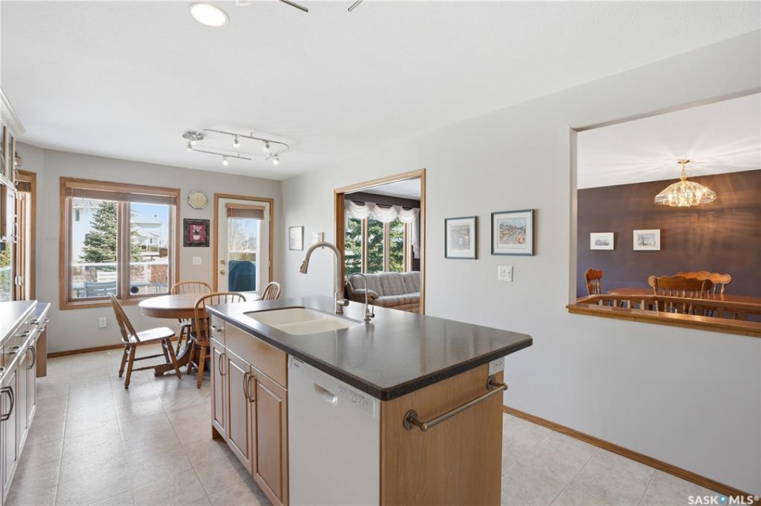Welcome to 4–330 Stodola Court in the highly sought-after community of Arbor Creek backing walking paths and green space. This beautifully maintained 1,341 sq ft walkout bungalow offers 4 bedrooms and 3 bathrooms, combining comfort, functionality, and scenic surroundings. Step inside to gleaming hardwood floors that guide you through the formal dining room into a bright and inviting living room, complete with picturesque views. A convenient pocket door leads to the remodeled oak kitchen, featuring ceiling-height cabinetry, tiled backsplash, under-cabinet lighting, garburator, pots and pans drawers, an island with seating, and a full appliance package. A charming nook with garden door access opens to a deck with glass railing and gas BBQ hookup—perfect for outdoor entertaining. The spacious primary bedroom includes a walkthrough closet and a luxurious 4-piece ensuite with dual vanity and jetted tub. The main floor is completed by an additional bedroom, a 3-piece bathroom with a 5-foot shower, and a convenient laundry room with upper cabinets and direct access to the 20x20 finished attached garage. The fully developed walkout basement features a large family room with recessed lighting and a cozy gas fireplace, along with a garden door leading to the patio and backyard. Two generously sized bedrooms (one with a walk-in closet and built-in bookshelf), a 4-piece bathroom, ample storage space, and a mechanical room complete the lower level. Additional highlights include central air conditioning, newer furnace and hot water heater, water softener, and central vacuum. This exceptional home offers a perfect blend of comfort, upgrades, and location—don't miss your opportunity to live in one of the city's most desirable neighborhoods!