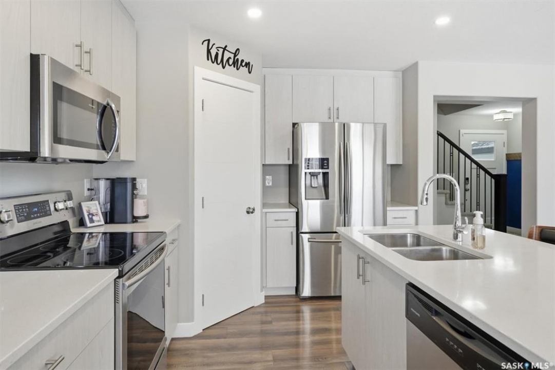Welcome to 611 Ells Crescent in the desirable Kensington neighborhood! This beautifully designed 1,628 sq ft home by Ehrenburg Homes offers 3 bedrooms and 3 bathrooms, combining modern comfort with functional living. The main floor showcases a spacious open-concept layout, featuring a stylish kitchen with soft-close cabinetry, quartz countertops, and stainless steel appliances. The inviting living area is highlighted by a stunning feature fireplace wall—perfect for relaxing or entertaining. Upstairs, you'll find a generous bonus room, ideal for a family lounge, office, or play space, along with convenient second-floor laundry. The primary bedroom includes a walk-in closet and a full 4-piece ensuite, creating a private retreat. Additional highlights include central air conditioning, a fully developed yard with durable vinyl fencing, Underground sprinklers(Front yard) and a heated double attached garage. Located close to shopping, groceries, public transit, and other amenities, this home offers both comfort and convenience. Buyer and buyer's agent to verify all measurements. Book your showing today!