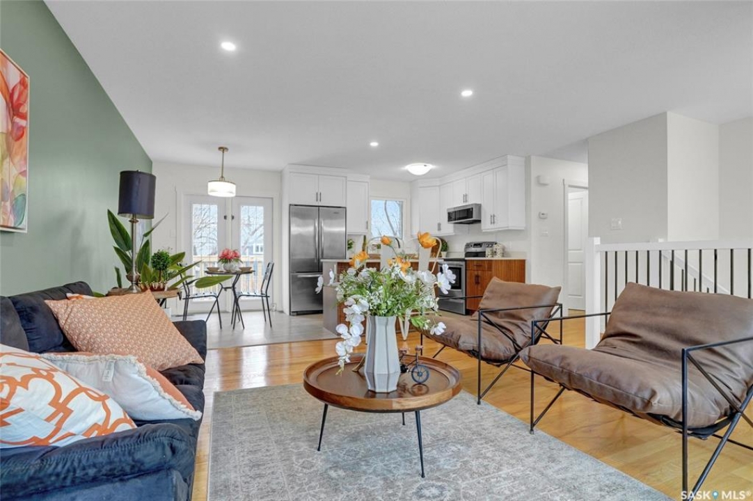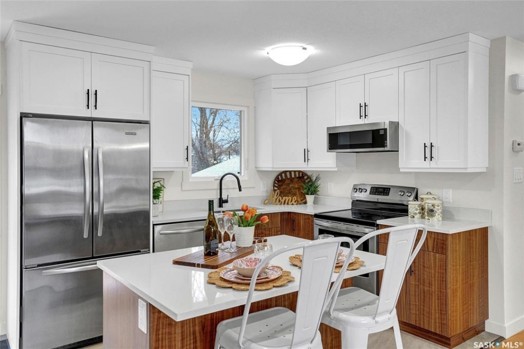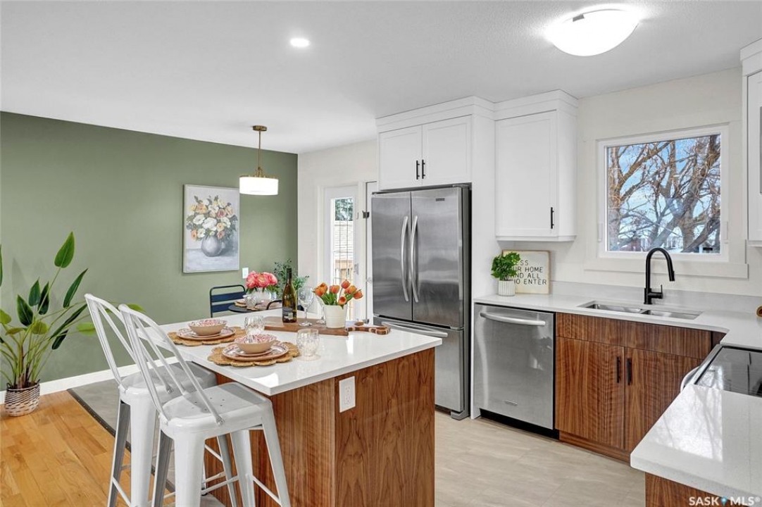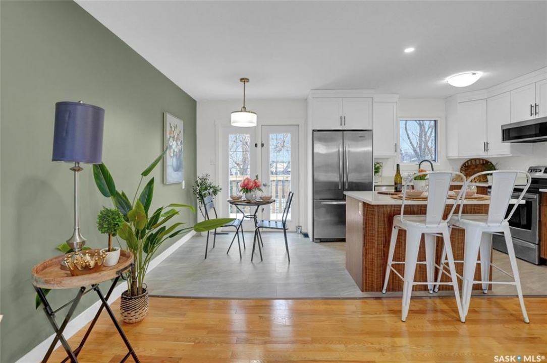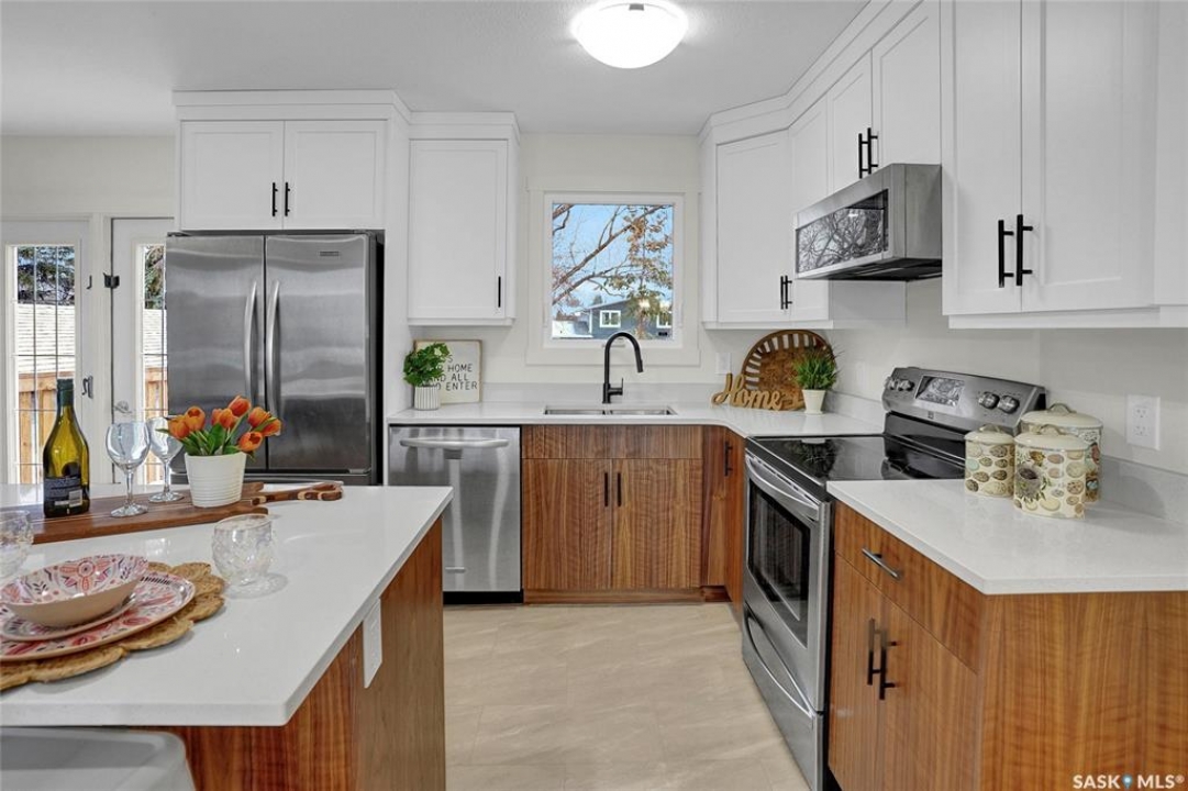 Discover the charm and modern convenience in this newly renovated home, inside and out. The property has been tastefully renovated throughout, making it both stylish and functional. This is the cutest home with a welcoming foyer, leading you to the Living, Dining and Kitchen that are set in an open concept. Updated windows only enhance the luxury vinyl floor that flows throughout the main floor, filling the home with natural light. The kitchen enjoys quartz counters, new stainless steel kitchen appliances, including fridge, stove, built-in dishwasher and microwave hood fan. The main floor hosts 2 bedrooms, and this floor is complete with an updated 4pc. Bath. The lower level is finished, boasting a family room, with a game area that also enjoys a Murphy bed, to host your extra guests or the kids' sleepovers. This floor comes complete with a great-sized 3rd bedroom, renovated 3 pc. bath, as well as laundry area & storage in the utility room. This family home boasts a high-efficiency furnace, water heater, new electrical panel and has a sump pump. The sewer line will be replaced from the home to the street in 2025, which is a BONUS. The yard, having a wonderful deck accessible from the dining area, is perfect for outdoor relaxation, entertaining & enjoying the sun. This yard has space in addition for all the kids to play, too. The oversized det. The garage has also had an update with new concrete floor, roof decking, shingles & vinyl siding. This home represents an excellent opportunity to own a like-new property in a beautiful, family-friendly area, steps to a park, walking paths, and a school. CLICK ON THE MULTIMEDIA LINK FOR A FULL VISUAL TOUR, and call today, and let's make your next move to live more beautifully. (Some rooms are virtually staged.)