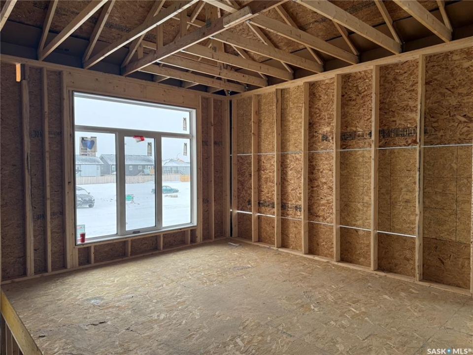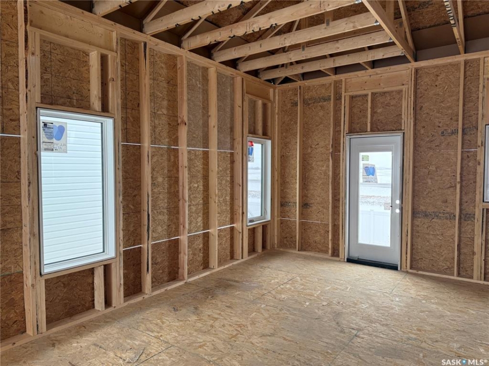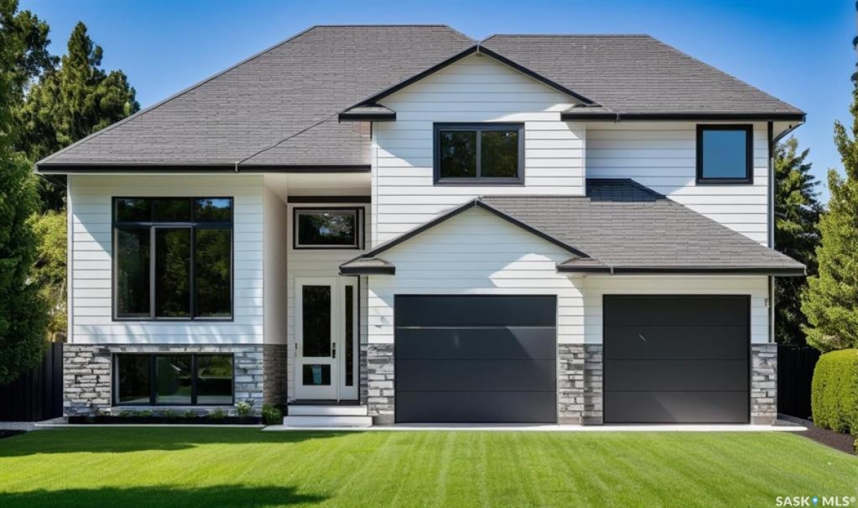 Just Framed. This brand new modified bi-level by Taj Homes is going to be a stunner. Ideally located in The Legends Neighbourhood of Warman, this location has it all - close to parks, amenities and quick access to saskatoon. The list of upgrades is long and include a spacious insulated double garage, oversized triple pane ALL WEATHER windows, Taiga Curate LVP throughout the home and $1500 lighting credit so you can design your new home. Quartz countertops, Tall 10ft ceilings throughout the main floor with 9ft basement, ceiling height cabinetry, and a double car concrete driveway are just some of the notable items. The main floor features 2 bedrooms, a full 4 piece bathroom, a dedicated bright laundry room and an open concept kitchen/dining/living space with numerous large windows. Upstairs you'll be greeted by large double doors as you enter the primary bedroom complete with a walk-in closet, spacious 5 pc ensuite bathroom and with that south facing sunlight. You'll continue to be impressed by the large, bright basement family room which is open to development (contact for basement pricing). Some notable features include a on demand water heater, energy efficient furnace, All Weather Triple Pane windows, full set of stainless steel appliances, black trims and fixtures and Progressive New Home Warranty. Currently under construction, this home comes with a guaranteed possession date so you can plan your move with confidence—no delays, no surprises. Possible May-June possession. Come today and customize your new home by selecting from a range of color palettes and finishes to match your personal style. NOTE FRONT ELEVATION PICTURE IS AI GENERATED, FINAL COLOUR MAY VARY.