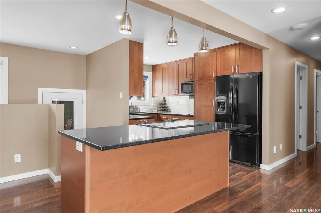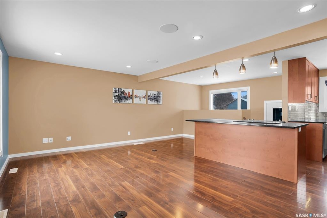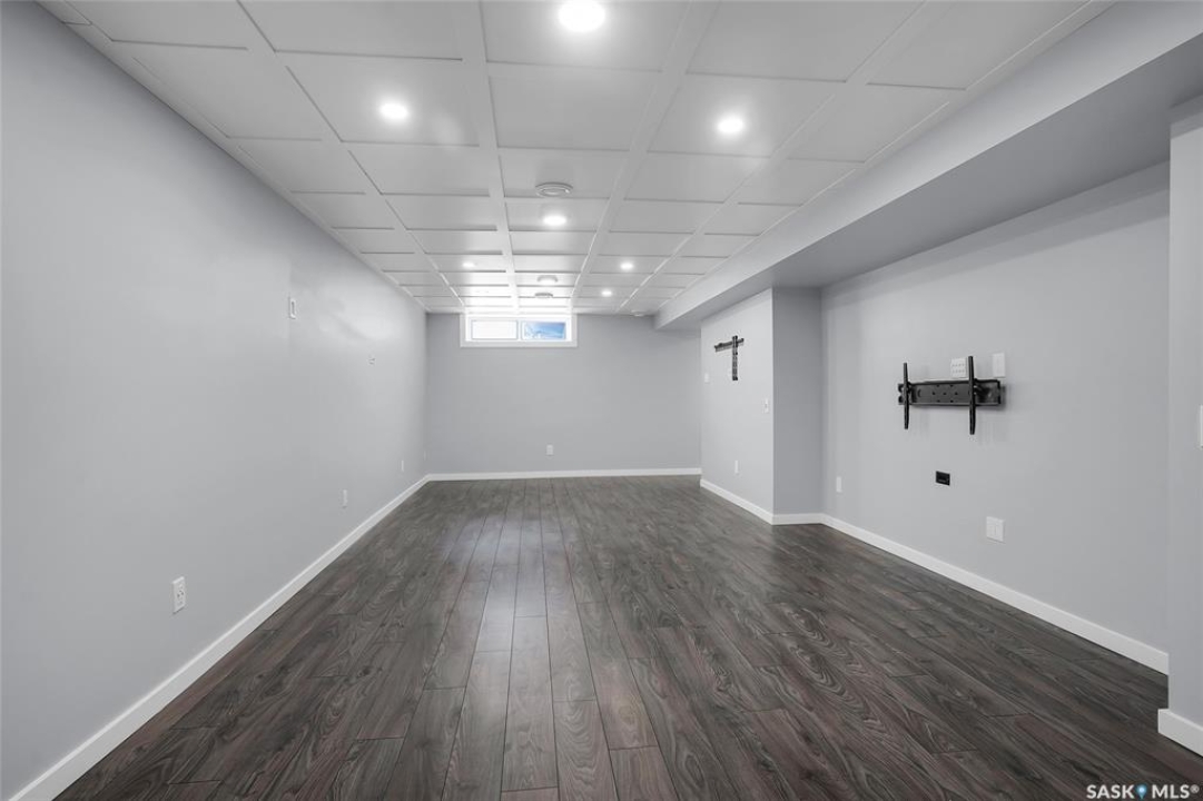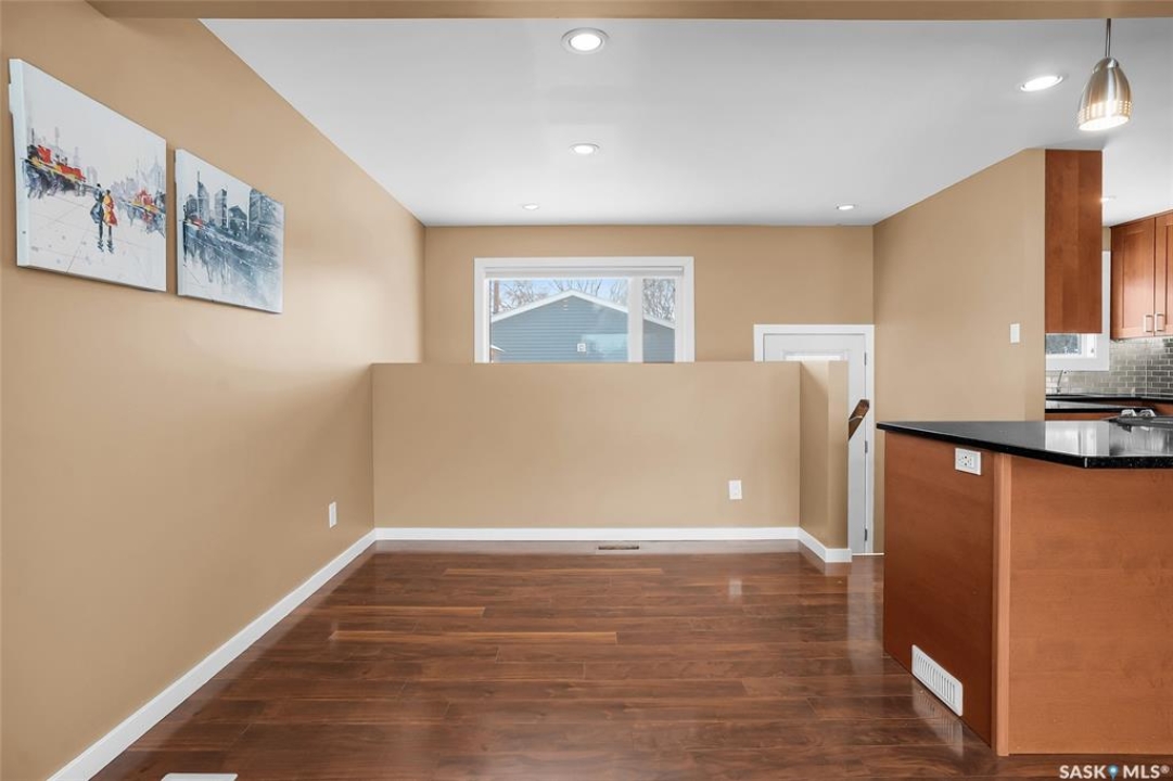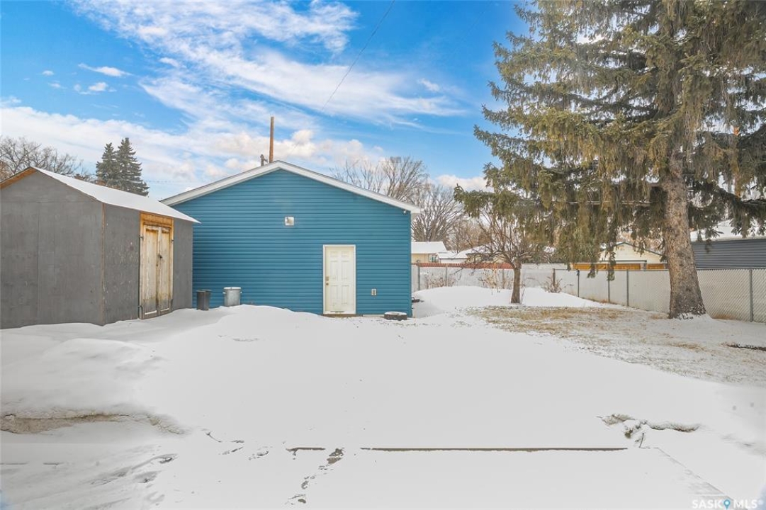 Welcome to this meticulously renovated bungalow, offering a move-in ready experience. The open concept floor plan features a modern kitchen, updated in 2013, complete with an island and quartz countertops, and comes fully equipped with appliances. The beautifully upgraded bathrooms include the main bath with heated flooring. The beautifully refinished basement provides an inviting space for entertaining friends and family. The residence boasts all new windows, installed around 2013-2014, including energy efficient triple pane windows on the main floor, filled with argon gas for optimal insulation. The exterior is designed for easy maintenance, featuring vinyl siding with stone accents installed in approximately 2016, along with new shingles added in 2014. The home has been reinsulated on the exterior walls, incorporating an additional one and a half inches of rigid foam insulation beneath the siding for enhanced energy efficiency and sound insulation. Furthermore, a newly constructed 26' x 28" heated garage, built in 2020, includes two overhead doors measuring 9' high and 10' wide, making it ideal for accommodating larger vehicles or as a workshop for the handyman. The property also features composite decking at both the front and back, with hookups for a gas barbecue and fire table. For you comfort, the home is equipped with a high-efficiency furnace, an on demand wall-mounted water heater, and central air conditioning. For the green thumb you will take pleasure in knowing that there is a garden plot that has had raspberries, rhubarb and a thriving apple tree. Additionally, another upgrade was the sewer line, which was completed a few years ago. Enjoy the pleasure of living in a home that feels new, conveniently located across from a park!