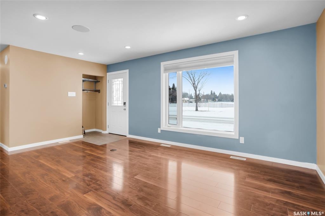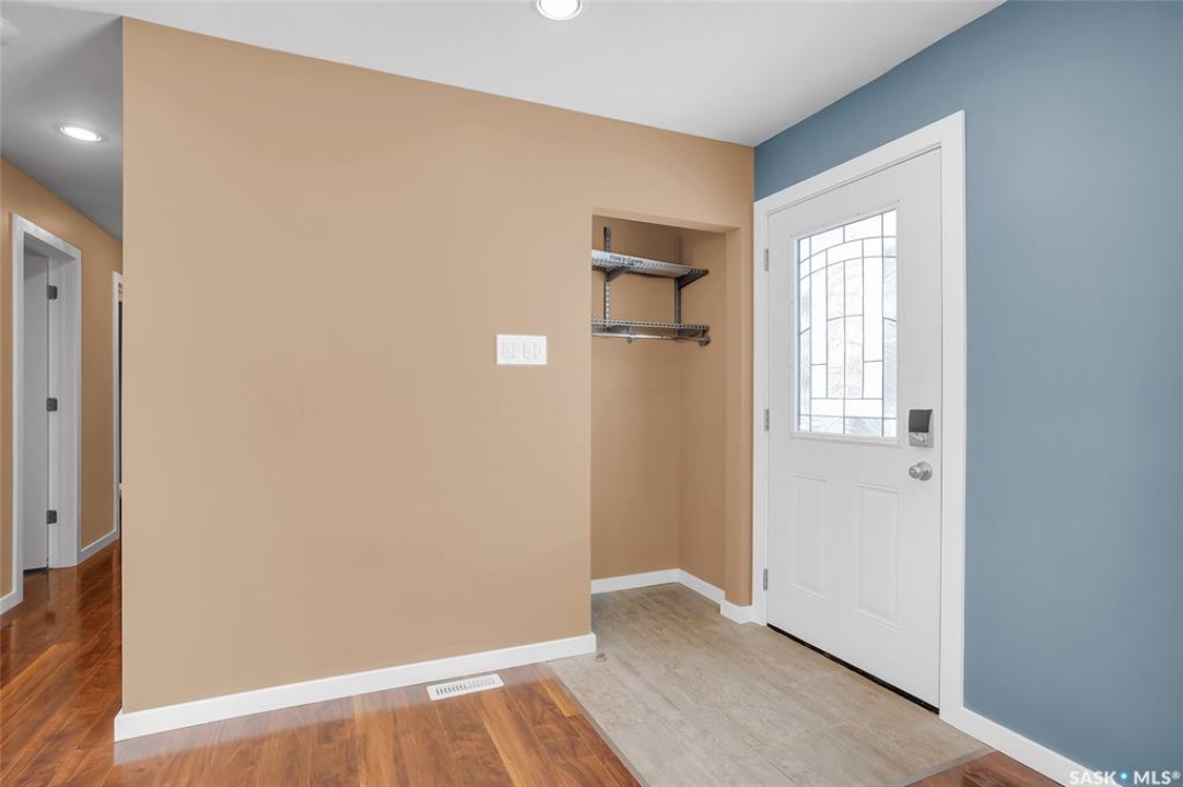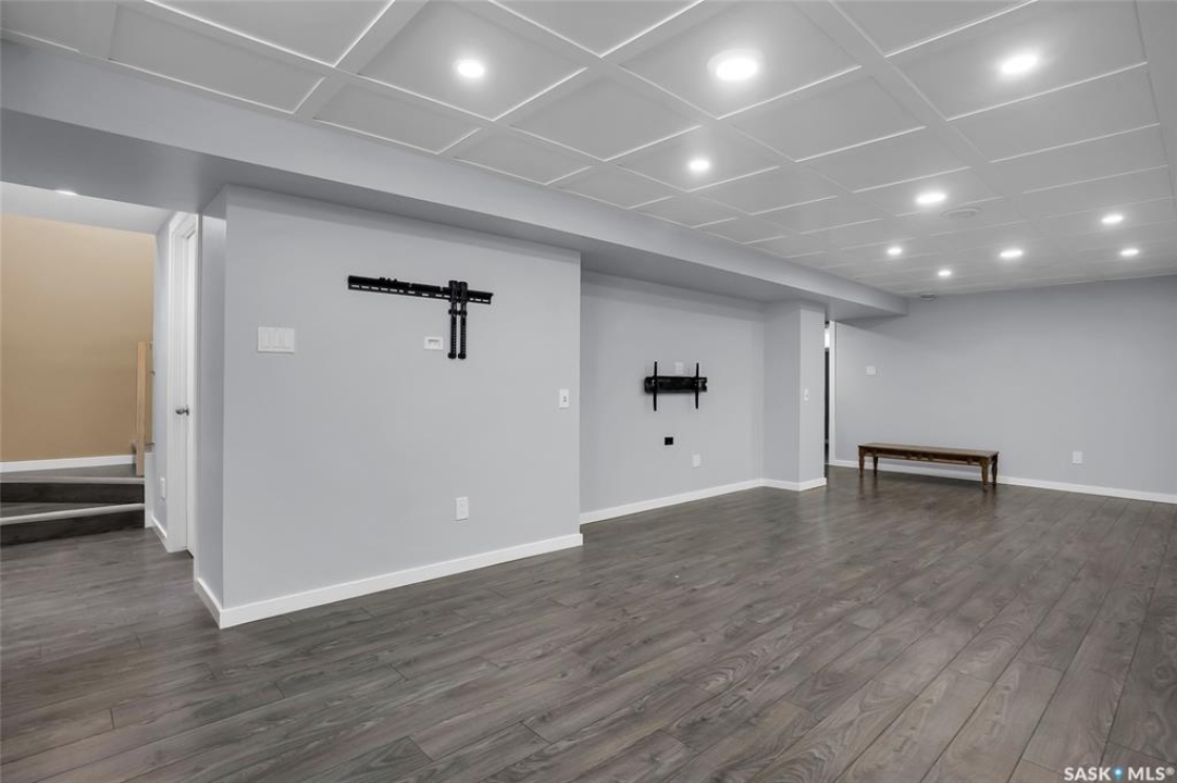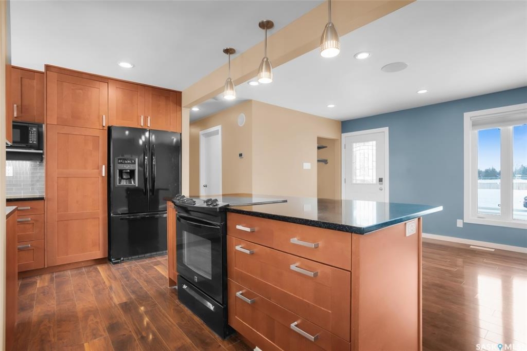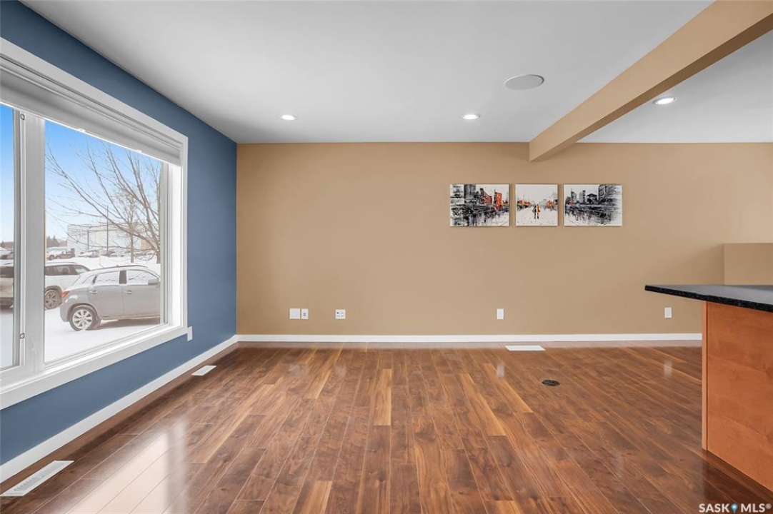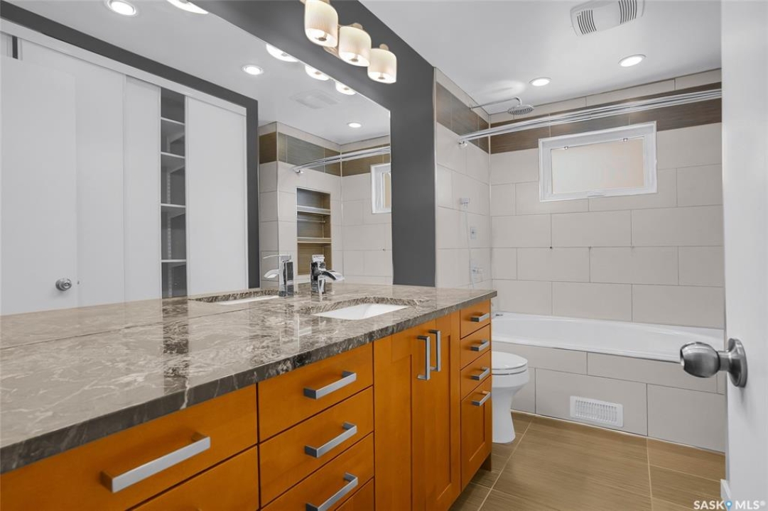 Welcome to this meticulously renovated bungalow, offering a move-in ready experience. The open concept floor plan features a modern kitchen, updated in 2013, complete with an island and quartz countertops, and comes fully equipped with appliances. The beautifully upgraded bathrooms include the main bath with heated flooring. The beautifully refinished basement provides an inviting space for entertaining friends and family. The residence boasts all new windows, installed around 2013-2014, including energy efficient triple pane windows on the main floor, filled with argon gas for optimal insulation. The exterior is designed for easy maintenance, featuring vinyl siding with stone accents installed in approximately 2016, along with new shingles added in 2014. The home has been reinsulated on the exterior walls, incorporating an additional one and a half inches of rigid foam insulation beneath the siding for enhanced energy efficiency and sound insulation. Furthermore, a newly constructed 26' x 28" heated garage, built in 2020, includes two overhead doors measuring 9' high and 10' wide, making it ideal for accommodating larger vehicles or as a workshop for the handyman. The property also features composite decking at both the front and back, with hookups for a gas barbecue and fire table. For you comfort, the home is equipped with a high-efficiency furnace, an on demand wall-mounted water heater, and central air conditioning. For the green thumb you will take pleasure in knowing that there is a garden plot that has had raspberries, rhubarb and a thriving apple tree. Additionally, another upgrade was the sewer line, which was completed a few years ago. Enjoy the pleasure of living in a home that feels new, conveniently located across from a park!
