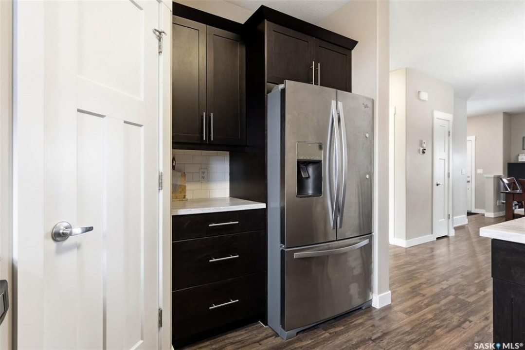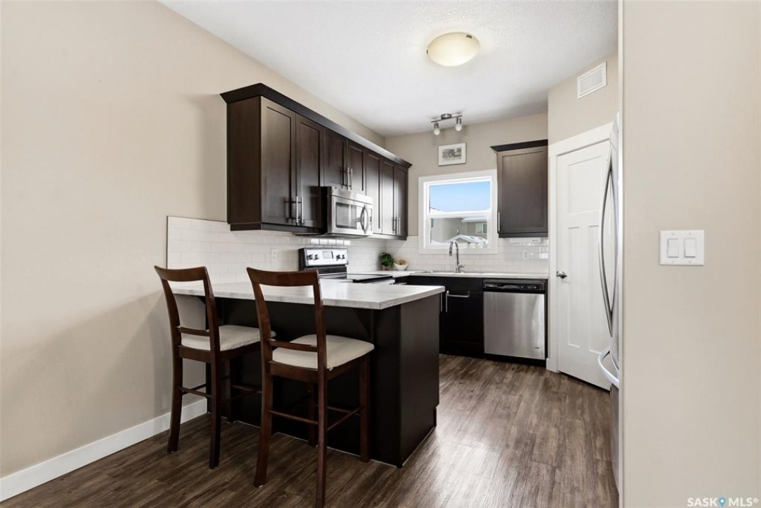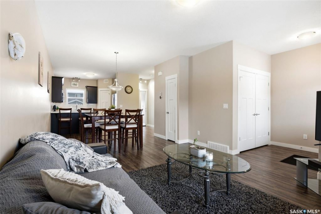 Step into this bright and beautifully designed two-storey home, built on piles and thoughtfully finished for comfort and peace of mind. A generous front entrance leads into an open main floor with luxury vinyl plank flooring, a sunny south-facing family room, and a spacious dining area perfect for everyday living. The functional kitchen offers an eat-up counter, stylish white backsplash, corner pantry & stainless steel appliances. A handy 2pc powder room completes the main level. Upstairs, you'll find three comfortable bedrooms, including a lovely primary suite with a walk-in closet and 4pc ensuite. The finished basement adds incredible flexibility with a cozy family room, wet bar, additional bedroom, 3pc bath, stacked laundry & plenty of storage. Whether it's movie night, a guest retreat, or a potential mother-in-law suite, this space adapts beautifully. An HE furnace, triple pane windows and A/C adds to the home's efficiency and comfort. Both the front and back yards are fully developed, giving you multiple outdoor spaces to enjoy. Relax on the covered front veranda on warm evenings or unwind in the backyard on the patio. A rear parking pad accommodates 2 vehicles. A warm, functional, energy-efficient home with room to gather, grow, and enjoy—inside and out. This may be exactly what you have been waiting for! All offers to be reviewed on March 31st.
