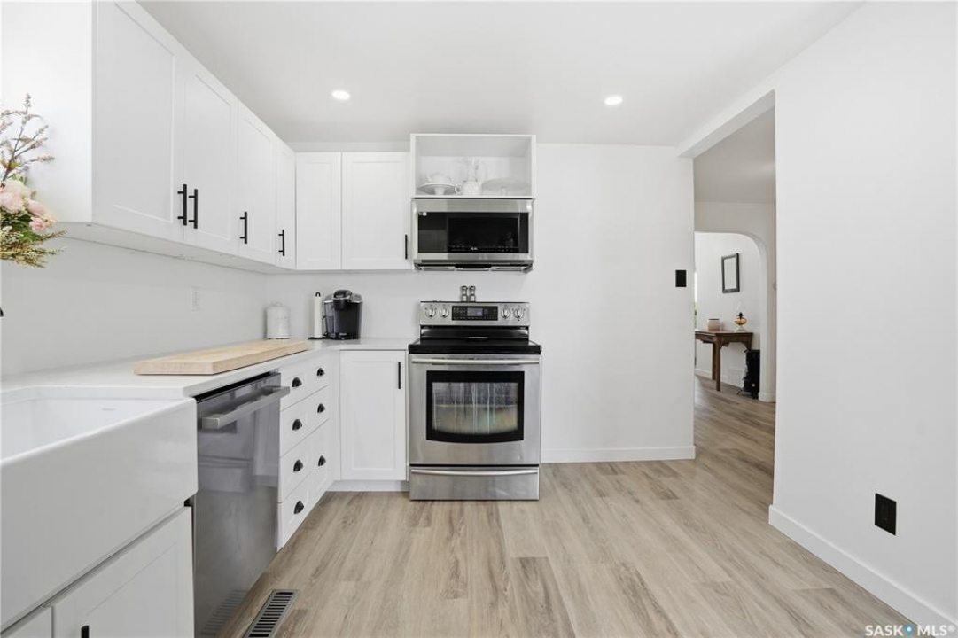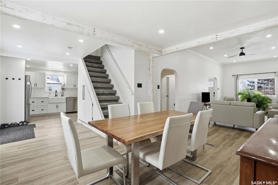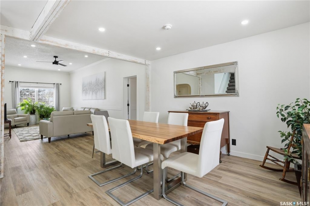 Are you looking for a beautifully updated character home? This home is situated on a large corner lot right across the street from Ross School in a nice quiet neighborhood. Excellent curb appeal as you arrive! Heading inside you are greeted by a large foyer with arched doorways adding some charm. Heading into the spacious living area showcasing 10' high ceilings and new flooring that runs throughout the main floor. Heading back to the formal dining space you will love the character of the whitewashed beams and patio doors leading out to your deck! Next we find a spacious kitchen complete with new white cupboards, quartz countertops with a stunning farm house sink and a 4 piece stainless steel appliance package! Down the hall we find an updated 4 piece bath with a beautifully tiled tub surround as well as a spacious bedroom. Finishing off the main floor we have a spacious primary bedroom with a large closet and garden doors leading to a private & covered deck - which is sure to be your favorite spot for your morning coffee. Heading upstairs we find a third bedroom and a playroom which could easily be an office if you would like. In the partial basement we find the laundry, utility space and some storage. Outside we find a fully fenced yard, an apple tree, lilac bushes, 2 sheds and a gravel parking pad for 3 cars. Lots of updates in the last couple years - new shingles, soffit, fascia and eaves with gutter guards, windows and exterior doors, kitchen and bathroom updates and a refresh throughout the home. Lots of value here! If you are looking for a place that feels like home - look no further! Reach out today to book your showing.