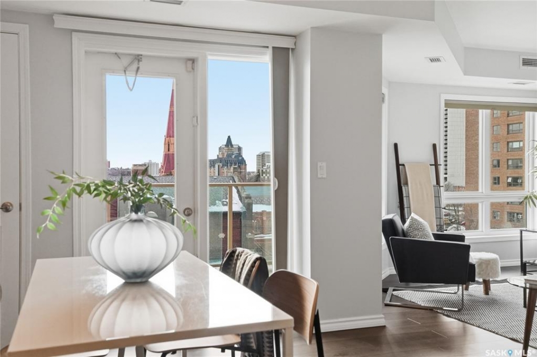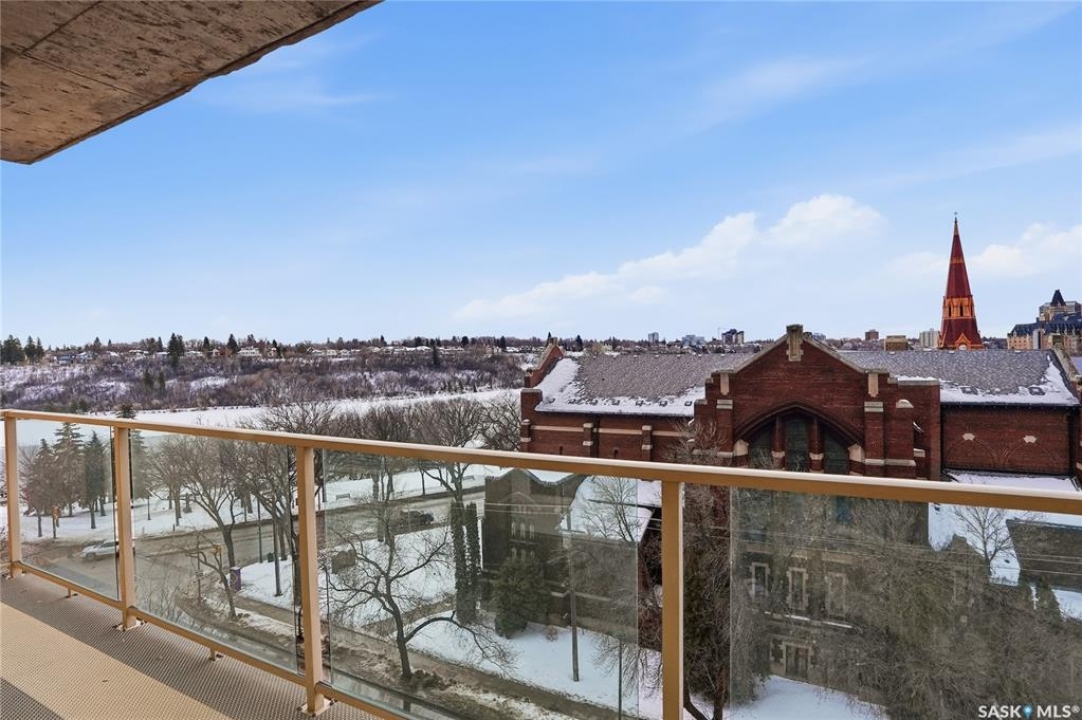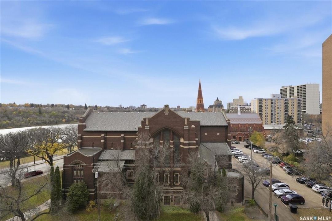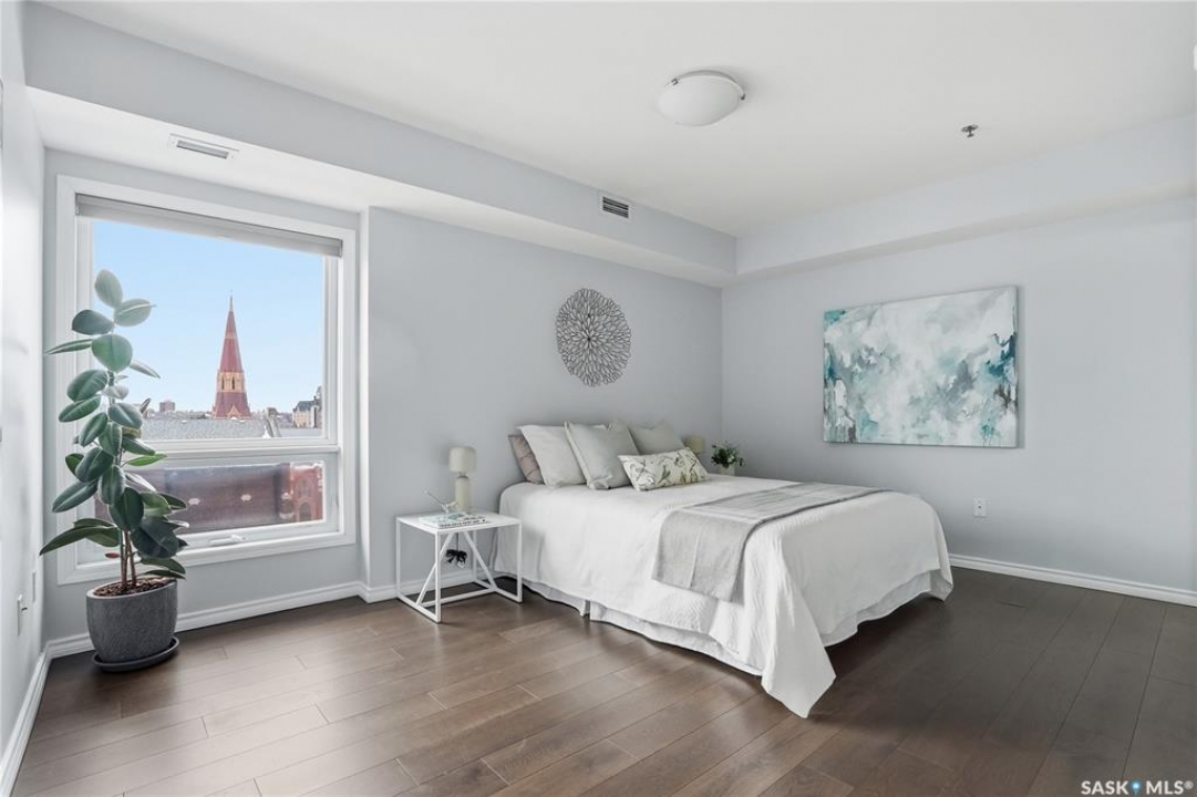 Experience riverfront living in this IMPECCABLE southeast-facing LUX condo in the heart of downtown Saskatoon. Offering 1,155 sq ft, this 2-bedroom, 2-bath unit features an UPDATED bright, open floor plan designed to take full advantage of the natural light and breathtaking river views. The kitchen is beautifully finished and underwent recent updates with modern cabinetry, newer gleaming quartz countertops, tile backsplash, and stainless steel appliances, and a peninsula opening to a spacious open concept living and dining area with oversize windows spanning the entire space, plus a large balcony that captures river and city views including the Meewasin park and the Cathedral's tower! The entire space boasts newer (high end, recently installed) engineered hardwood flooring. Two spacious bedrooms, 2 full baths, and a primary walk-in closet, plus an in-suite storage/laundry room complete this lovely floor plan. Enjoy relaxing or entertaining on the private balcony with a natural gas BBQ hookup, overlooking not only the river, but also The Bessborough and Broadway Bridge. This unit includes 1 heated underground parking stall and a heated storage unit for added convenience. The building offers fantastic amenities, including a fitness room, a meeting room, and two guest suites. Ideally located along the Meewasin River Trail and park and steps from downtown restaurants, shops, and entertainment- the best of what our city offers!!