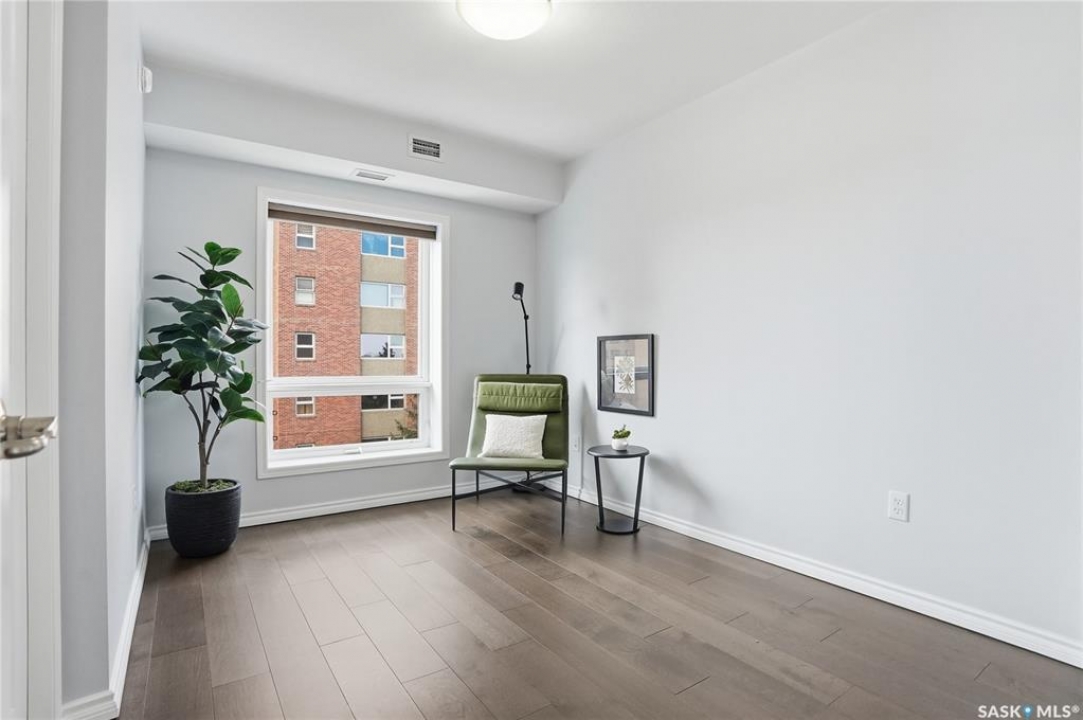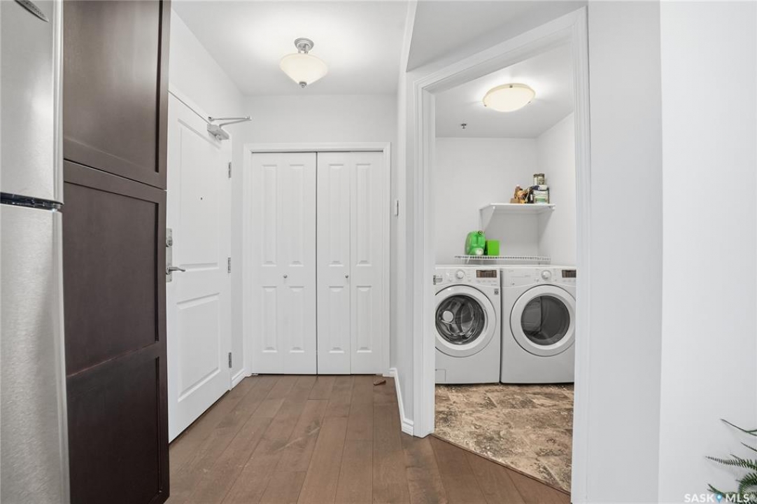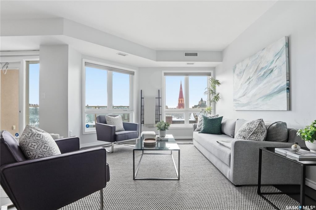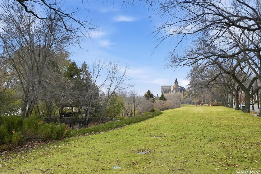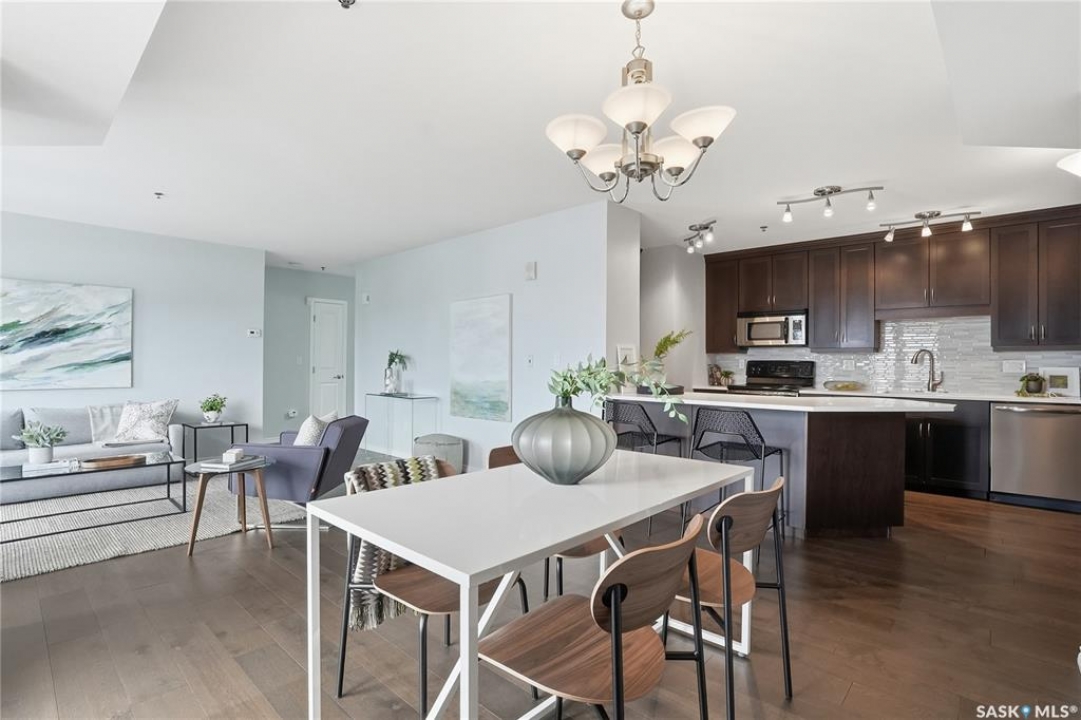 Experience riverfront living in this IMPECCABLE southeast-facing LUX condo in the heart of downtown Saskatoon. Offering 1,155 sq ft, this 2-bedroom, 2-bath unit features an UPDATED bright, open floor plan designed to take full advantage of the natural light and breathtaking river views. The kitchen is beautifully finished and underwent recent updates with modern cabinetry, newer gleaming quartz countertops, tile backsplash, and stainless steel appliances, and a peninsula opening to a spacious open concept living and dining area with oversize windows spanning the entire space, plus a large balcony that captures river and city views including the Meewasin park and the Cathedral's tower! The entire space boasts newer (high end, recently installed) engineered hardwood flooring. Two spacious bedrooms, 2 full baths, and a primary walk-in closet, plus an in-suite storage/laundry room complete this lovely floor plan. Enjoy relaxing or entertaining on the private balcony with a natural gas BBQ hookup, overlooking not only the river, but also The Bessborough and Broadway Bridge. This unit includes 1 heated underground parking stall and a heated storage unit for added convenience. The building offers fantastic amenities, including a fitness room, a meeting room, and two guest suites. Ideally located along the Meewasin River Trail and park and steps from downtown restaurants, shops, and entertainment- the best of what our city offers!!