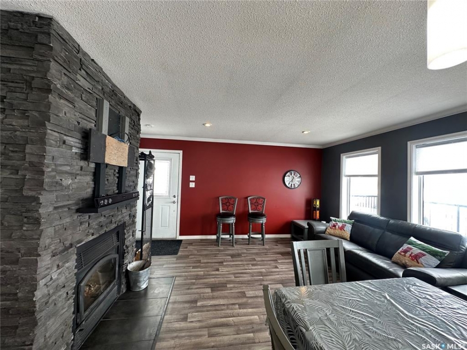 Discover your dream lakefront lifestyle with this stunning 2015-built home at Burgis Beach on Good Spirit Lake! Designed for year-round enjoyment, this move-in-ready retreat boasts a spacious wraparound deck with sleek aluminum railings and a protective windscreen, leading to a generous concrete patio and inviting fire pit—perfect for entertaining or relaxing under the stars. Wake up to breathtaking sunrises with your morning coffee, then unwind with spectacular sunset views from the other side of the home, enhanced by an electric awning for extra shade and comfort. Flooded with natural light from expansive windows, the open-concept living room features a gorgeous stone wood-burning fireplace, creating the ideal ambiance for cozy winter nights. Only premium birch wood has ever been burned. Each room has individually controlled baseboard heat for personalized comfort. Built on durable screw piles, the insulated, heated 3.5' crawl space provides extra storage while keeping your home secure and critter-free. The chef's kitchen showcases soft-close cabinetry, premium stainless steel appliances, and an air exchanger for fresh, clean air. Connected to the reliable Canora water line, you'll have peace of mind year-round. Enjoy maximum leisure time thanks to the xeriscaped yard—beautiful, low-maintenance landscaping means more time at the lake and less time on chores. Additional highlights include a fully insulated 14x18 garage, a handy storage shed, and RV parking with a convenient plug-in. Make every day a getaway—schedule your private tour today and embrace the lake life you've always wanted!