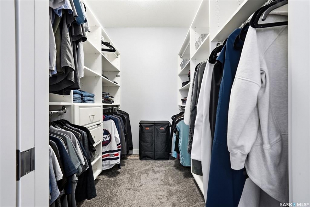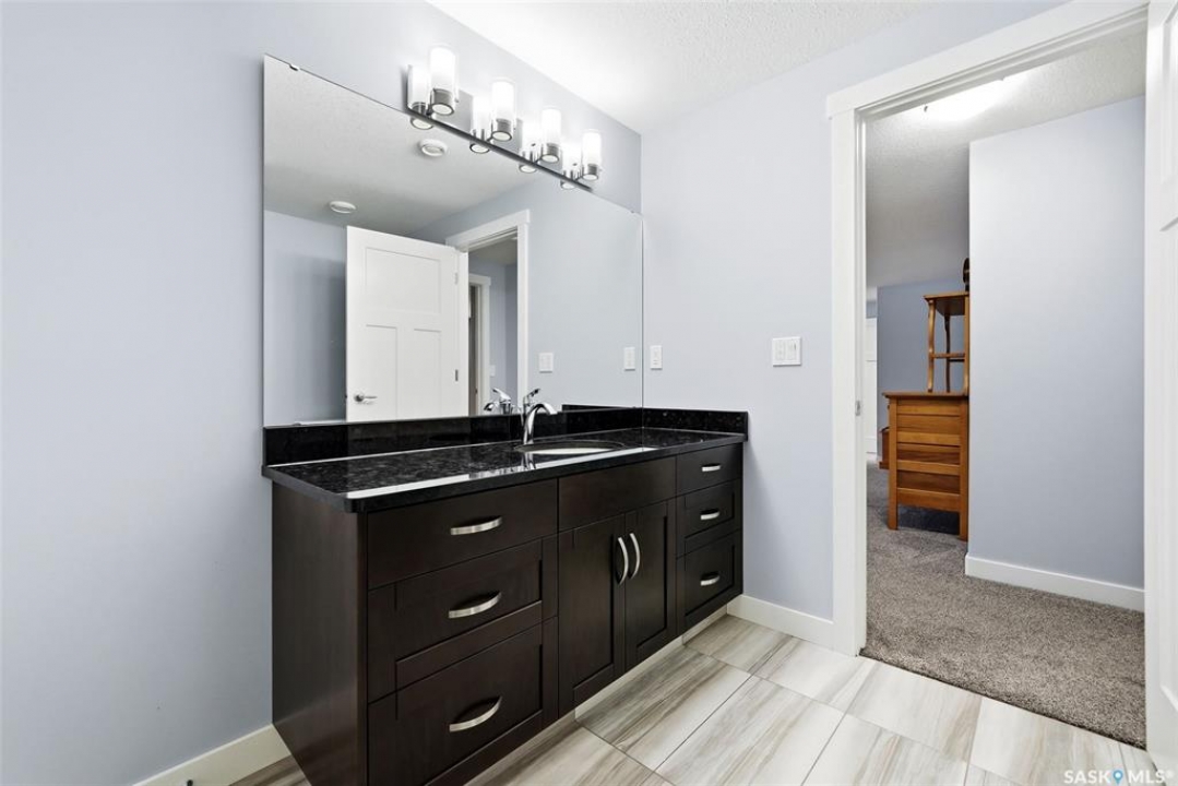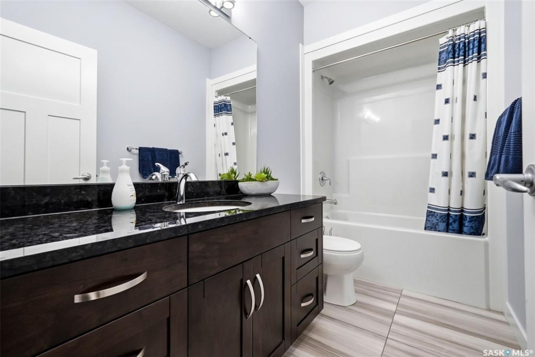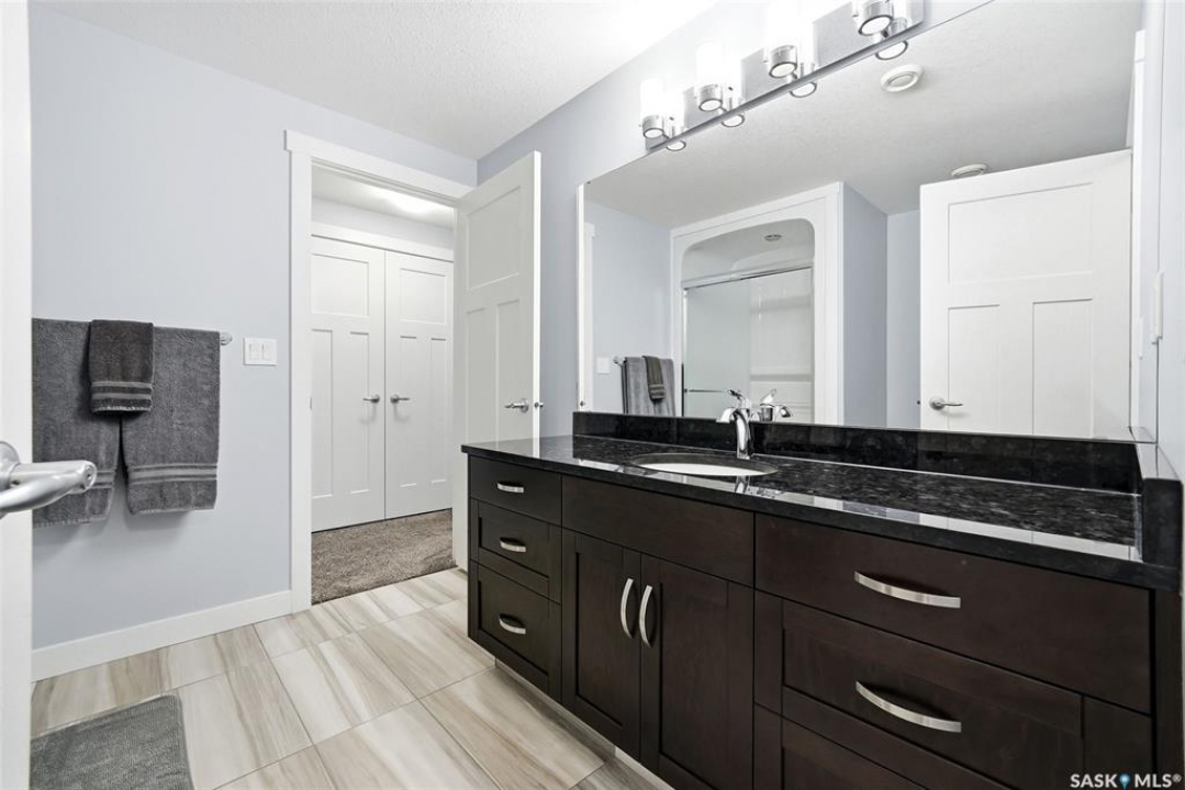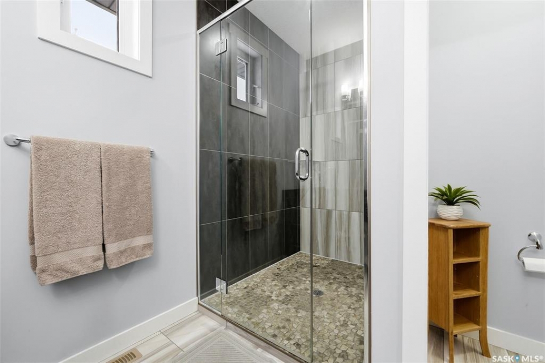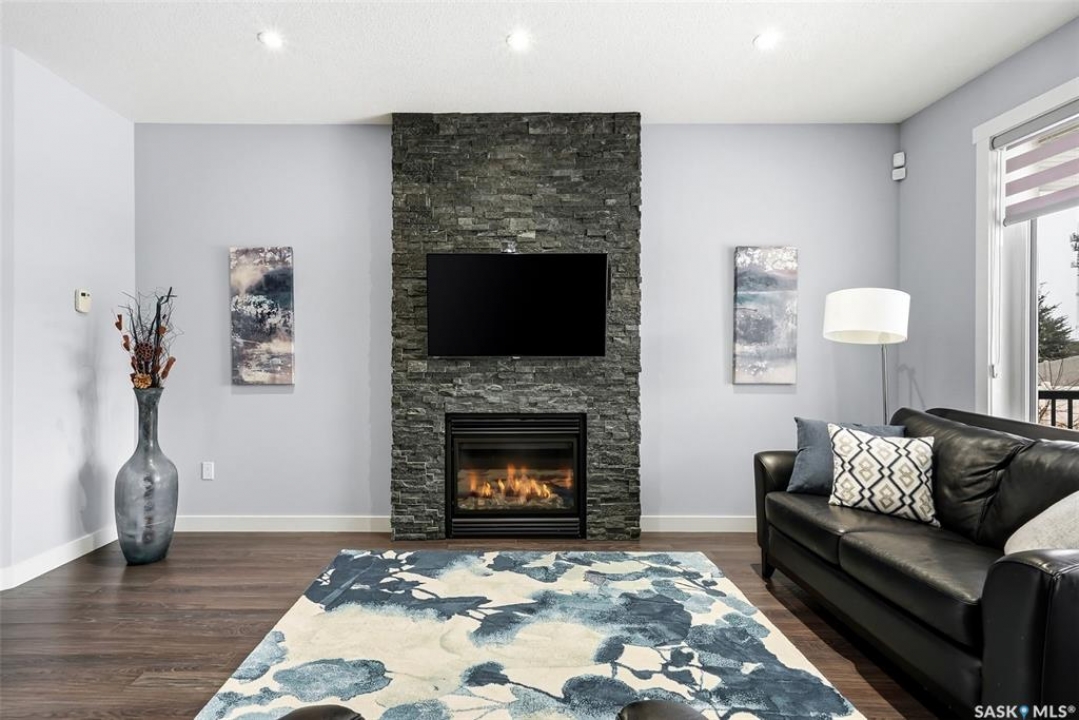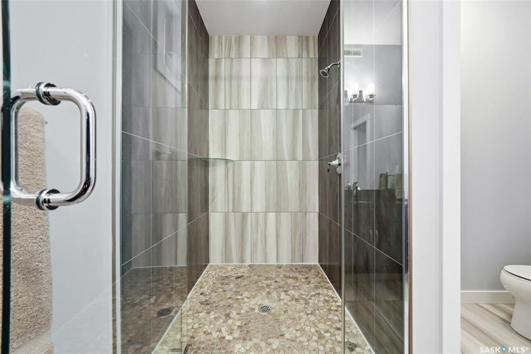 Move-in ready and absolutely breathtaking! This stunning, fully completed 5-bedroom custom home in Regina's most sought-after Creeks neighbourhood has been lovingly maintained since its 2014 construction and is ready for you to simply walk in and fall in love. Imagine stepping into soaring 9-foot main-floor ceilings that flood every room with natural light and space. Feel the instant comfort of R20 walls, R50 ceiling insulation, and spray-foam basement walls that keep energy bills low and temperatures perfect year-round. Outside, the wow-factor curb appeal hits you immediately: elegant stucco with dramatic stacked-stone accents, a maintenance-free deck perfect for summer entertaining with its hot tub featuring an electric Convana cover, front and back yards with underground sprinklers, a show-stopping exposed-aggregate driveway and sidewalk, plus a fully finished, insulated garage with two overhead doors and openers. Inside, every detail sparkles with premium finishes you'll adore: rich maple shaker cabinets with soft-close hardware and gleaming granite countertops, a showpiece Napoleon gas fireplace wrapped in stacked stone, a luxurious custom-tiled ensuite with glass shower door, plus three spacious walk-in closets, and beautiful laminate, tile, and carpet flooring throughout. Top-of-the-line mechanicals include a high-efficiency 2-stage furnace, 2.5-ton central air, and a Venmar air exchanger for fresh, clean comfort. This pet-free, turn-key beauty is nestled in a vibrant, family-friendly community with parks, trails, and green space right outside your door—the dream home you've been waiting for. Don't miss your chance to make it yours today!