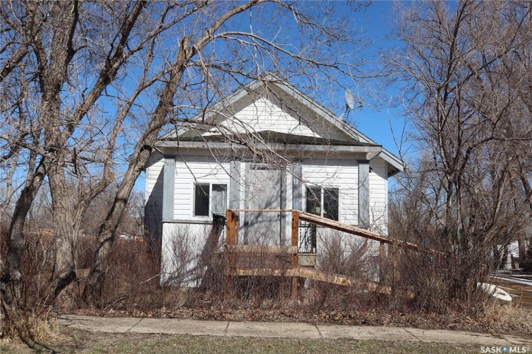 This property is situated in the Town of Willow Bunch and offers an excellent location. The residence occupies a double lot and comprises 860 square feet above an upgraded concrete basement. While the basement is not original to the home, its construction date is unknown. The main floor includes a spacious eat-in kitchen, main floor laundry conveniently located in the four-piece bathroom, a generous living room, two bedrooms, and access to the front porch. The bathroom is equipped with a stand-up shower and a claw foot tub, and the laundry utilizes a stacked unit. The basement has been developed to feature a large family room, a den currently used as a bedroom, a utility room with additional laundry facilities, a natural gas forced air furnace, an electric water heater, and ample storage space. Exterior amenities include a wheelchair-accessible ramp at the front entrance, a deck at the rear, and substantial outdoor space. Additional features comprise several older storage sheds, a portable garage, and an adjacent vacant lot that has served as a firepit area and garden. The house is enhanced by newer vinyl windows and upgraded flooring. This property presents an attractive opportunity; viewing is recommended.