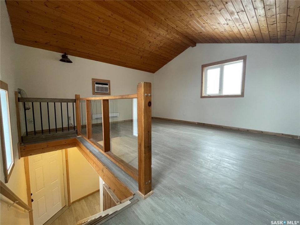 Affordable, move in ready home near Lake Diefenbaker. Built in 2009, this home offers a smart, efficient layout with approximately 450 sq ft across two levels, making it the perfect fit for first time home buyers, downsizers, or anyone looking to secure a foothold near the lake at an affordable price. Inside, you'll find a bright and inviting living space with warm wood ceilings that immediately set it apart and give the home a cozy cabin like feel buyers are searching for in this area. The kitchen is clean, functional, and ready to use, with plenty of storage and natural light. The loft style bedroom creates an open, airy vibe, while the full bathroom and practical layout make everyday living simple and efficient. Step outside and you'll be welcomed onto and elevated deck perfect for relaxing after a day at the lake, plus coverred space below for added versatility. The attached garage with an oversided door and elevated ceiling is a major bonus at this price point. With growing demand around Lake Diefenbaker, affordable properties this close to the lake are becoming harder to find.