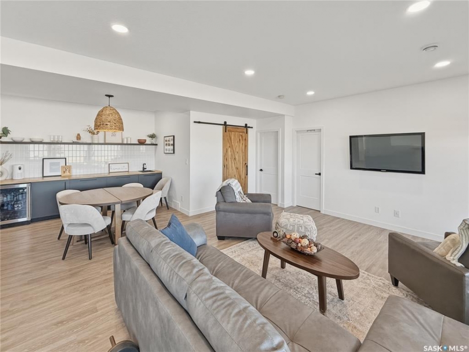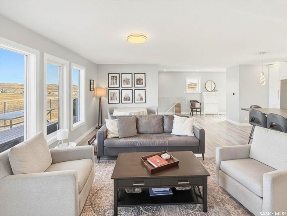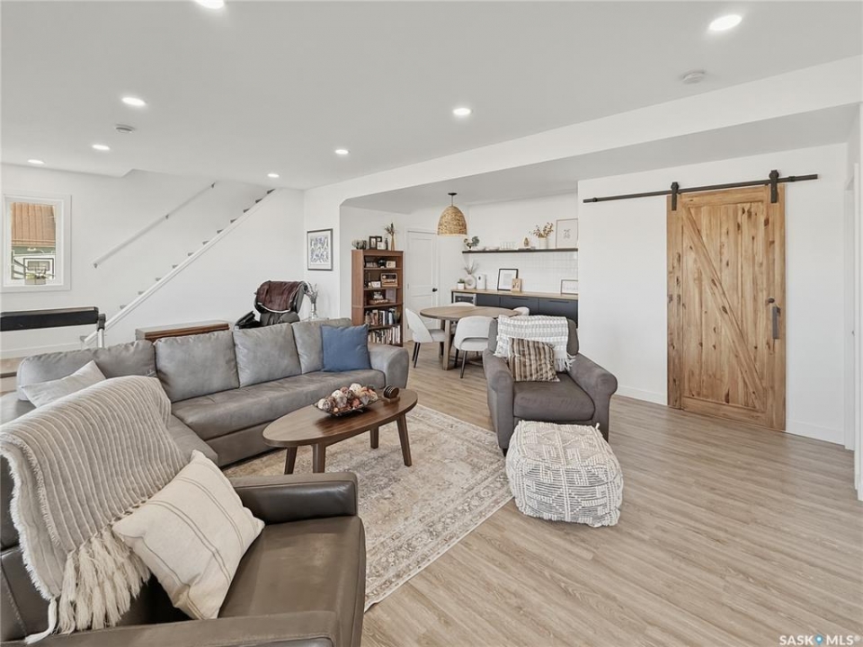 Life really is better at the lake—especially when it's DEEDED, lakeview, and designed for all four seasons. Welcome to the southwest side of Lac Pelletier, where this beautifully updated walkout bungalow offers incredible views and the kind of lifestyle buyers dream about. Originally built in 1983 and moved onto a brand new ICF walkout basement in 2019, this 1,092 sq. ft. home blends solid construction with modern updates. The main floor was completely renovated and features a gorgeous white kitchen with sit-up island, stainless steel appliances, and an open-concept design that fills the home with natural light. The living room showcases stunning southeast views of the lake and river hills, and the oversized upper deck spans 12' x 39'—an amazing space for entertaining, relaxing, and soaking in the view. The main floor also offers 2 bedrooms, main floor laundry, and an updated 4-piece bath with newer toilet, vanity, lighting, and flooring. Updated flooring, paint, trim, and light fixtures run throughout the main level. The fully developed walkout basement, completed in 2022, adds exceptional extra living space with a spacious family room, wet bar with open shelving, a 3-piece bath with electric in-floor heat and custom tiled shower, plus a primary bedroom and an additional bedroom with soundproof walls and custom built-in bunk beds. Step outside to the private exposed aggregate patio and enjoy your front-row views of lake life. The fully fenced yard offers privacy and room to build a garage if desired. Additional updates include shingles, exterior paint, and parging/stucco (2020), most plumbing, natural gas BBQ hookup, central A/C (2022), newer 200 amp panel, high-efficiency furnace, 1600-gallon septic tank, and central water line. Located in Lac Pelletier Regional Park, you'll enjoy boating, fishing, swimming, golf, mini golf, and dining just minutes from your door. Don't wait—this deeded lakeview property is a rare find.