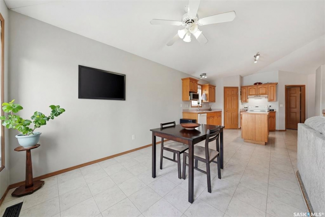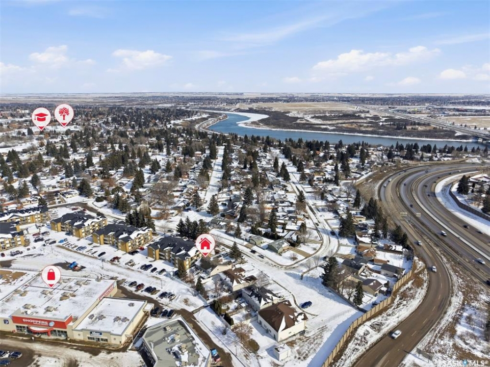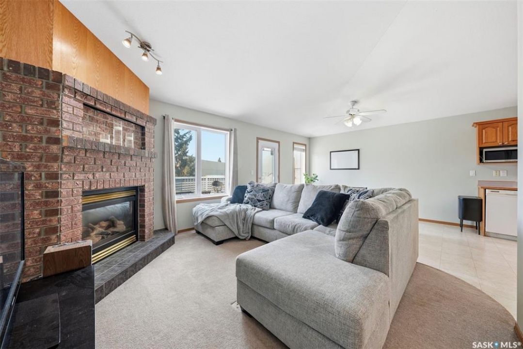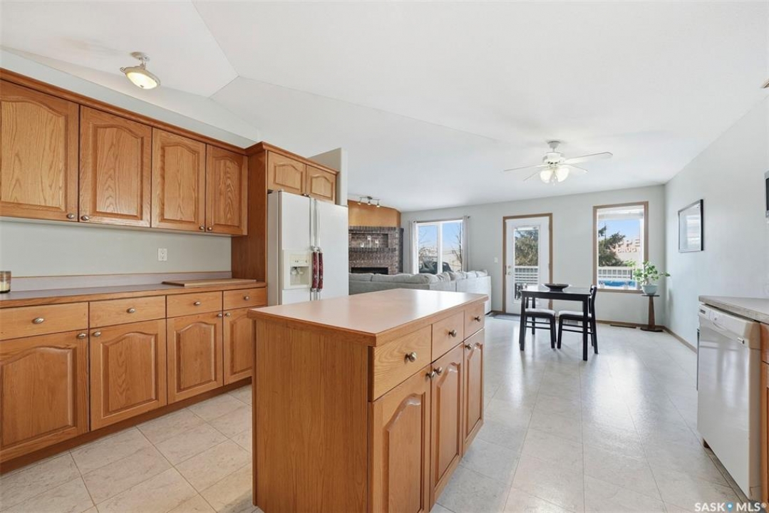 Welcome home to this stunning semi-detached bi-level, where exceptional street appeal meets a thoughtfully designed interior. From the moment you step inside, you are greeted by an expansive open-concept main floor defined by soaring vaulted ceilings and an abundance of natural light. The heart of the home is the spacious living room, anchored by a charming brick gas fireplace that promises cozy evenings. For those who love to cook and entertain, the large kitchen is a standout, featuring classic light oak cabinetry, a functional island, and a generous corner pantry. The adjacent dining area transitions seamlessly through patio doors to a private rear deck. Completing the main level is a convenient two-piece powder room and a dedicated laundry room—a rare find that adds a layer of everyday ease.The lower level is a masterclass in space optimization, offering a quiet retreat for the whole family. It boasts three bedrooms and a full four-piece bathroom, ensuring everyone has their own space. Beyond the bedrooms, you'll discover a versatile bonus room—perfectly suited for a home office or craft studio—making this home as functional as it is beautiful. High-end practical features are found throughout, including a central vacuum system, an attached single 12x22 garage, and underground sprinklers to keep the mature trees and lush lawns looking their best with minimal effort. Perhaps the most attractive feature of all is the freedom that comes with NO condo fees, providing incredible value in one of Saskatoon's most established neighborhoods. You are within easy walking distance of the Canarama Shopping Centre and minutes from Lawson Heights Mall. Nature enthusiasts will love the close proximity to the South Saskatchewan River trails, while students and professionals will appreciate the effortless access to the University of Saskatchewan. This is more than just a house; it's an opportunity to own a piece of River Heights without sacrificing style or convenience.